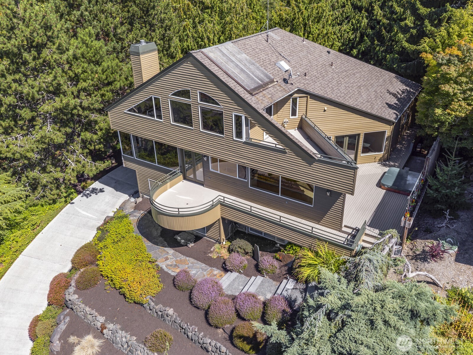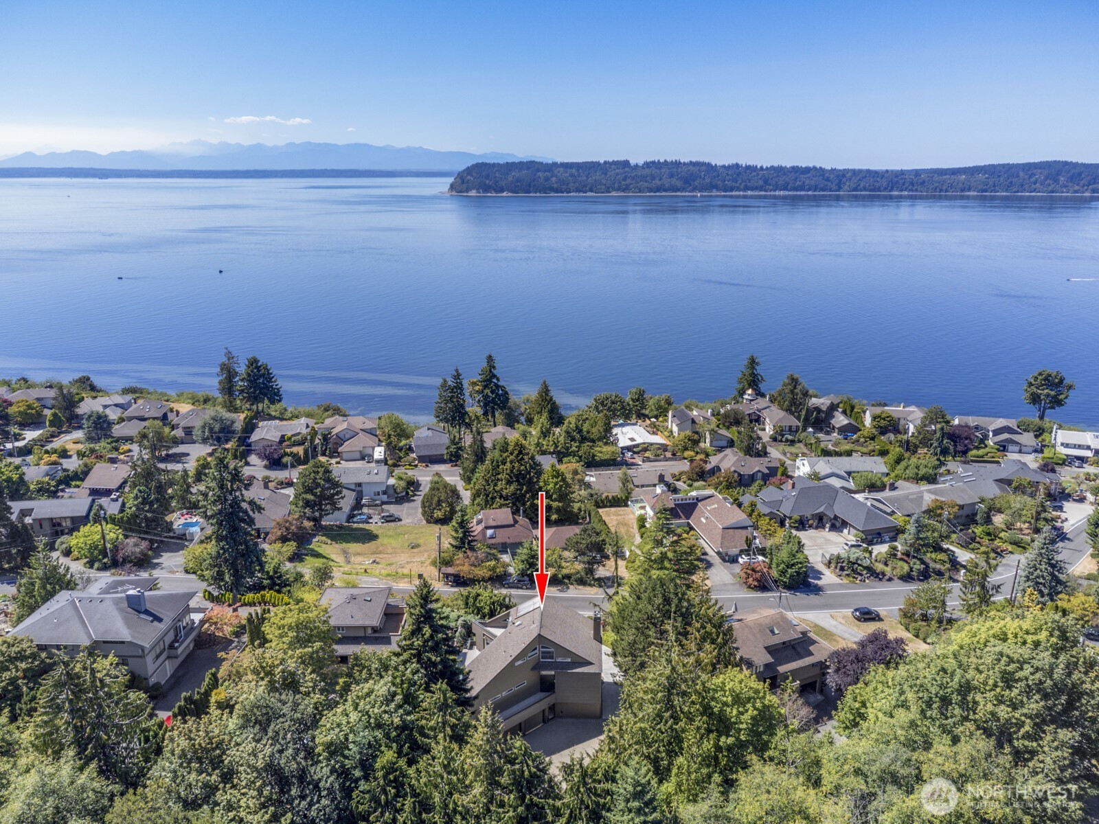VIEW! VIEW! VIEW! NW Contemporary with a truly fabulous view to the west - the Olympics, Admiralty Inlet, shipping lanes + gorgeous sunsets. Open & airy with tall ceiling & big windows, not a cookie cutter home. 2nd floor primary w/private deck + office, full totally remodeled bath w/ porcelain tile & walk in closet. Main level family room or dining room, you choose, eating space in the island kitchen. The island kitchen has SS appliances, wine refer, Wolf, Dacor, Sub Zero, GE Profile, stone counters, new cabinets. Travertine tile on the main level, marble tile on lower level, home was just painted inside-out, new carpet, each level has in floor hot water heat which is super comfy, 2 mini-splits upstairs, close to shopping and Kamiak HS! Floor to ceiling stone gas fireplace. Two view decks on the main level. Even the bedrooms on the lower level have great views.