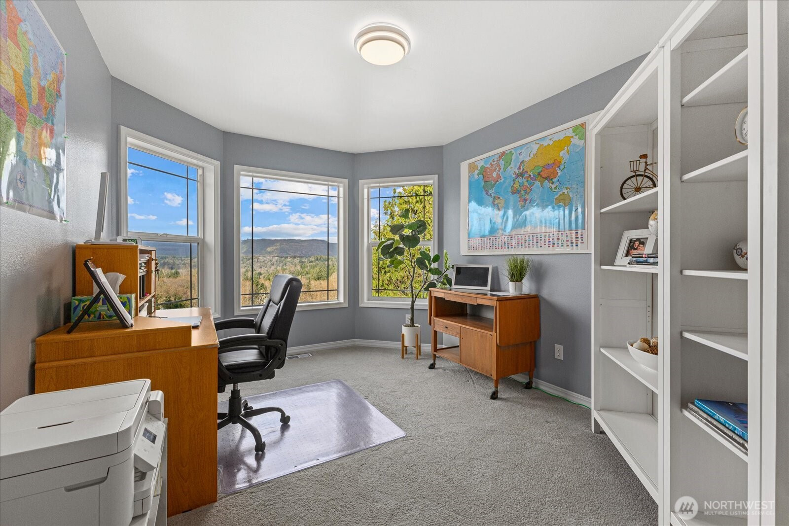 Custom-built home majestically positioned on knoll high above the valley this exceptional home captures a truly commanding view and offers all the bells and whistles. Thoughtfully designed with expansive living spaces, it features 2 primary suites, with the second easily serving as a bonus room. Each bedroom includes a walk-in closet, storage is abundant throughout.Quality craftsmanship shines in the custom details: 9-foot ceilings, a beautifully designed kitchen with cherry cabinetry, gas cooking, double ovens, pull-out shelves, & oversized drawers. an extra-large{WALK IN} pantry provide ideal space for Costco-sized storage and small appliances. Enjoy everyday convenience with central vacuum, incld. a kitchen toe-kick, 3 gas fireplaces and an oversized laundry/mudroom featuring a deep sink, built-in upper cabinets & a closet. The oversized 3-car garage is a standout, complete with backyard access, a workbench, extensive cabinetry, an additional utility sink, & incredible storage. Comfort & reliability are covered with automatic whole-house Generac generator and central air conditioning throughout. All of this is complemented by ever-changing views of Mt. Higgins Ridge and Blue Mountain, along with stunning sunrises that make EVERY DAY FEEL SPECIAL. Conveniently located just 1.9 miles from grocery stores, downtown Arlington, Arlington Hardware, and local restaurants. There are places that quiet the noise of the world the moment you arrive—this is one of them.
