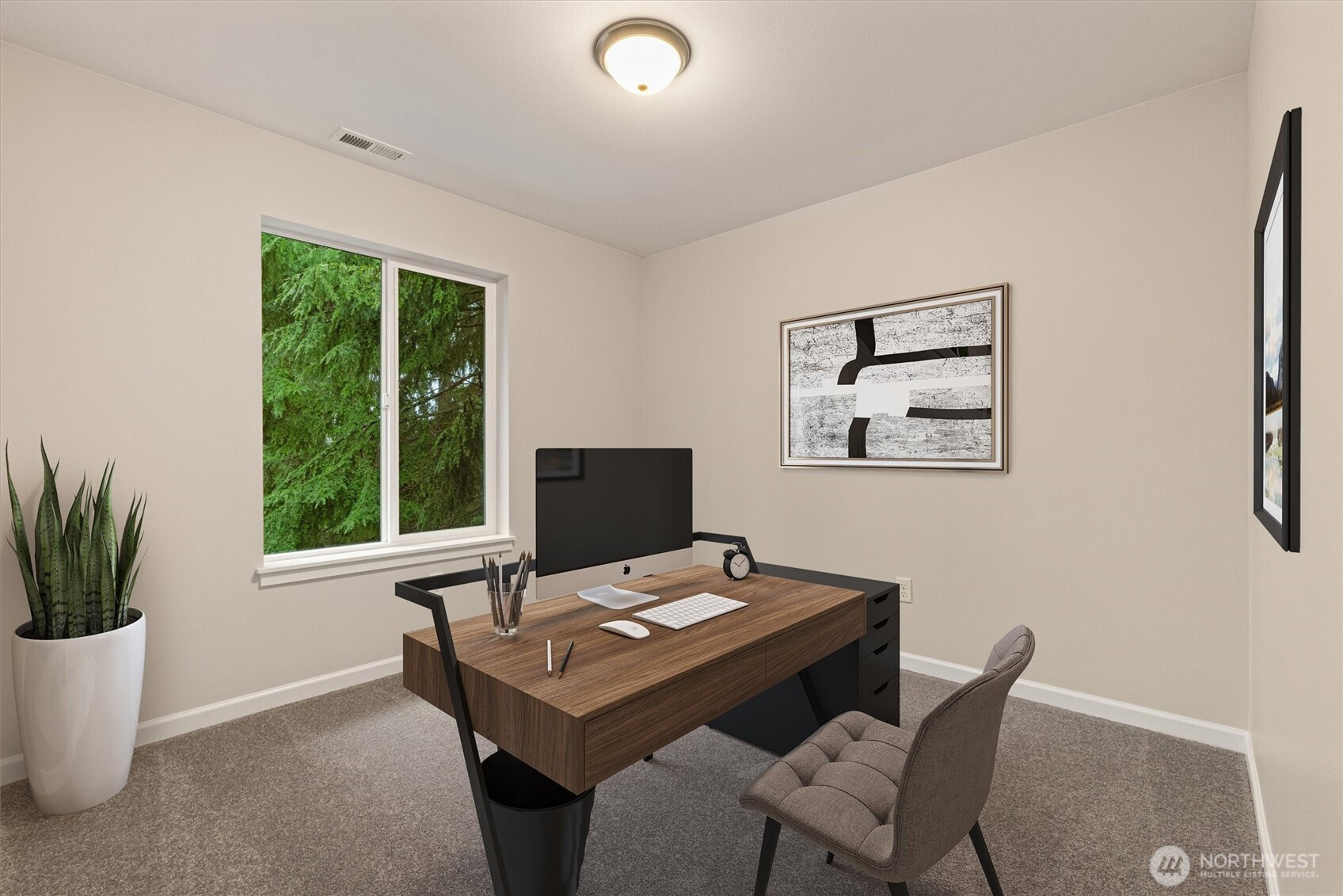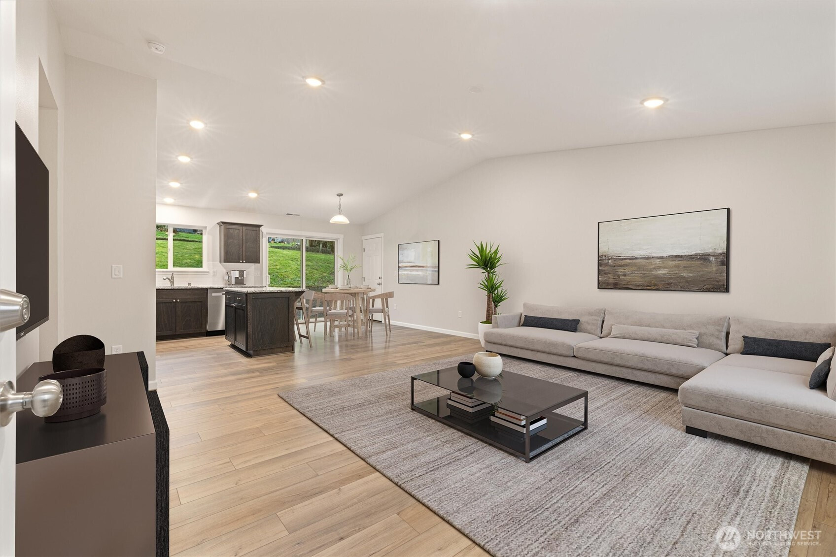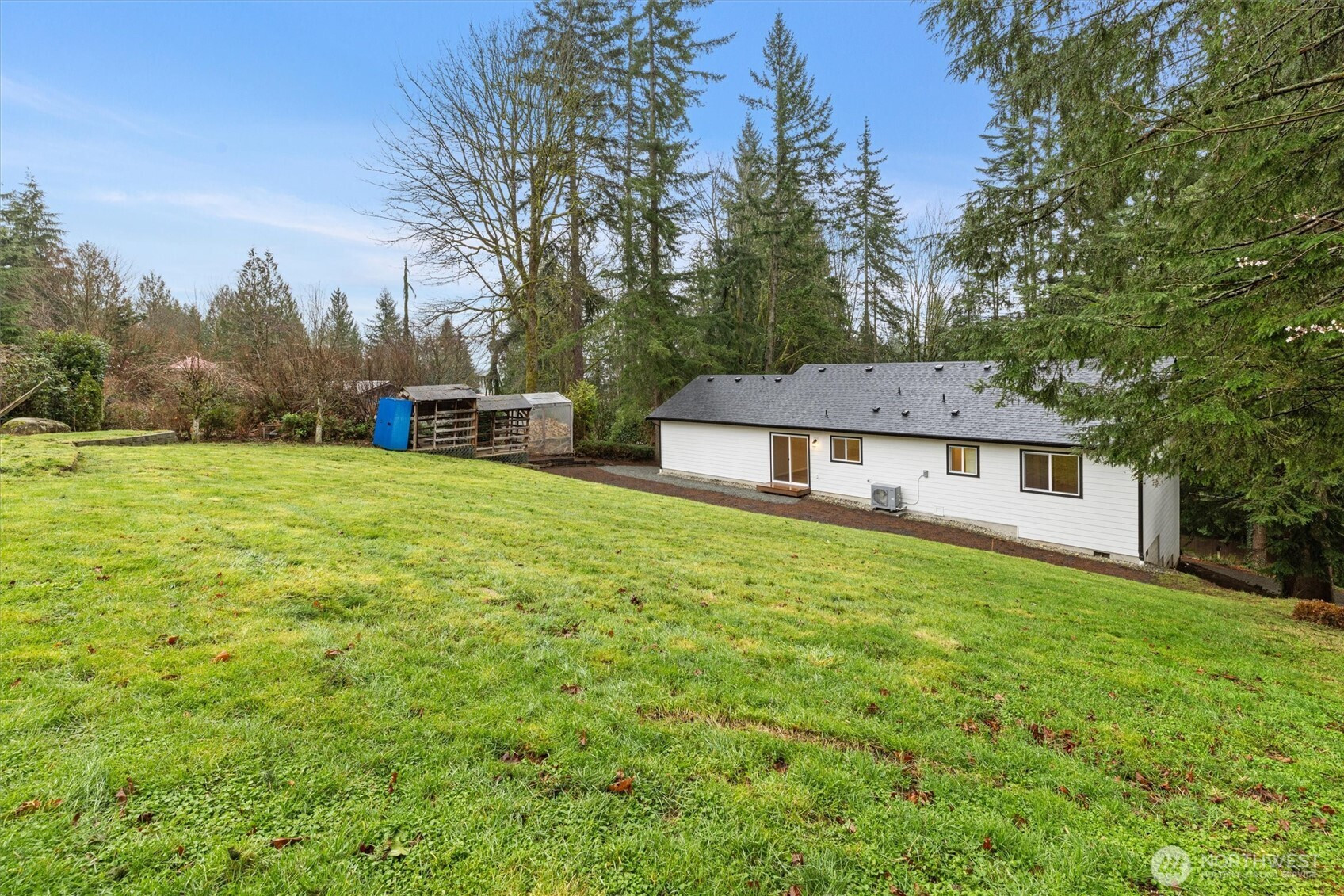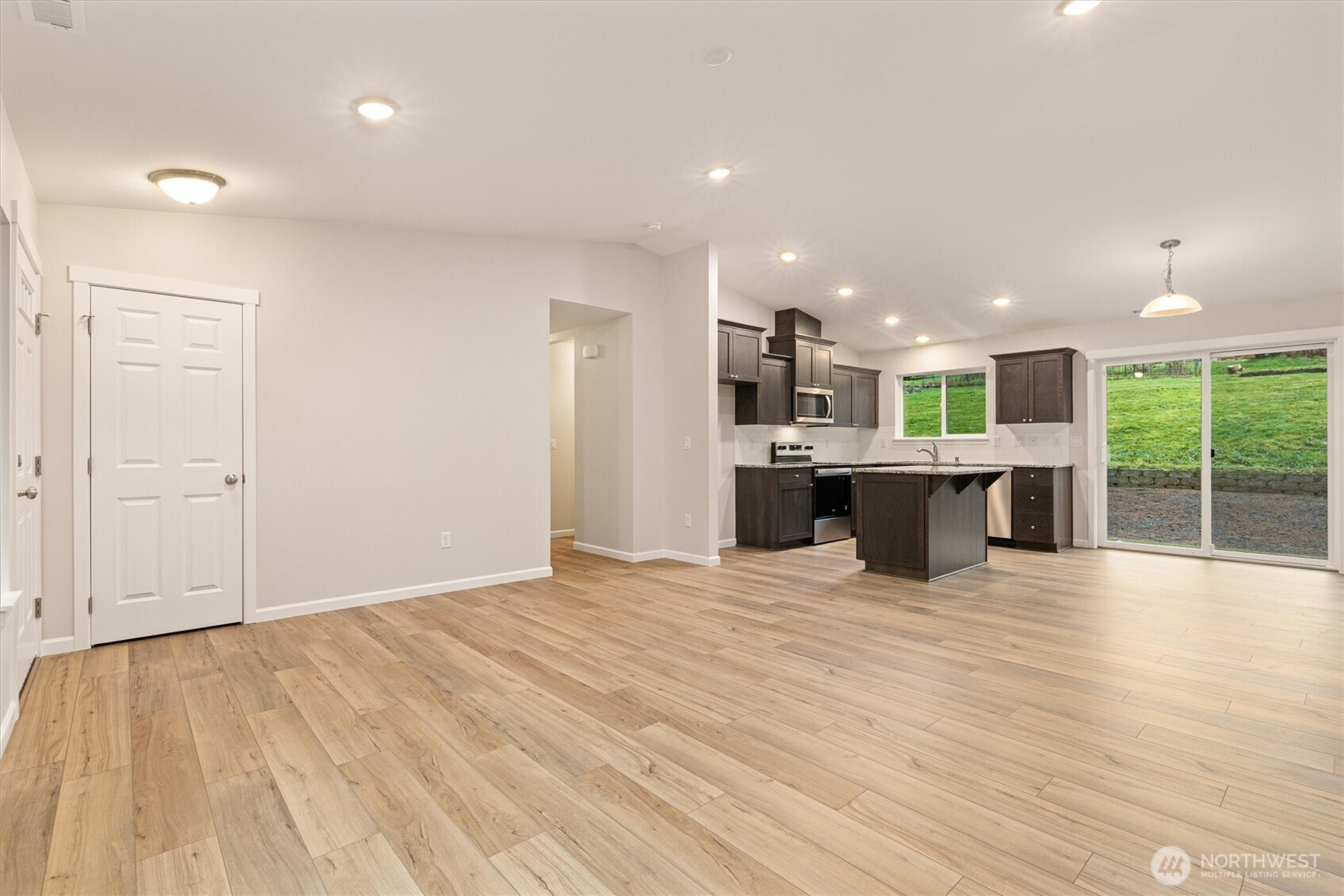 BRAND NEW IN PEACEFUL SETTING just outside of town! This spacious 3 bedroom, 2 bath, one-level home offers a vaulted, open floor plan with modern finishes, durable plank flooring, and abundant natural light. The stylish kitchen features dark cabinetry with soft-close drawers, stone countertops, stainless appliances, and a center island - perfect for everyday living or entertaining. ENERGY-EFFICIENT systems include forced-air heat, HEAT PUMP A/C, and a high-efficiency water heater. The attached 2-car garage offers panel capacity for EV charging or a generator, + tall ceilings for potential overhead storage. Transferable 2-10 BUILDER WARRANTY, for added peace of mind. Set on an 11,761 sq ft lot, you’ll enjoy more outdoor space than most new construction homes, with mature trees, room to garden, and a quiet, tucked-away feel. Quaint community with a low-key HOA that maintains the neighborhood water system and park. Just a short drive to Monroe shops and restaurants with multiple routes of access. MOVE-IN READY and waiting for you to make it your own! (virtually staged)
