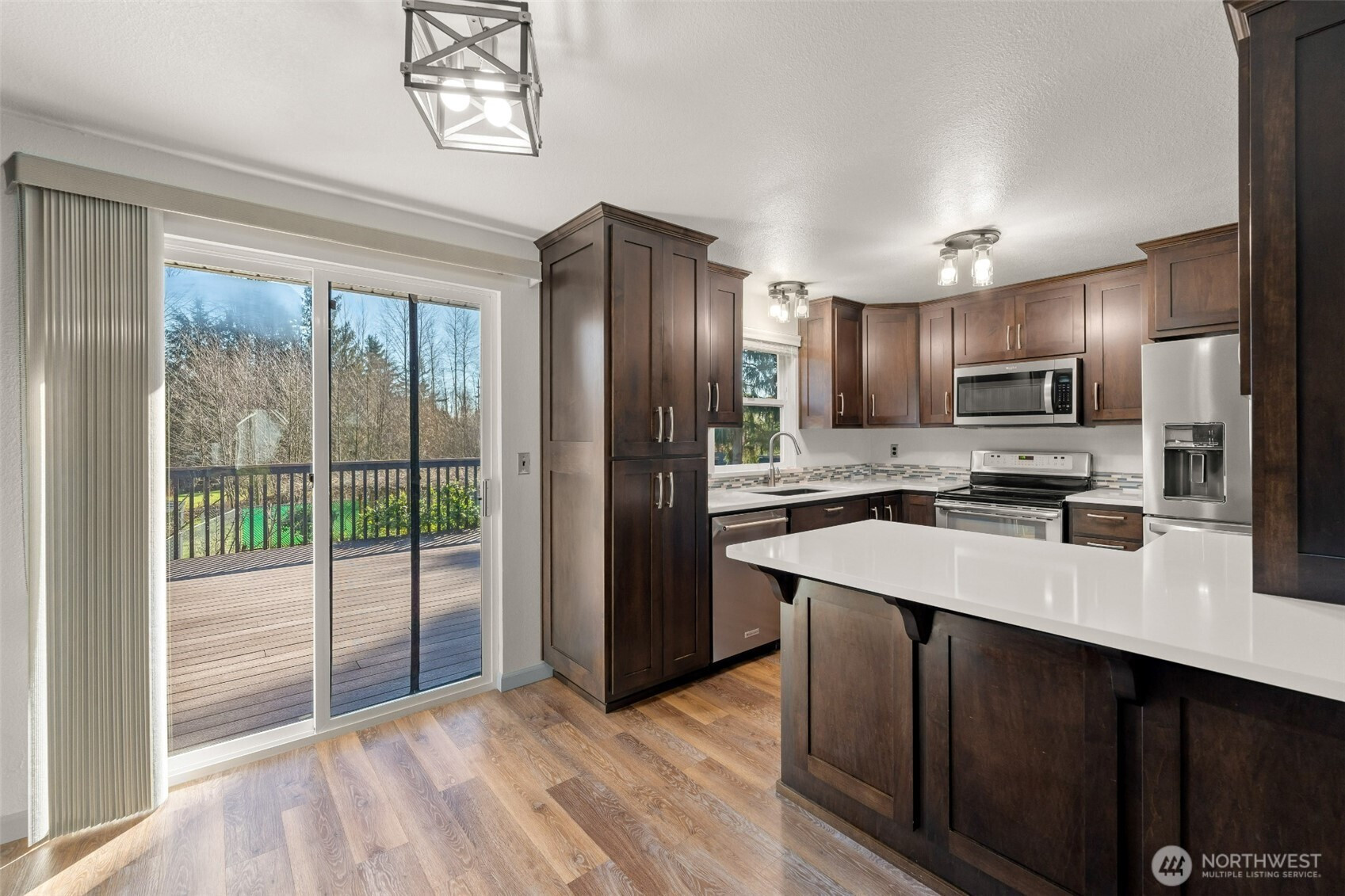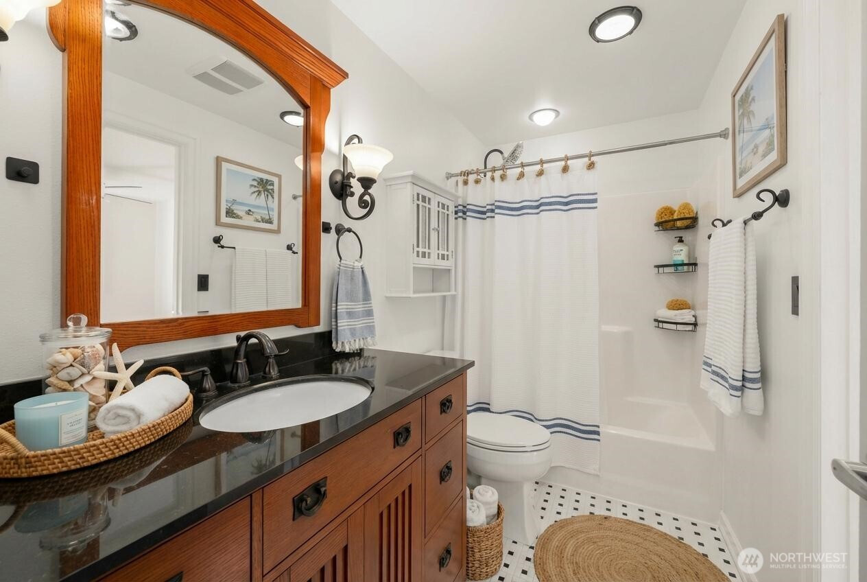 Well-loved and beautifully renovated throughout the years home offers perfect blend of modern updates and private living! Light-filled main level boasts cozy living and dining rooms with wood burning fireplace, fully remodeled Gourmet kitchen with abundance of high-quality cabinets, stainless steel appliances, quartz counters, full backsplash, and large island overlooking entertainment size composite Trex deck, and a lush fully fenced backyard. Primary bedroom with the sliding door to the Trex deck and 2 additional bedrooms share renovated full bathroom. Lower level offers spacious recreational multi-purpose room with the slider door to covered Trex deck, remodeled 3/4-bathroom, laundry, and a two-car garage. Luxury vinyl plank floors almost throughout the main floor, newer quality carpet on the lower level. Numerous major upgrades. Just installed brand new electrical panel. Tranquil and peaceful full fenced backyard with plenty of room for the garden is a perfect place to relax, entertain, and reflect. The house is in Quilceda Meadows HOA, walking distance to park with playground and other amenities; shopping, transportation, I5. Welcome home!!!