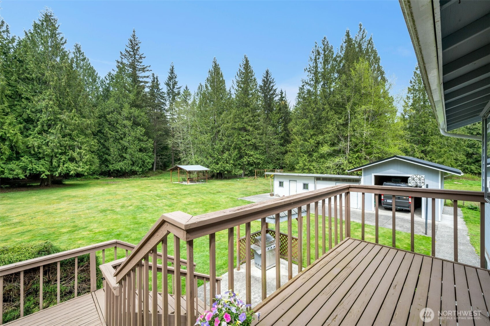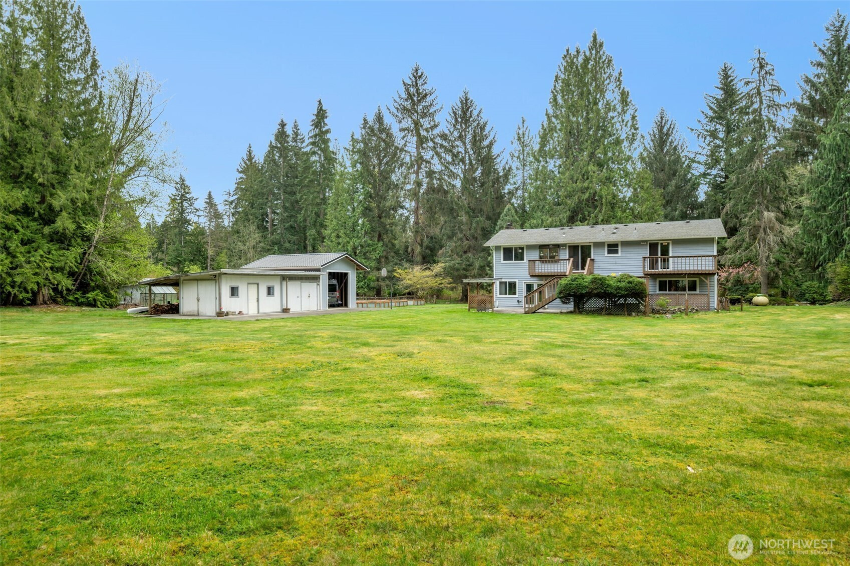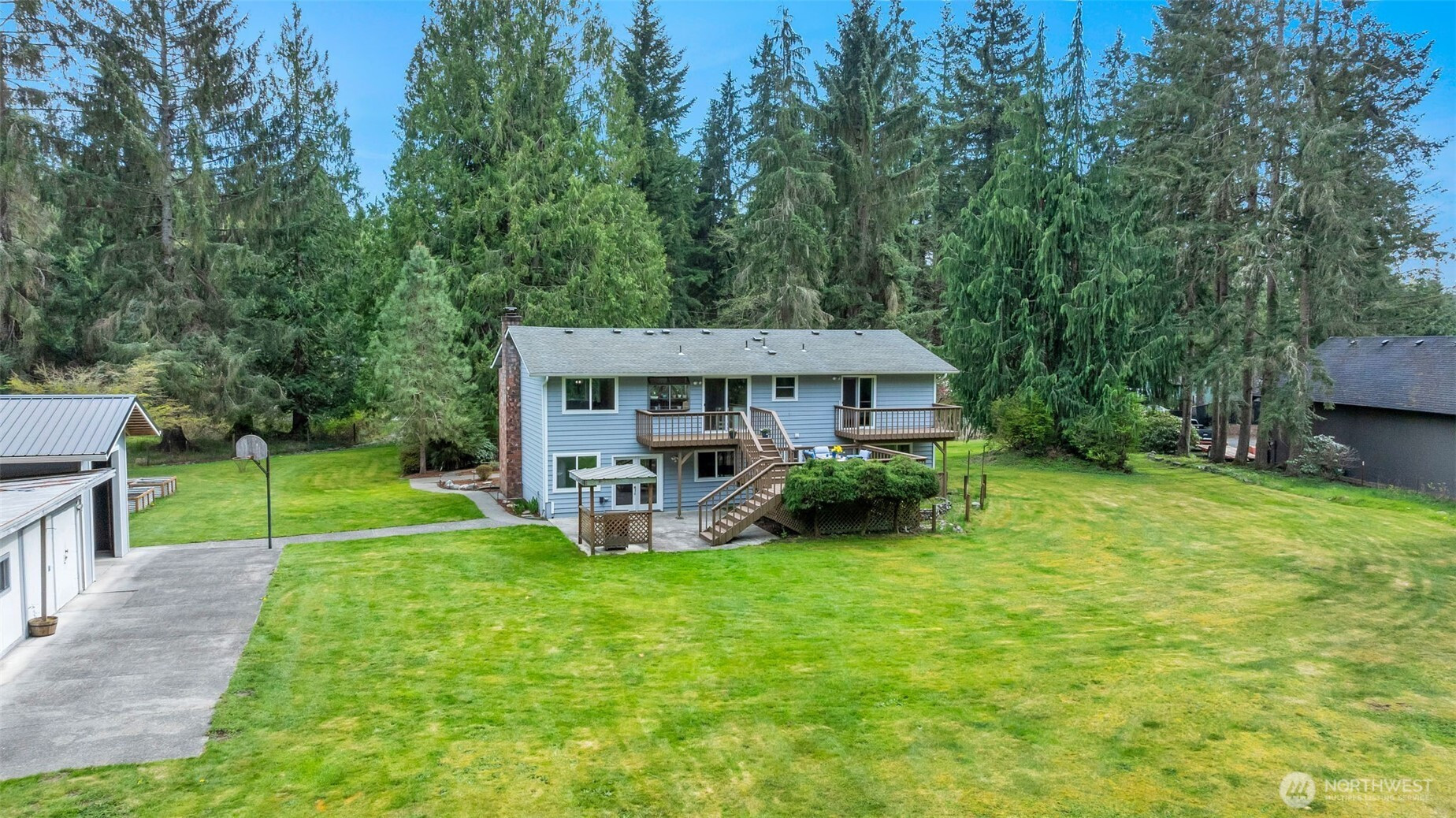 Tucked away on a quiet dead-end street on a scenic 5-acre flat lot, this Getchell home is packed with upgrades including new windows and fantastic outdoor amenities. Inside, enjoy the updated kitchen that features granite countertops, ss appliances, and a slider leading to a multi-level deck—perfect for your backyard entertaining. Vaulted ceilings enhance the light filled open dining and living areas. The upper level offers 3 beds and 1.75 baths, including a spacious primary suite with a shiplap accent wall, double-closets, updated ¾ bath, and private balcony. The lower level includes a large bonus room with a cozy pellet stove, large fourth bedroom, office/exercise room and a full bath with laundry. Outside, the property truly shines with a ton of storage, fully fenced paddock and animal stall, tack and feed room & garden shed. Additional highlights include a covered firepit, dog run, playset, A/C, and RV parking. A rare combination of privacy, functionality, and lifestyle—this property has it all.