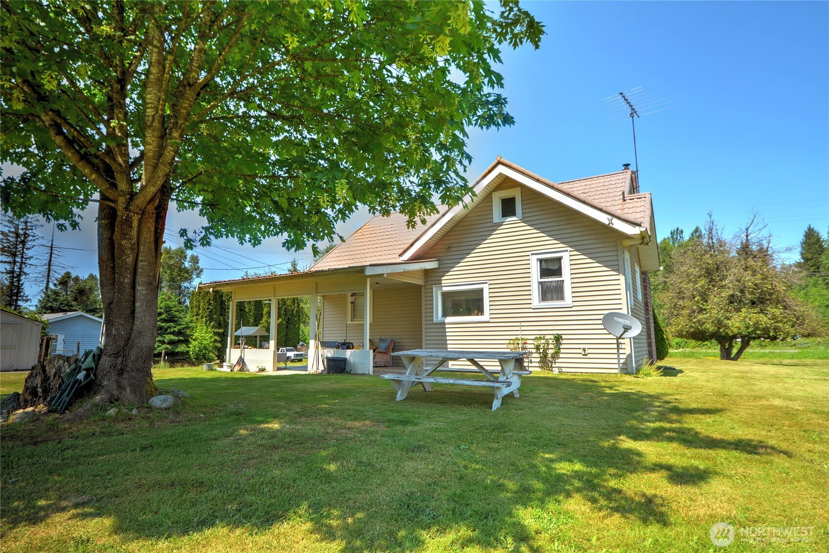 Rare Opportunity to own this 1 acre property in desirable Lake Stevens! The level usable property features mature landscaping, established trees, three outbuildings, patio space, and a delightful log cabin playhouse. Providing multiple avenues for improvement and or expansion. Septic and private well add to the property's long-term flexibility and independence. Significant upside potential in a strong area. This 1937 built home offers 2 bedrooms main floor, upstairs flex space, large basement and 1 bathroom. The Home is ready for updates while offering a solid foundation. Ready for your vision. Estate Sale-an exceptional chance to restore, expand or create a custom retreat in a beautiful setting with room to grow. Listing Broker is a licensed real estate broker in the state of Washington and a principal in the transaction. A rare chance to elevate a classic property on acreage in a sought after area. Close to all amenities.