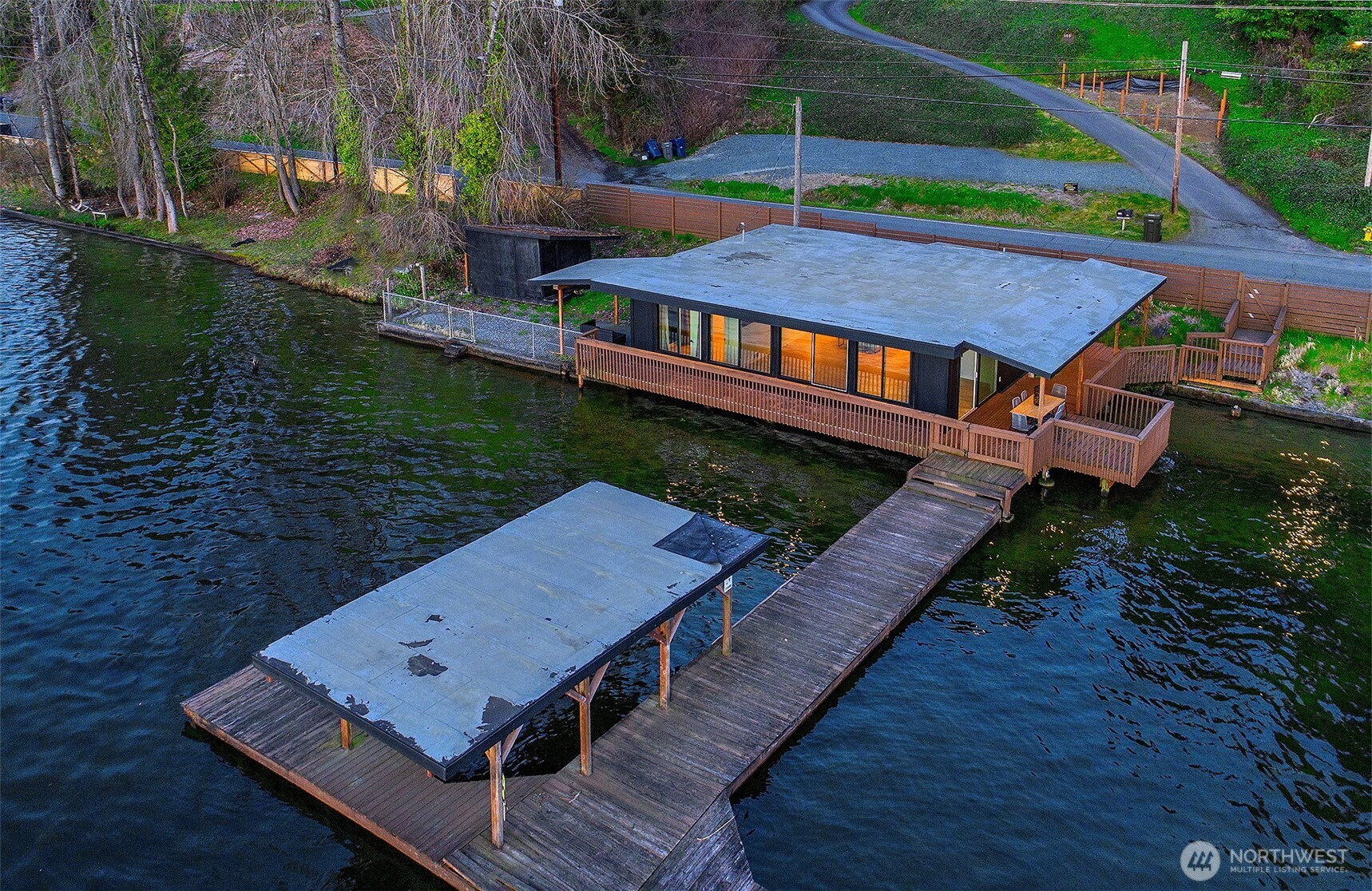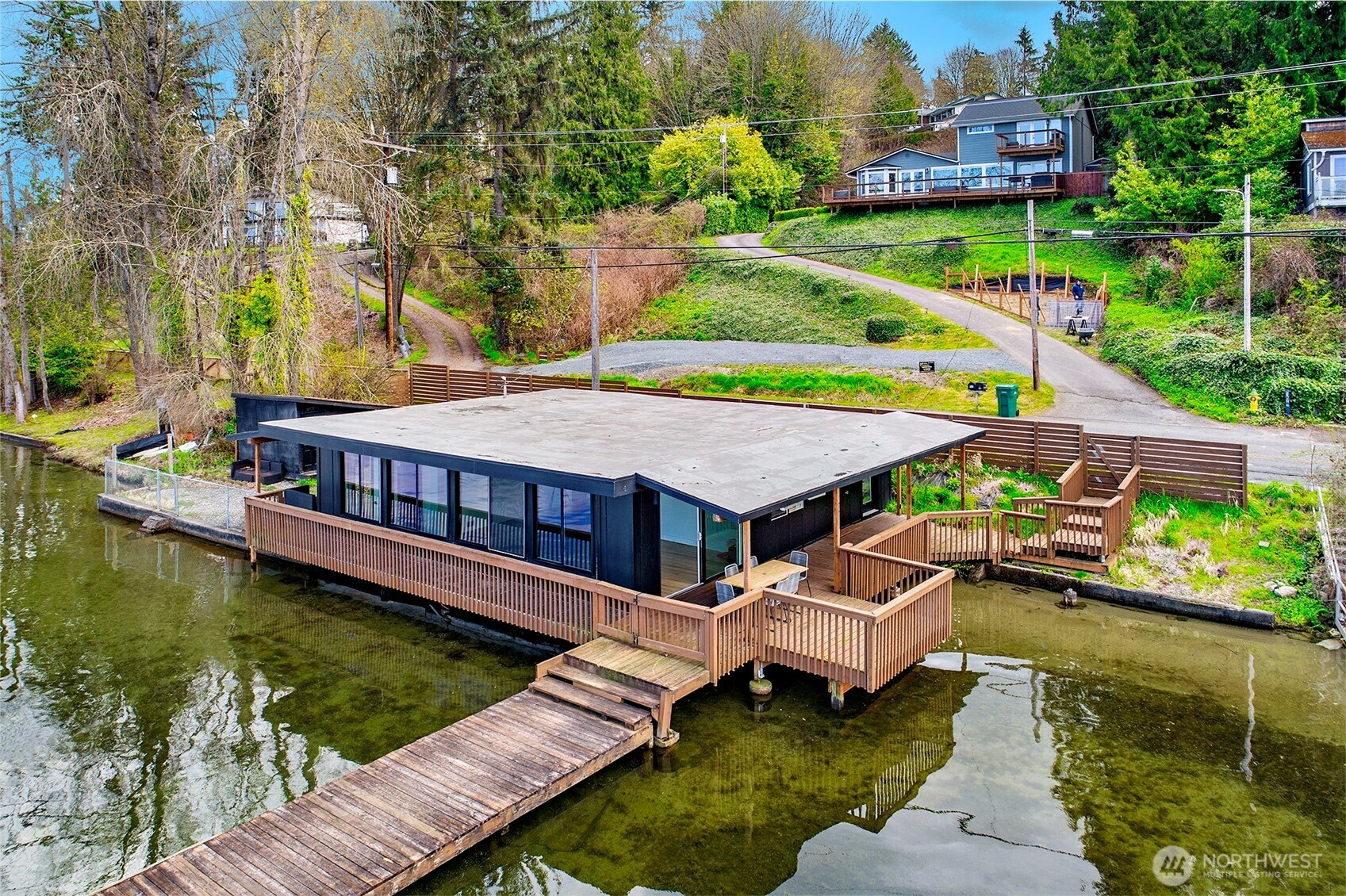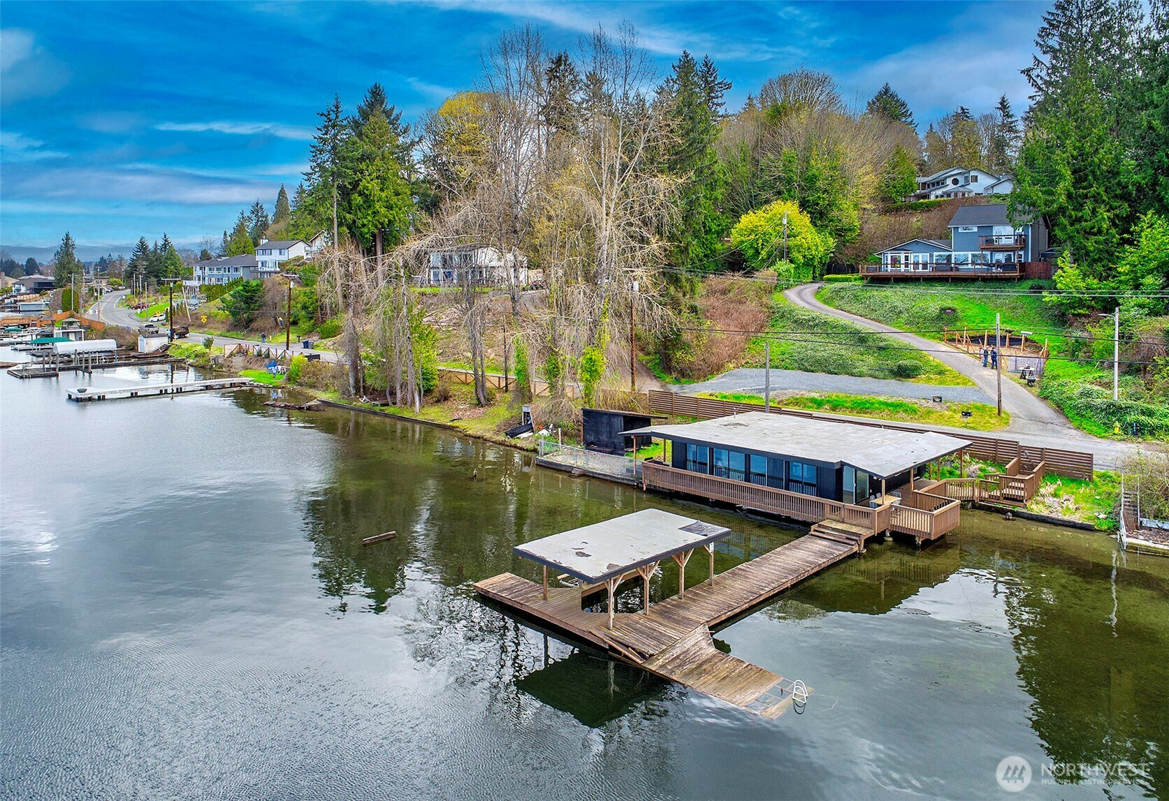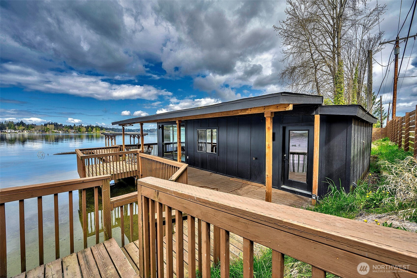 Discover the allure of waterfront living with this exceptional property on Lake Stevens. Designed to maximize breathtaking lake views, this home offers the perfect setting for relaxation and outdoor enjoyment. Step outside onto the wraparound deck, ideal for entertaining or simply soaking in the serene surroundings. Inside, the great room showcases stunning exposed wood beams and expansive windows that bathe the space in natural light and frame the tranquil waterscape beyond. The primary en-suite bedroom boasts its own private deck, offering a peaceful retreat. The secondary bathroom features a luxe double shower and tilework. With potential for short-term rental use, this property presents a unique investment opportunity, providing flexibility for additional income (subject to city approval). The property includes a parking easement across the street on a gravel drive, with the possibility of adding a garage and additional tandem parking next to the home (verify with the city). This home offers not only a spectacular waterfront lifestyle but also the potential for future development, making it a rare and valuable find in the Lake Stevens area. Sold "As Is, Where Is" as a receivership sale. For more information, please contact listing broker. Don’t miss out on this remarkable opportunity to own a piece of waterfront paradise! WARNING-DO NOT WALK ON THE DOCK.