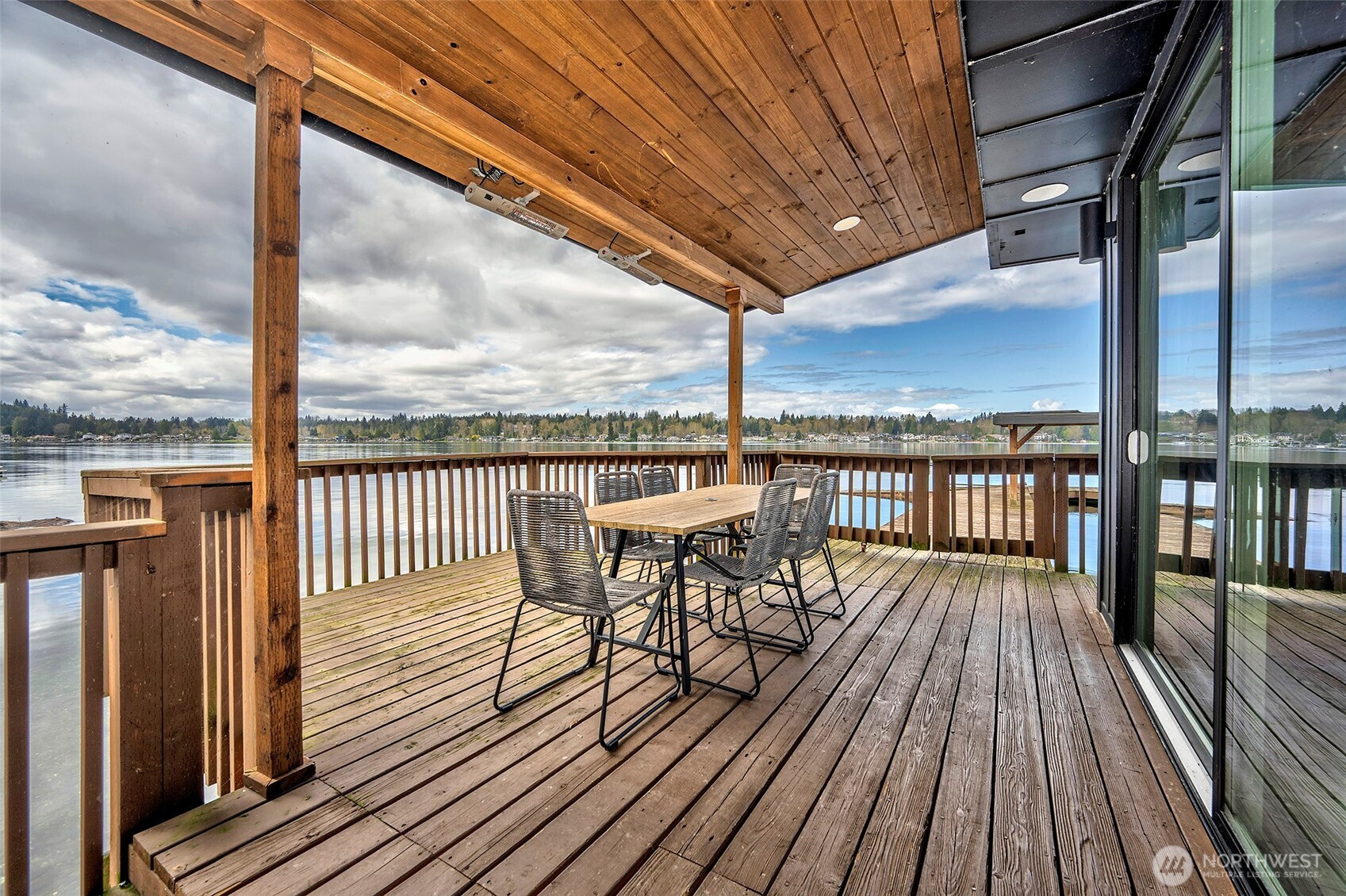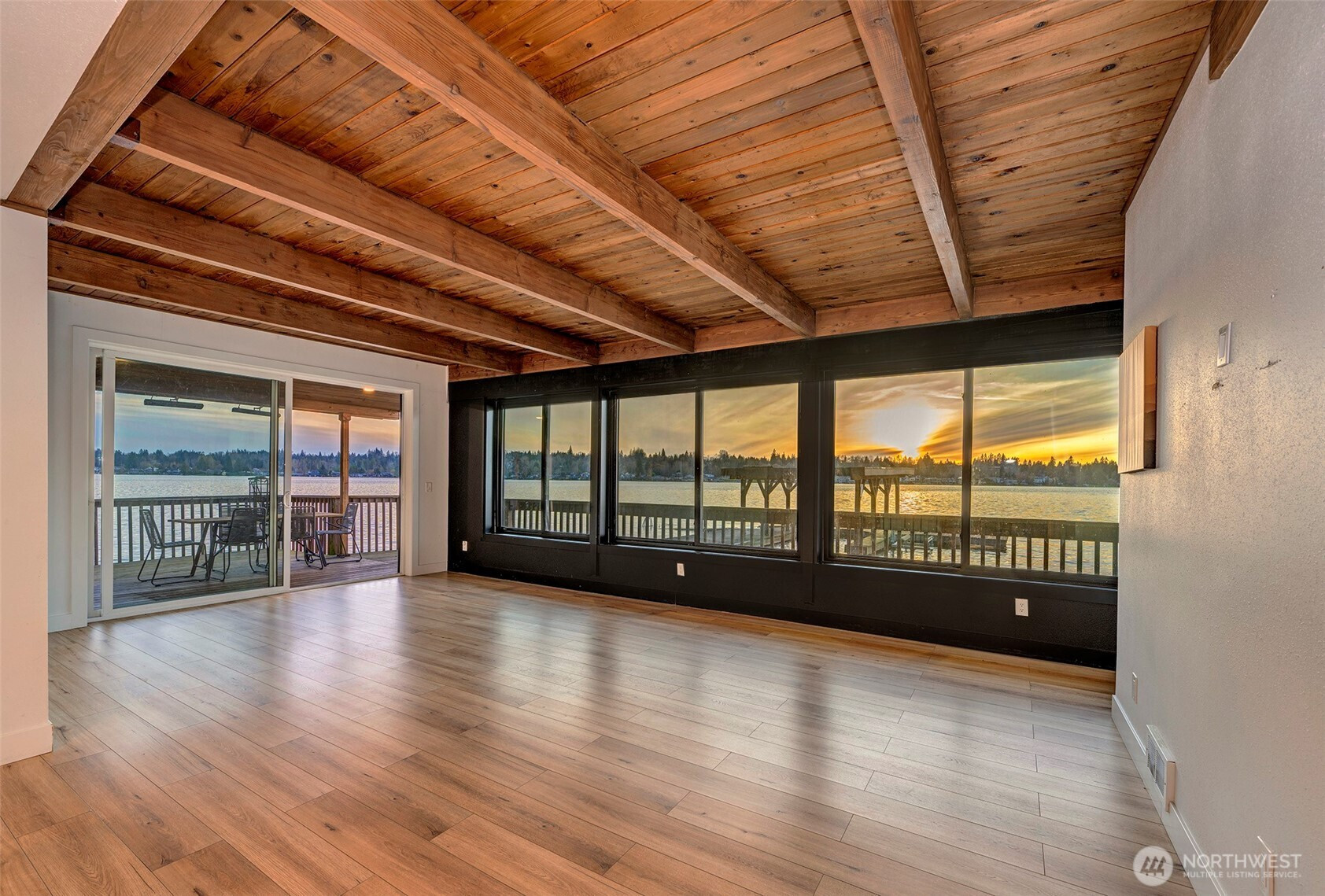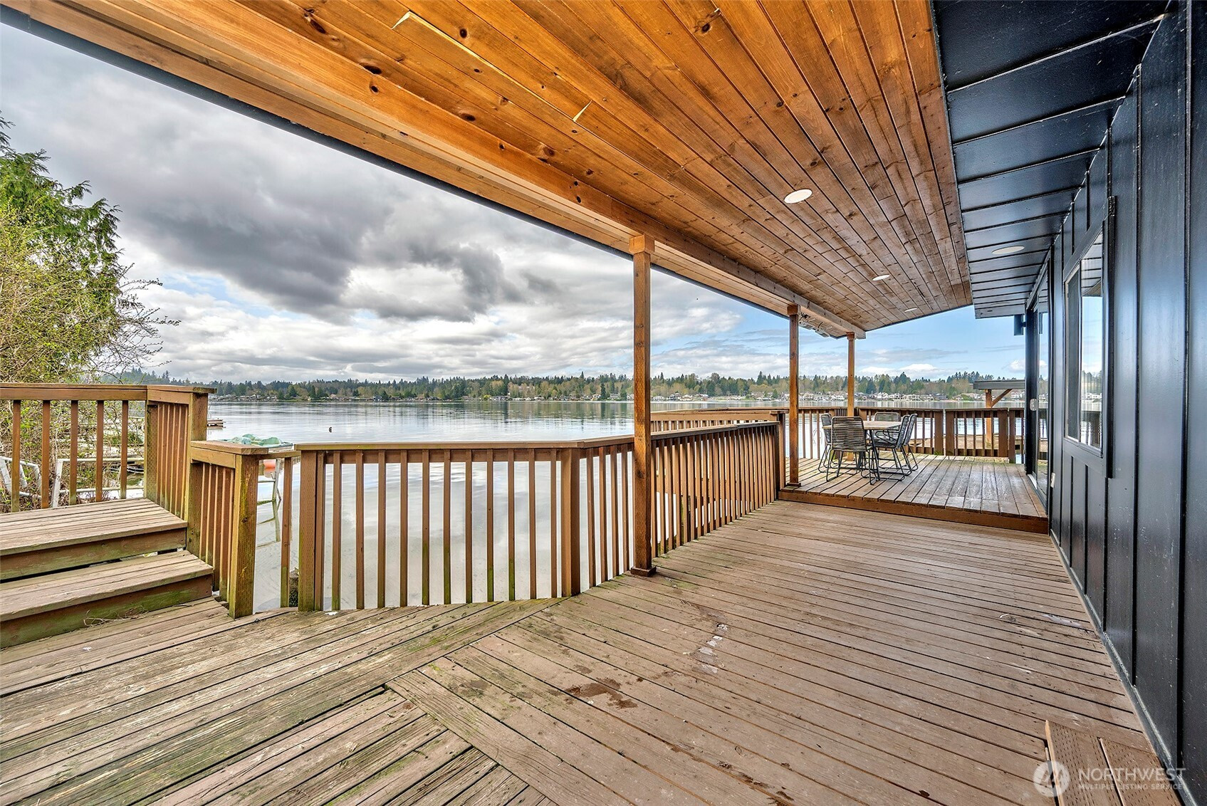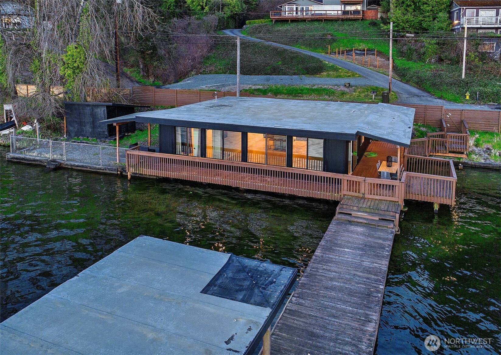 Discover the allure of waterfront living with this exceptional property on Lake Stevens. Designed to maximize breathtaking lake views, this home offers the perfect setting for relaxation and outdoor enjoyment. Step outside onto the wraparound deck, ideal for entertaining or simply soaking in the serene surroundings. Inside, the great room showcases stunning exposed wood beams and expansive windows that bathe the space in natural light and frame the tranquil waterscape beyond. The primary en-suite bedroom boasts its own private deck, offering a peaceful retreat. The secondary bathroom features a luxe double shower and tilework. With potential for short-term rental use, this property presents a unique investment opportunity, providing flexibility for additional income (subject to city approval). The property includes a parking easement across the street on a gravel drive, with the possibility of adding a garage and additional tandem parking next to the home (verify with the city). This home offers not only a spectacular waterfront lifestyle but also the potential for future development, making it a rare and valuable find in the Lake Stevens area. Sold "As Is, Where Is" as a receivership sale. For more information, please contact listing broker. Don’t miss out on this remarkable opportunity to own a piece of waterfront paradise! WARNING-DO NOT WALK ON THE DOCK.