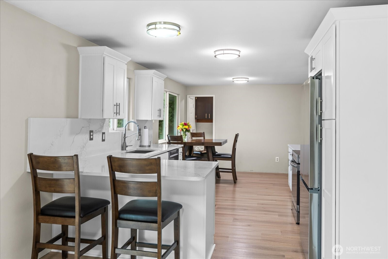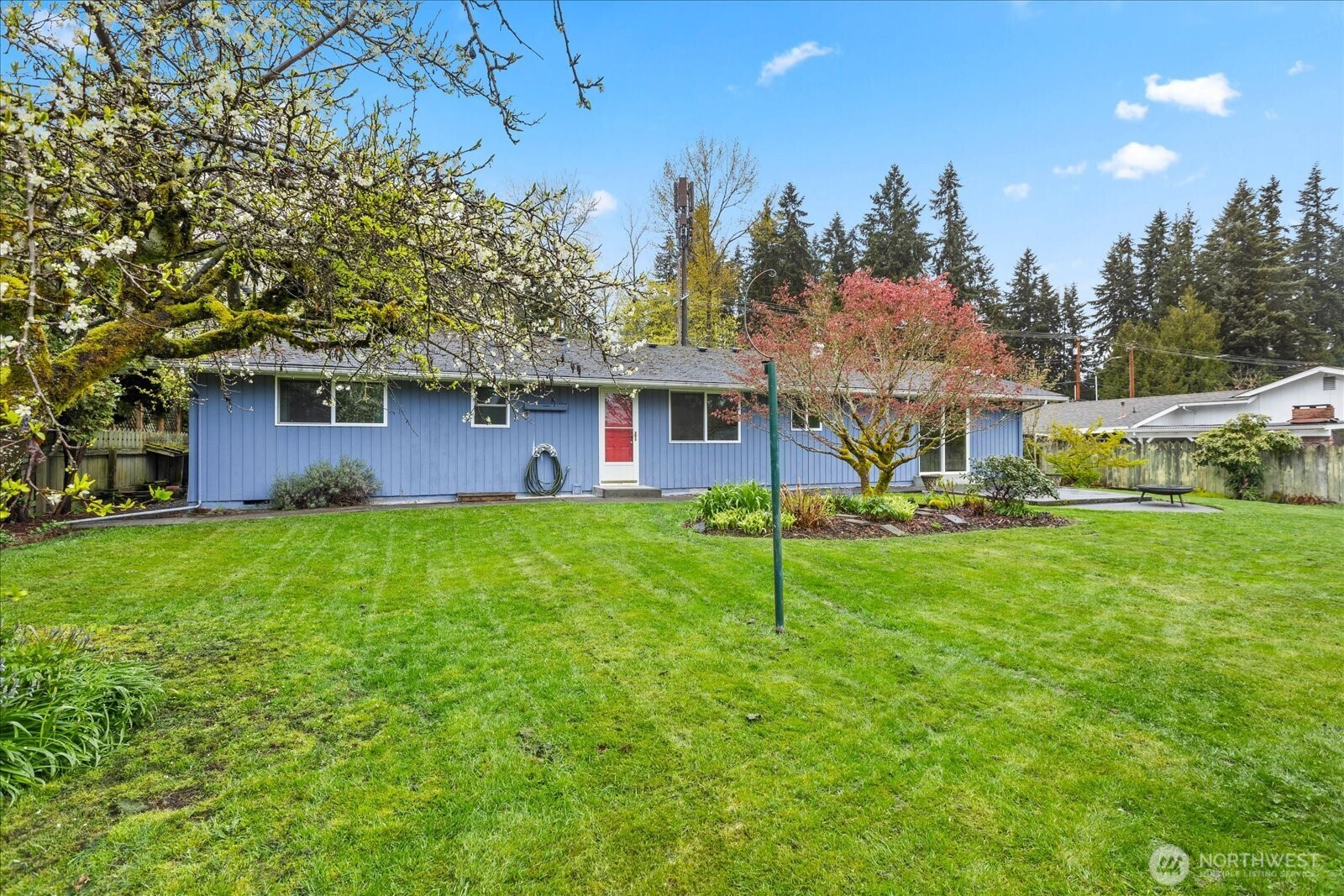 Homes that offer flexibility are hard to find, and this one delivers with single-level living, a spacious yard, and a location that keeps life moving with shopping nearby (Costco, Target, Trader Joe’s), dining in Mill Creek and downtown Everett, Boeing less than 7 miles away and Paine Field nearby for easy travel.Updated flooring throughout the main living areas and a kitchen updated in 2023 with quartz countertops, matching backsplash, white cabinetry, and stainless steel appliances are already in place, with room to continue updates over time.The generous backyard includes fruit trees and space for gardening, outdoor gatherings, or additional parking flexibility, and on clear days, you might even catch a glimpse of parachuters drifting down in nearby Snohomish!