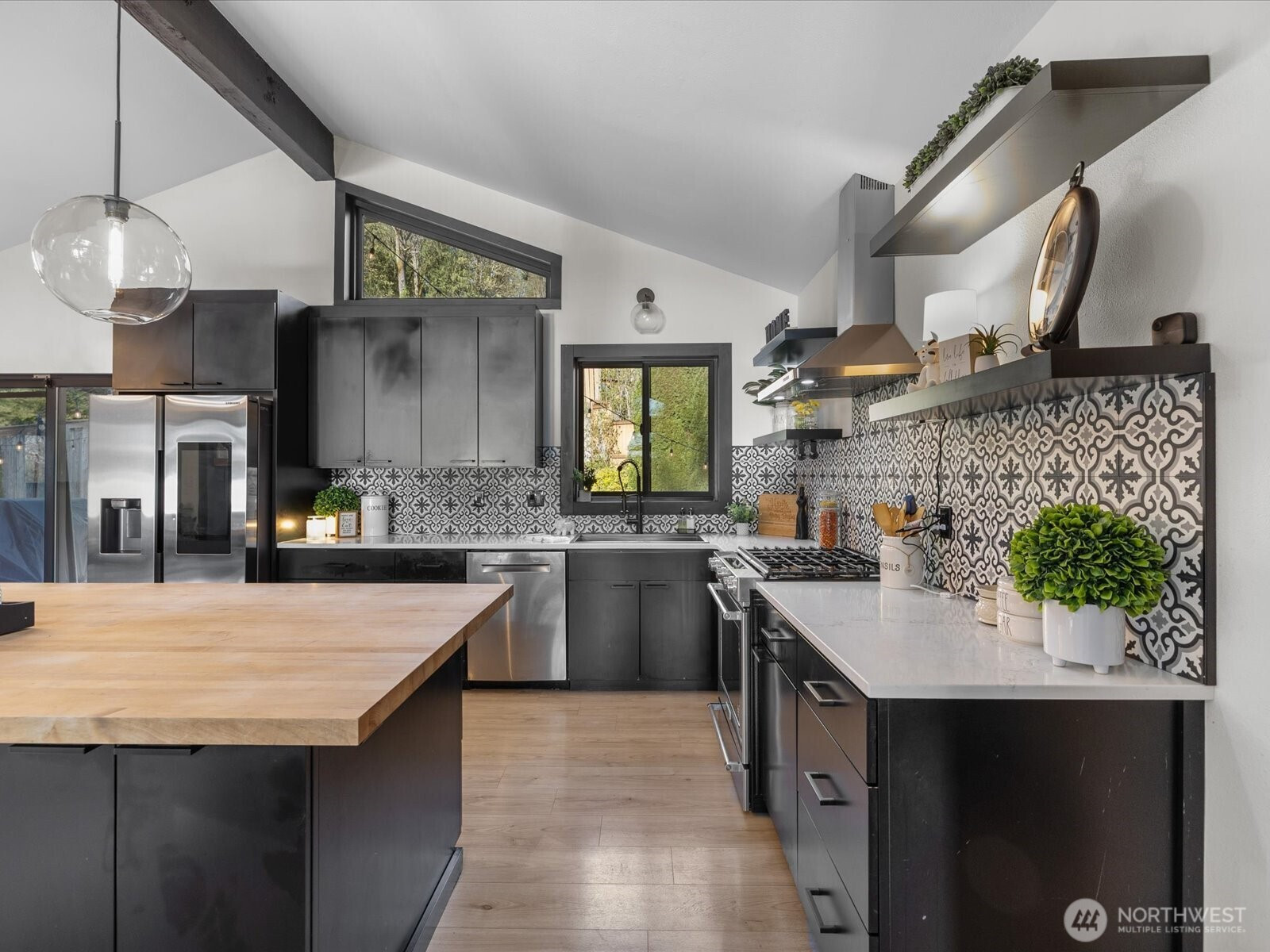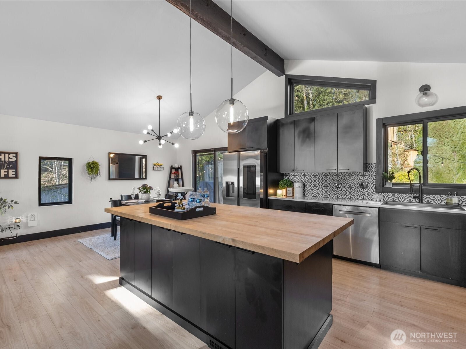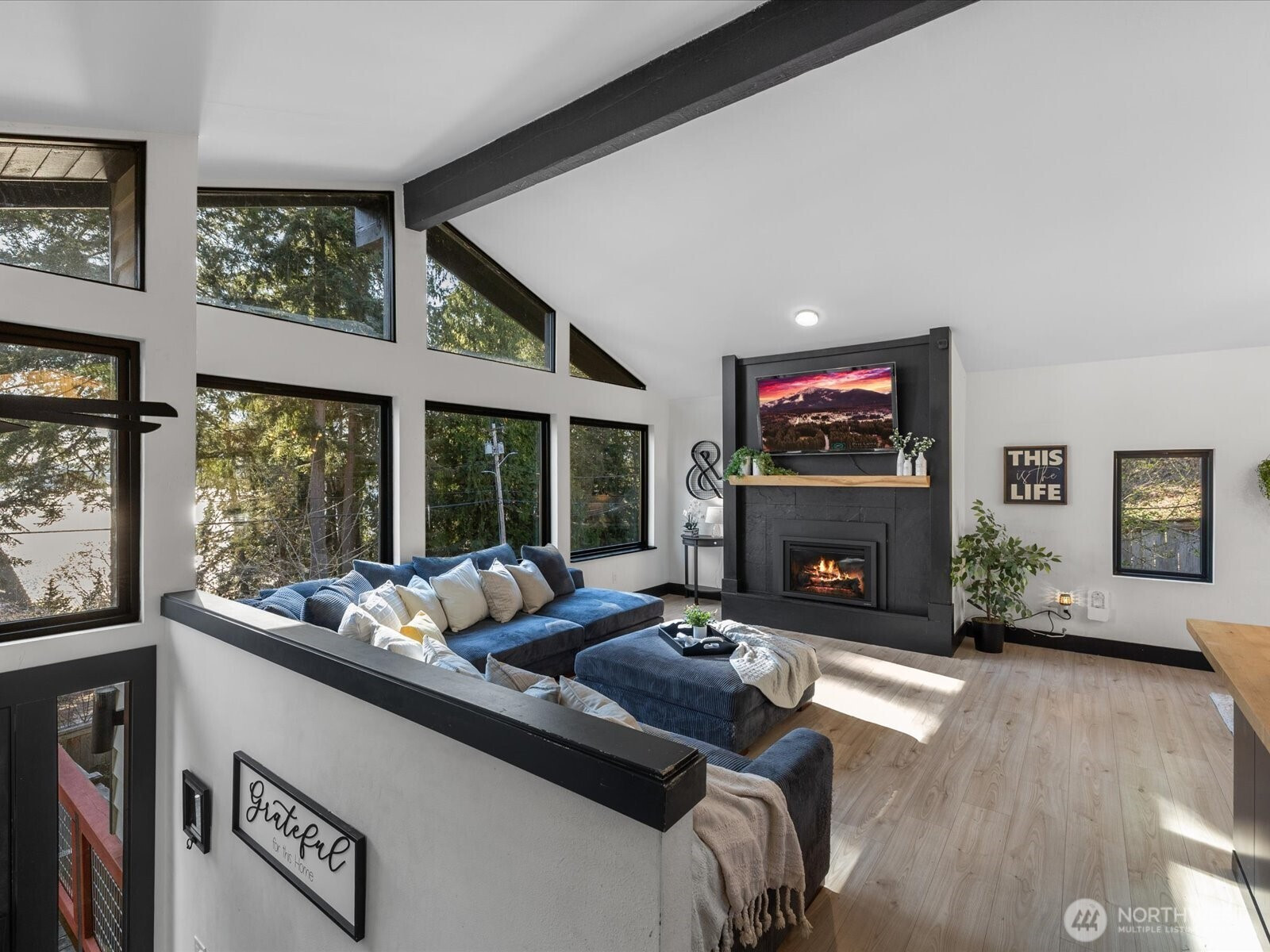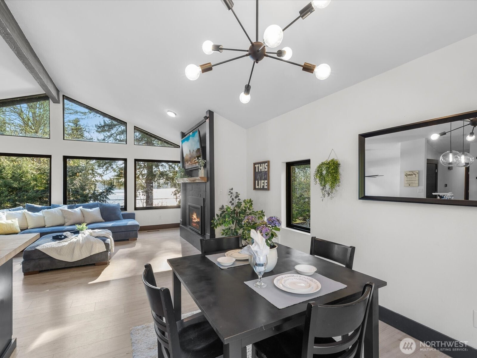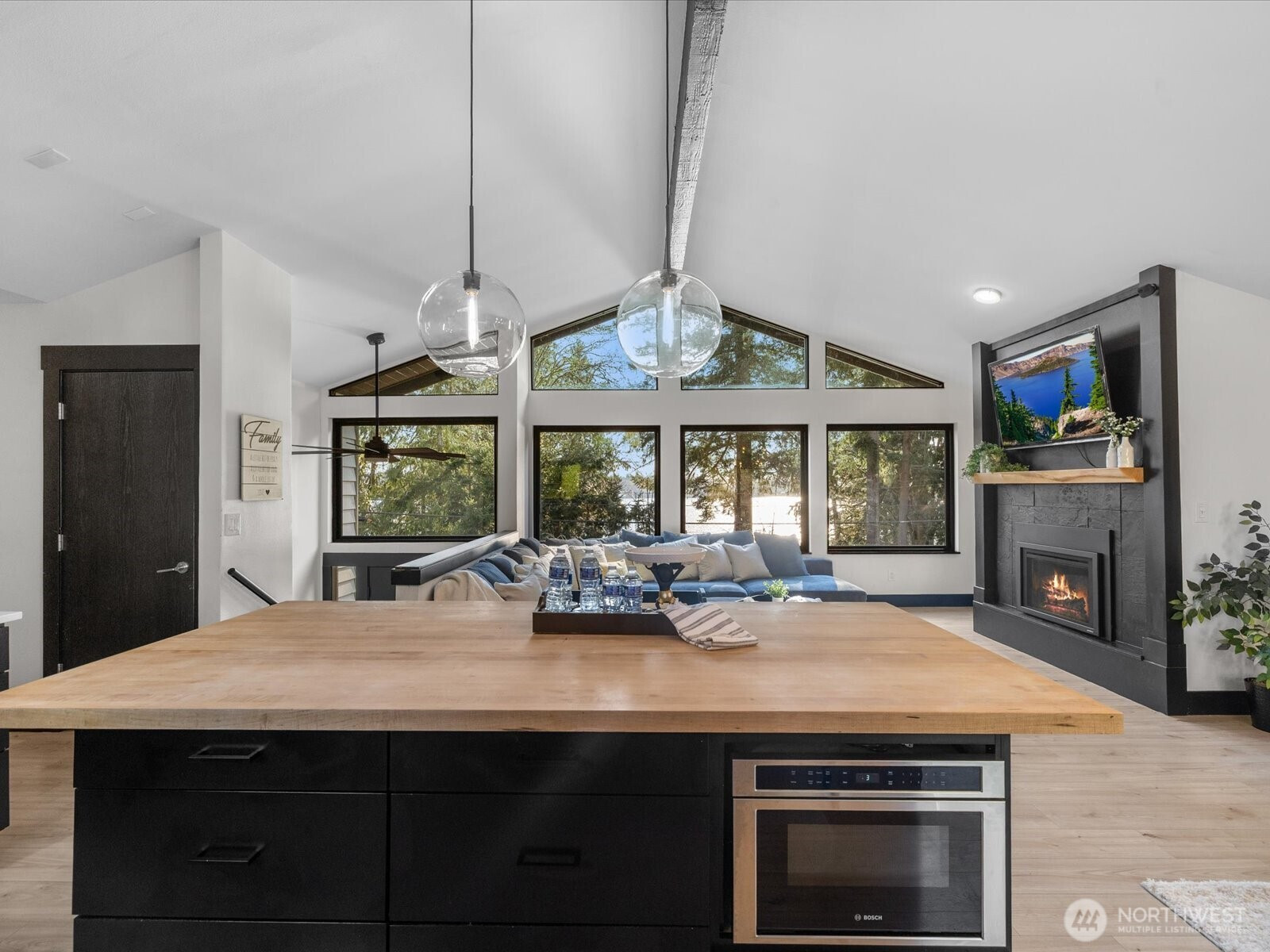 Experience the best of [LAKEVIEW LIVING] in beautiful Lake Stevens! Perfectly positioned directly across the street from the lake, this stunning home offers breathtaking water views from nearly every room! Thoughtfully remodeled throughout, it features stylish LVP flooring, brand new luxe carpet, a designer kitchen with quartz countertops, a butcher block island, stainless steel appliances, and a gas stove. Designer touches, renovated bathrooms, and updated fixtures can be found throughout the home, adding a refined and modern feel. Enjoy seamless indoor-outdoor living with a slider that opens to the back deck-ideal for entertaining. With primary suites on BOTH levels, this home offers exceptional flexibility. The lower-level primary suite impresses with a custom fireplace, spa-like ensuite bath, a spacious walk-in closet, and convenient washer and dryer connection. Stay comfortable year-round with air conditioning and TWO cozy fireplaces. New custom black designer windows beautifully frame the lake views, while ample parking and an unbeatable location complete this exceptional property. No HOA, welcome home!