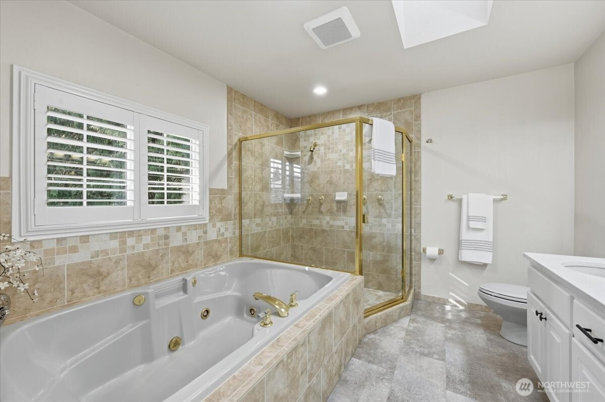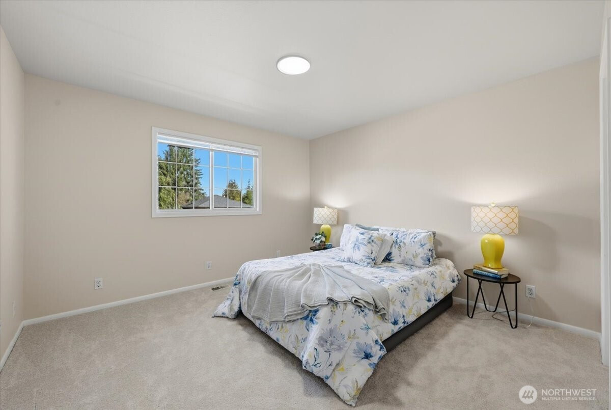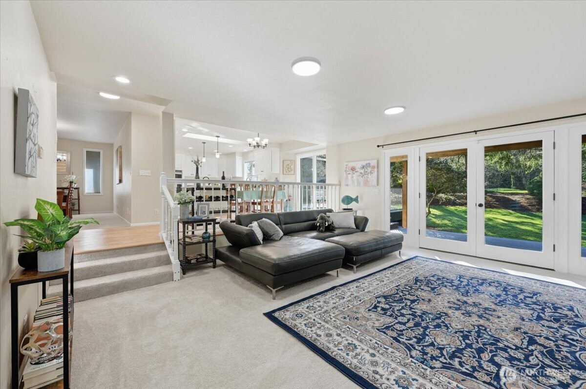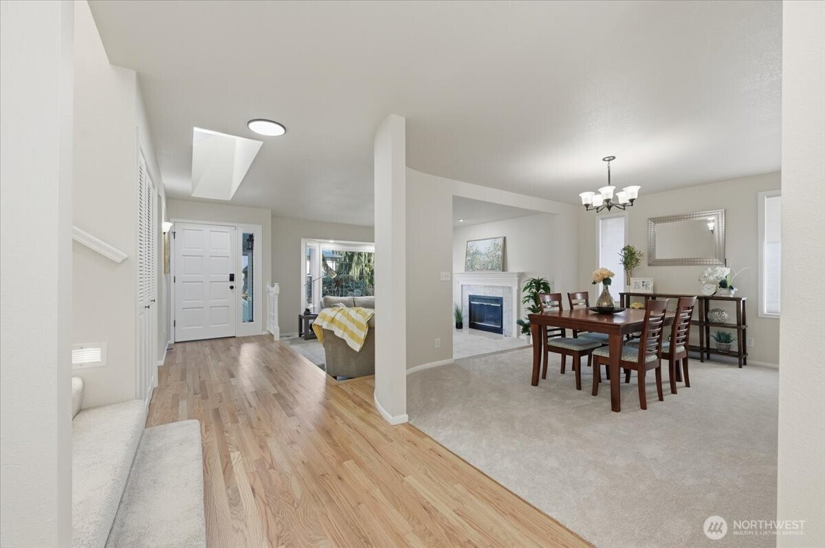 Welcome to this beautifully updated home in the desirable Kings Ridge neighborhood. This spacious 4-bedroom, 3-bath residence features a sought-after main-floor bedroom with full bath—ideal for guests or multigenerational living. Enjoy both formal and casual dining, along with separate living and family rooms designed for everyday comfort and effortless entertaining.The open-concept layout showcases a stunning kitchen with new appliances, quartz countertops, pantry, abundant storage, and bright, energy-efficient lighting. Newly refinished hardwoods, brand-new carpet, and much of the interior has been freshly painted to create a crisp, modern feel throughout. French doors open to expansive, newly rebuilt composite decks—perfect for relaxing or hosting gatherings.Upstairs, the generous primary suite offers a walk-in closet, luxurious five-piece bath, and private deck access. Additional well-sized bedrooms complete the upper level. Updated bathrooms feature Kohler fixtures, new countertops, and faucets. Enjoy peace of mind with a newer roof and A/C. Exterior newly repainted as well. Ideally located near I-5, Hwy 9, Silver Lake, minutes to Mill Creek Towne Center, shopping, dining, and community trails and play courts, this move-in-ready home offers the perfect blend of comfort, convenience, and lifestyle.