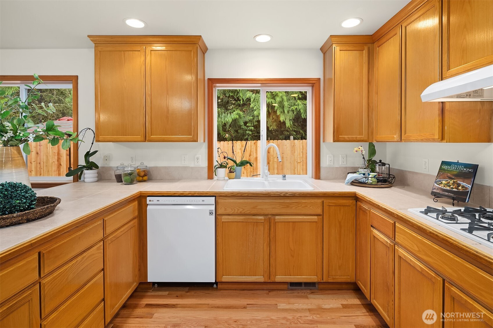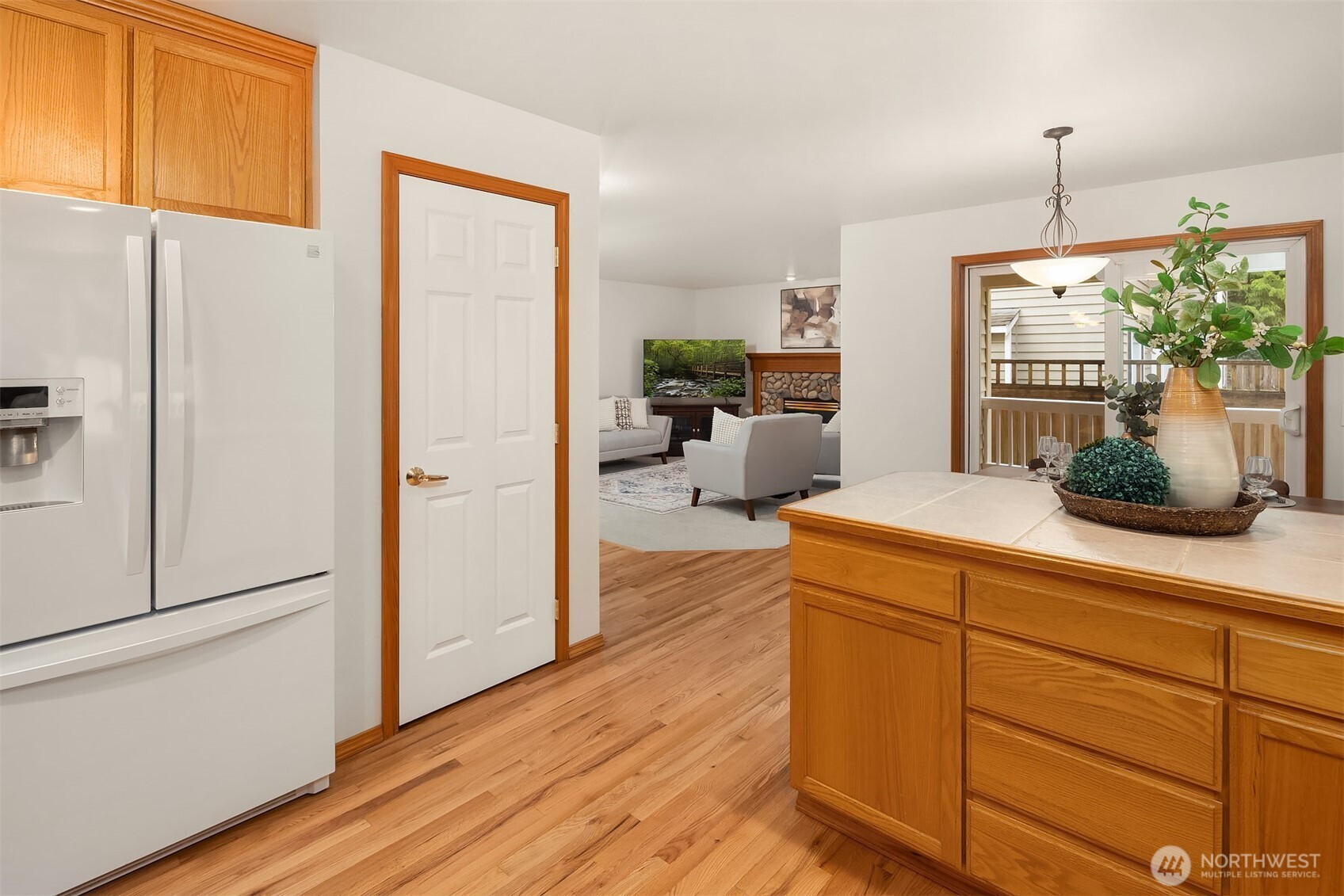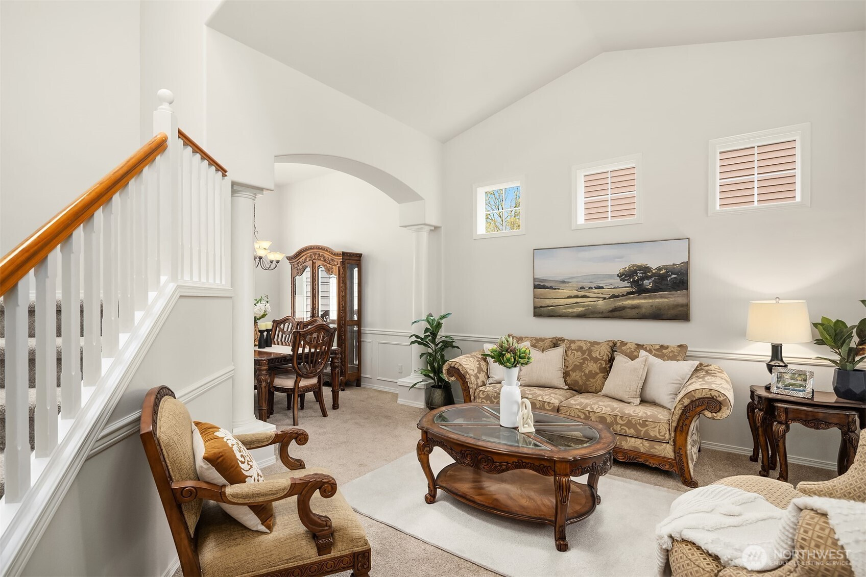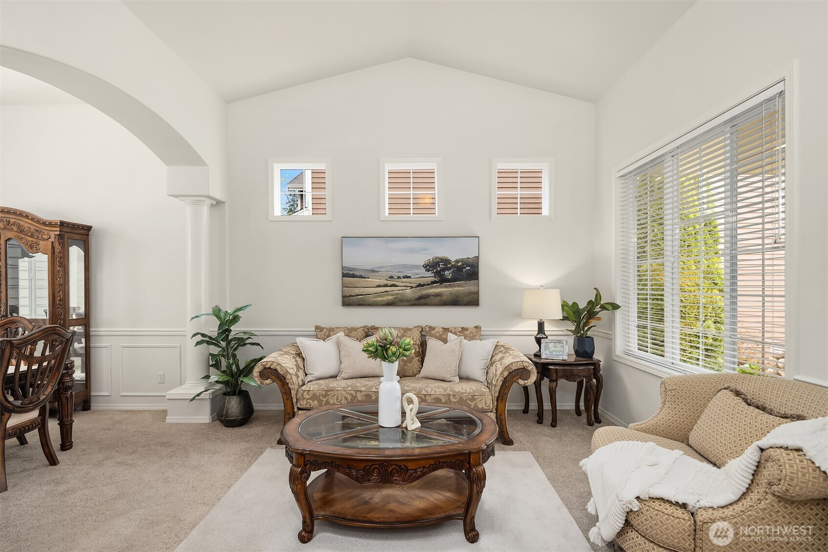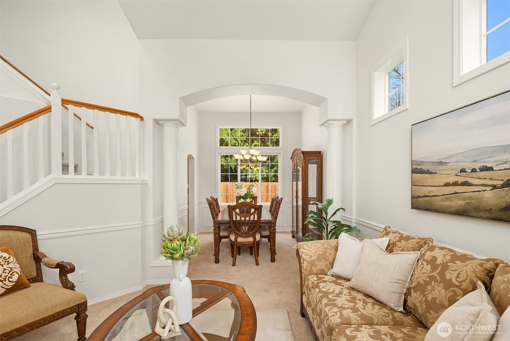 Northwest classic in sought-after Foxwood Meadows offering timeless charm and a comfortable, functional layout. The main level features a bright living room with vaulted ceilings, a formal dining room with column accents, private den, powder room, and a warm, inviting family room with stone fireplace. The kitchen includes a brand-new oven and microwave, hardwood floors, and a sunny breakfast nook with French doors opening to a covered deck. Enjoy a spacious patio perfect for entertaining and summer BBQs. Upstairs boasts a generous primary suite with serene greenbelt views and a five piece bath with soaking tub, separate shower, and double vanity. Three additional bedrooms, full bath, and laundry room complete the level. Spacious three-car garage. Enjoy proximity to the community park, shopping, highways, and Everett schools.