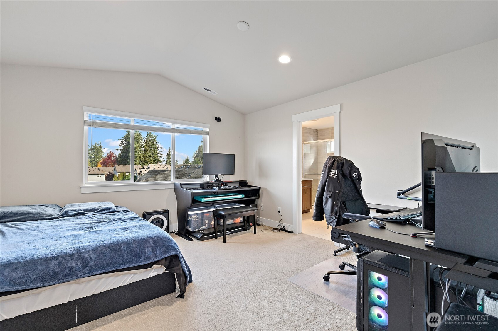 Cul-de-sac! High Quality Finishes! 2 Primary Suites! Lower Primary with slider to patio is perfect for quiet work-from-home space or separated bonus room. 2nd primary suite on upper level with slab quartz counter & double vanity. 2 additional spacious bedrooms on upper level. Living room has gas fireplace with full height tile surround. Kitchen with slab quartz, soft close cabinets & huge island. Slider to the front deck off the kitchen. Large dining room for plenty of entertaining. Guest parking, community park & low HOA dues. Close to Park n Ride, Martha Lake & Light Rail!