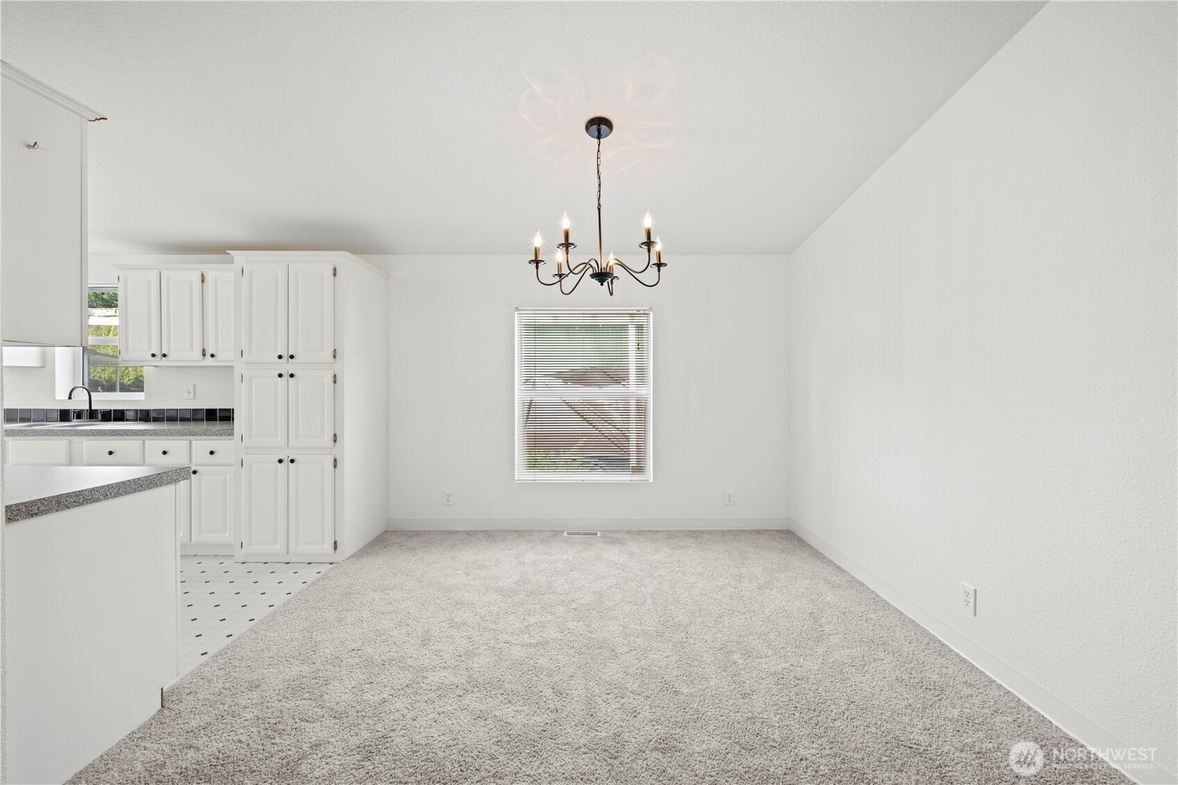 Welcome to this peaceful 55+ neighborhood featuring a super tidy, move-in ready home available. Ideally located close to shopping, dining, and everyday essentials, but tucked away so quietly, many don't even know it's here. This home has been carefully refreshed with fresh interior paint and brand-new carpet. Lighting, faucets, and updated touches throughout. Lovely kitchen has great storage and counter space, a bright breakfast nook, and an open flow into the dining room. Vaulted ceilings and big windows emphasize all the space and natural light in this lovely home. Enjoy the flexibility of two living areas: cozy up to the electric fireplace in the den or move it out into the large living room to suit your style. Big primary bedroom has a walk-in closet and its own bathroom with both a shower and a tub. And on the other side of the home are two more bedrooms with another full bathroom and tub. Great space for your hobbies and crafts or set up an office and a guest room besides. Step outside to the peaceful gardens and a screened in porch. Perfect for enjoying the outdoors in comfort, night or day. Super deep and wide carport parks 2 or 3 cars. And the shed at the end is roomy for all your gardening tools or extra storage. If you're looking for a quiet, low-maintenance lifestyle in a convenient location, this home delivers a warm welcome every time you walk in the door.