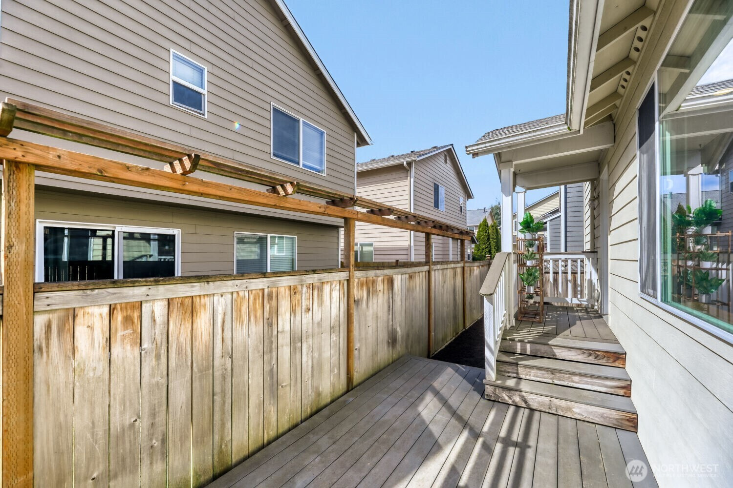 Modern living meets cottage charm in this stunning detached home in a quiet community. With private lot living and low $35 monthly HOA dues, this 1,654 sq ft gem is move-in ready. Enjoy fresh paint and solid hardwood floors. The refreshed modern kitchen is a chef's delight, boasting granite countertops, a modern faucet, and updated appliances including a new fridge, dishwasher, stove, and microwave. The main floor offers a seamless flow, opening to a sun-drenched great room anchored by a cozy gas fireplace perfect for entertaining. The king-size primary suite features a walk-in closet and a private ensuite bath. The upper level provides versatility with two additional spacious bedrooms, and a second full bath. Enjoy the convenience of a second-floor laundry, a central forced air system, and a two-car attached garage. Outdoor living is easy on your private deck within a fully fenced yard, ideal for pets or weekend gatherings. Tucked away on a quiet dead-end street, you are minutes from retail and dining at Alderwood Mall, Costco, and Safeway. This location is a commuter's dream with instant access to I-5 and the Ash Way or Mariner Park and Rides, plus future growth potential near the planned Everett Link Extension for light rail access. With modern updates and an unbeatable location, this home is a rare find. No Rental Cap!!