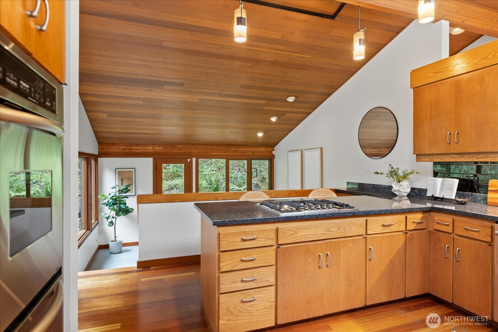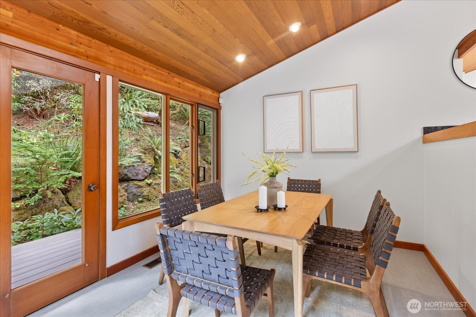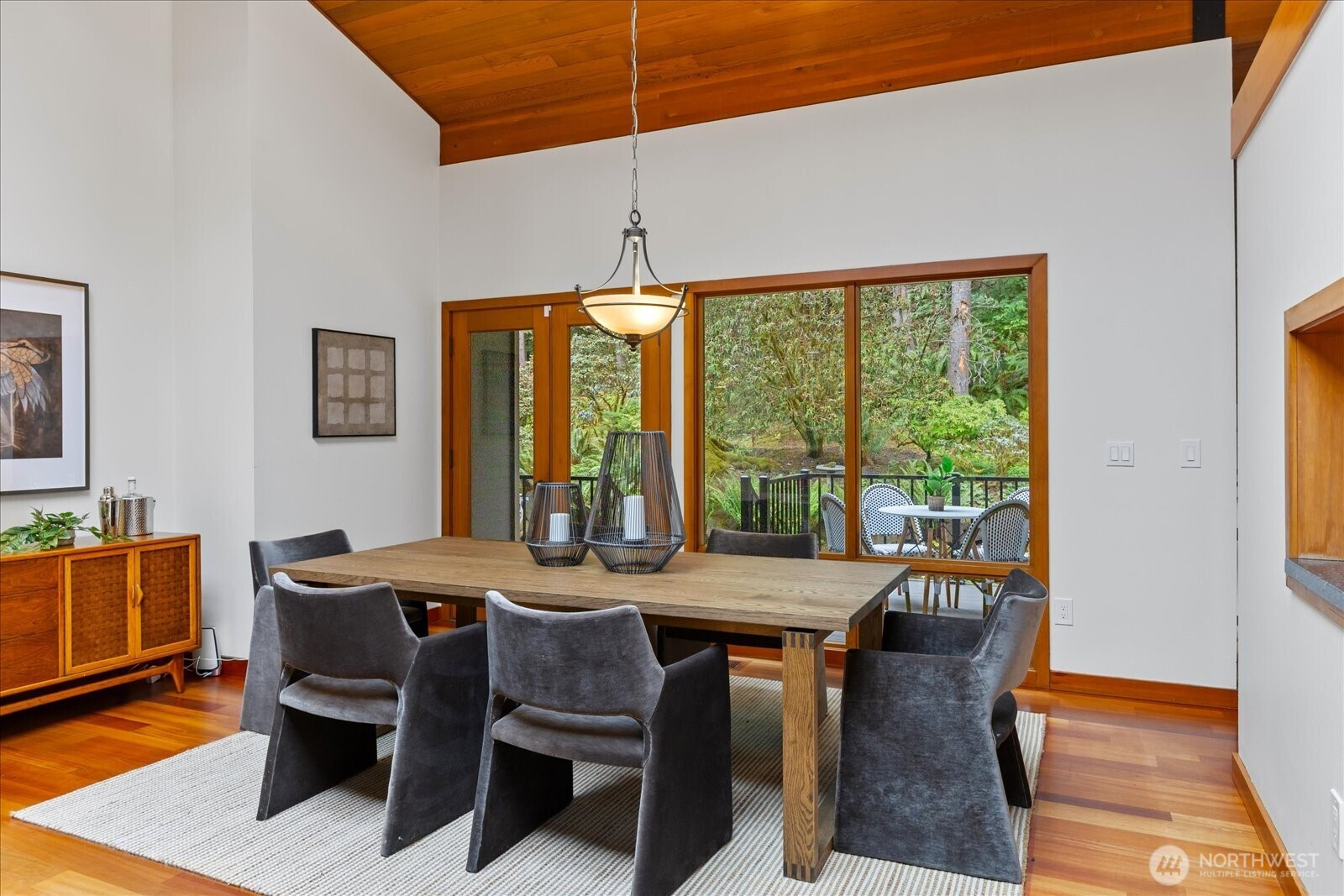 Gated Northwest contemporary on secluded 2 acres. Soaring cedar ceilings and 24 skylights offer a bright, open living space while oversized picture windows showcase the stunning grounds. All new composite decks include a large entertaining deck connecting living room, den and primary suite. Relaxed yet elegant living spaces include main floor primary suite with 5 piece bath/large walk in connected to the oversized laundry plus first floor guest room and bath. 2006 2nd story addition features amazing game room with wet bar, another 2 beds and 3/4 bath. Huge heated garage with room for workouts, workshop and storage. Deer graze by the pond/waterfall and evening brings owl calls while spring dazzles with unique rhododendrons. Quiet private road connects to Deer Creek Reserve walking trails. Minutes to both Richmond Beach Salt Water Park and Edmonds Waterfront. Enjoy all downtown Edmonds has to offer, shops, dining, galleries, beaches, ferry and train!