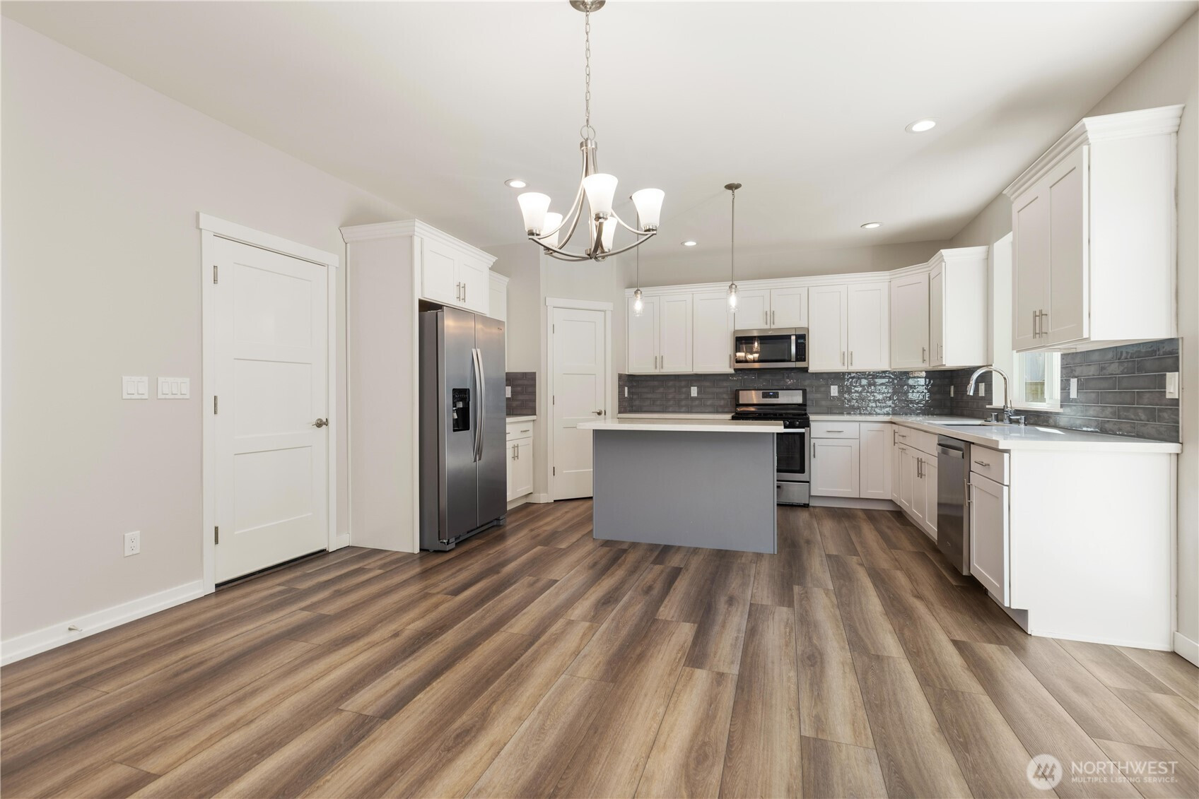 Welcome to this nearly new home, thoughtfully designed with high quality upgrades and stylish finishes throughout. An inviting open-concept floorplan features a spacious great room, perfect for everyday living and entertaining. The light-filled kitchen boasts quartz countertops, soft-close cabinetry, stainless steel appliances including a gas stovetop, and a beautifully tiled backsplash. The primary suite offers a spa-like retreat with a freestanding soaking tub, separate shower, dual sinks, and a generous walk-in closet. For added flexibility, the main-floor Office or Bedroom has the convenience of a full bath—ideal for guests or multigenerational living. Outside, enjoy low-maintenance landscaping and fenced backyard. Additional features include air conditioning, tankless water heater, a two-car garage, and extra parking. Conveniently located near I-5, Mill Creek Town Center, Silver Lake, shopping, dining, and parks, with the McCollum Park Park & Ride just a short walk away.