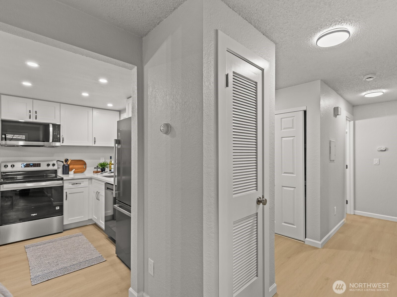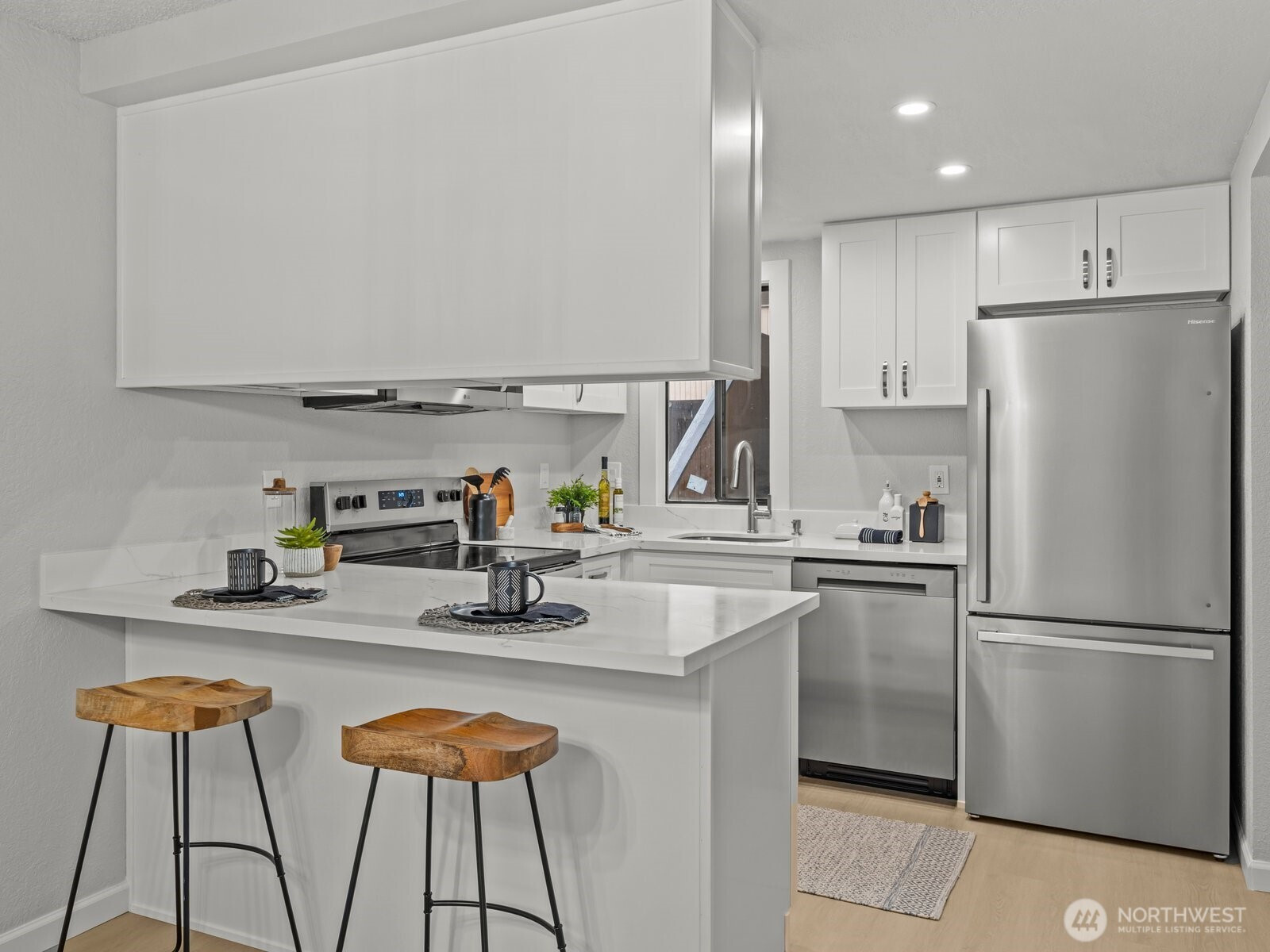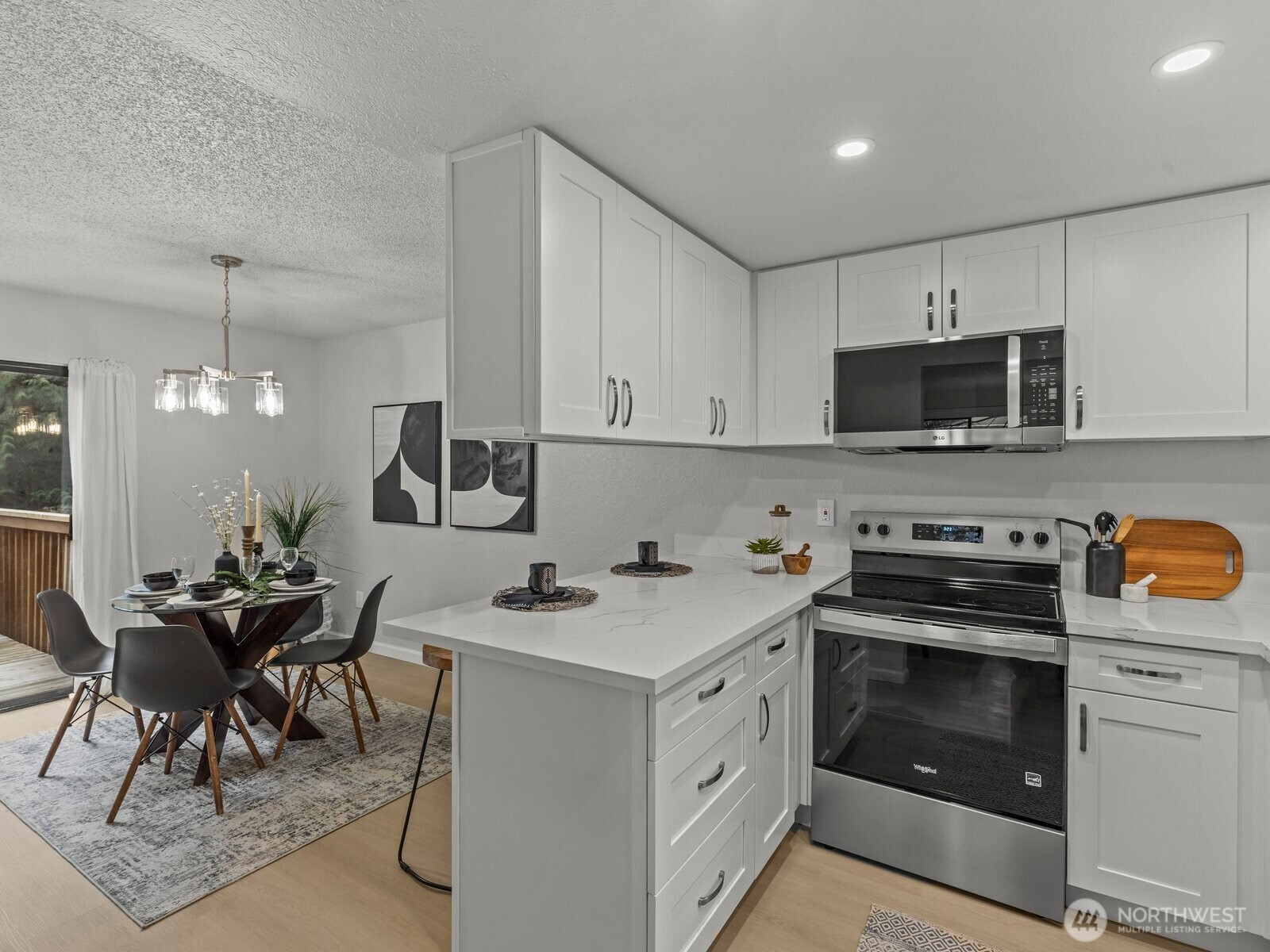 Welcome to Woodside Condominiums, where you’ll find this beautifully updated ground floor, corner unit. As you enter, you’ll notice the brand new luxury vinyl plank flooring throughout the ideal layout. To the right is the roomy kitchen with gorgeous soft-close cabinets and quartz counters along with stainless steel appliances. The nearby eating area and living room provide access to the deck. Down the hall is a generous spare bedroom and your primary bedroom. Enjoy a walk-through closet and access to the bathroom with new vanities and tiled shower. In unit laundry, low HOA dues, new lighting, fresh interior paint and easy access to HWY 99 and I-5 round out this amazing opportunity for homeownership. Come make it yours!