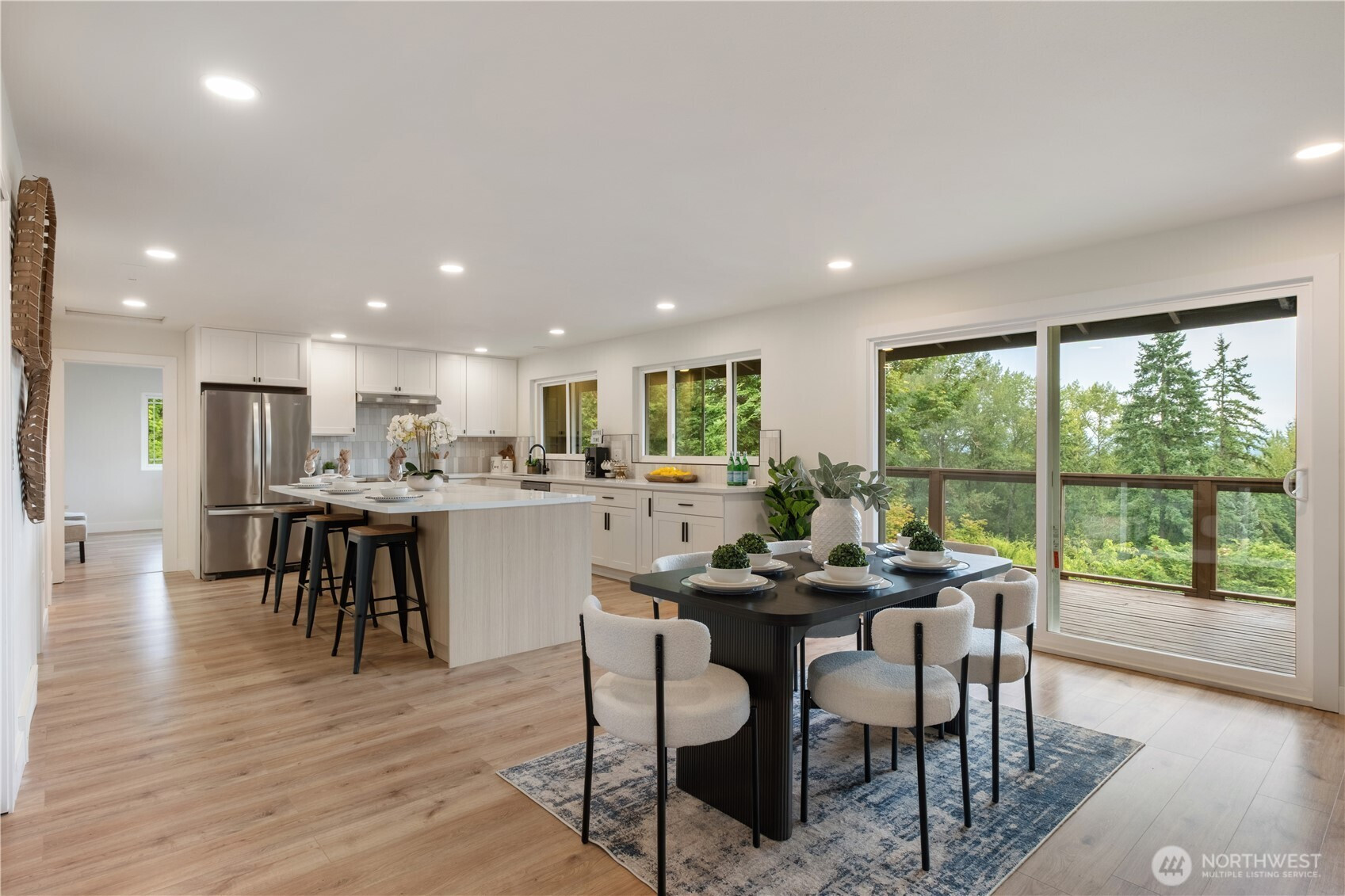 Your dream home awaits with breathtaking views and thoughtfully curated luxury features throughout. From the moment you arrive, you’ll feel the balance of peaceful country living and modern comfort that defines this property. At the heart of the home is a chef-inspired kitchen designed to gather and impress, featuring a 36” professional range, an expansive island with abundant storage, sleek quartz countertops, and a seamless flow into the dining and living room. This open-concept layout creates the perfect setting. Primary suite offers a true retreat, complete with a spacious walk-in closet, private deck access, and a spa-like bathroom designed for relaxation. Unwind in the soaking tub or enjoy the beautifully designed walk-in shower with custom tile work that adds a touch of elegance and character. The flexible floor plan provides room to grow and adapt, with three additional bedrooms and a cozy family room that invites connection. The lower level expands the possibilities, featuring a wet bar, bathroom, and an additional bedroom ideal for a potential MIL suite, multi-generational living, or extended guest stays. Step outside and take in everything this property has to offer. An oversized patio and large deck create the perfect backdrop for entertaining or simply enjoying the surrounding views. For those seeking space and functionality, the property includes a small horse or animal stable, an an open barn, and multiple opportunities for hobbies, storage, or future use