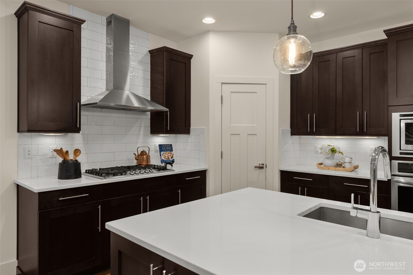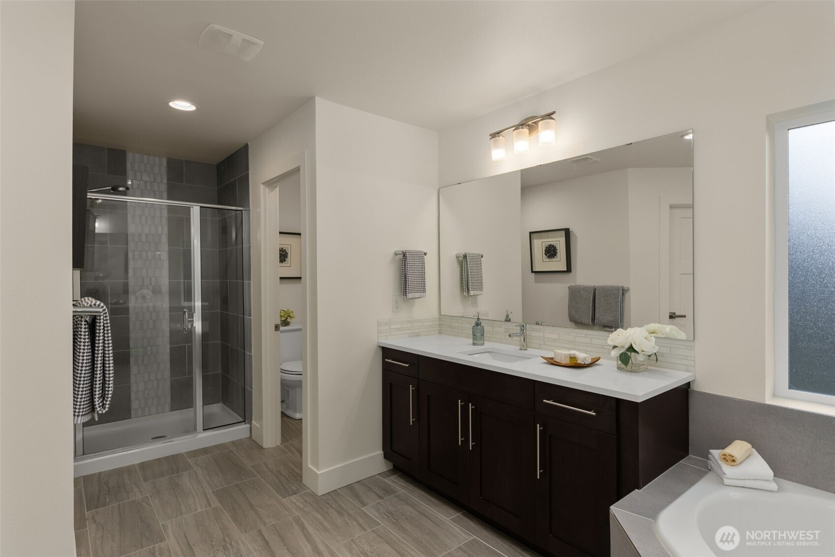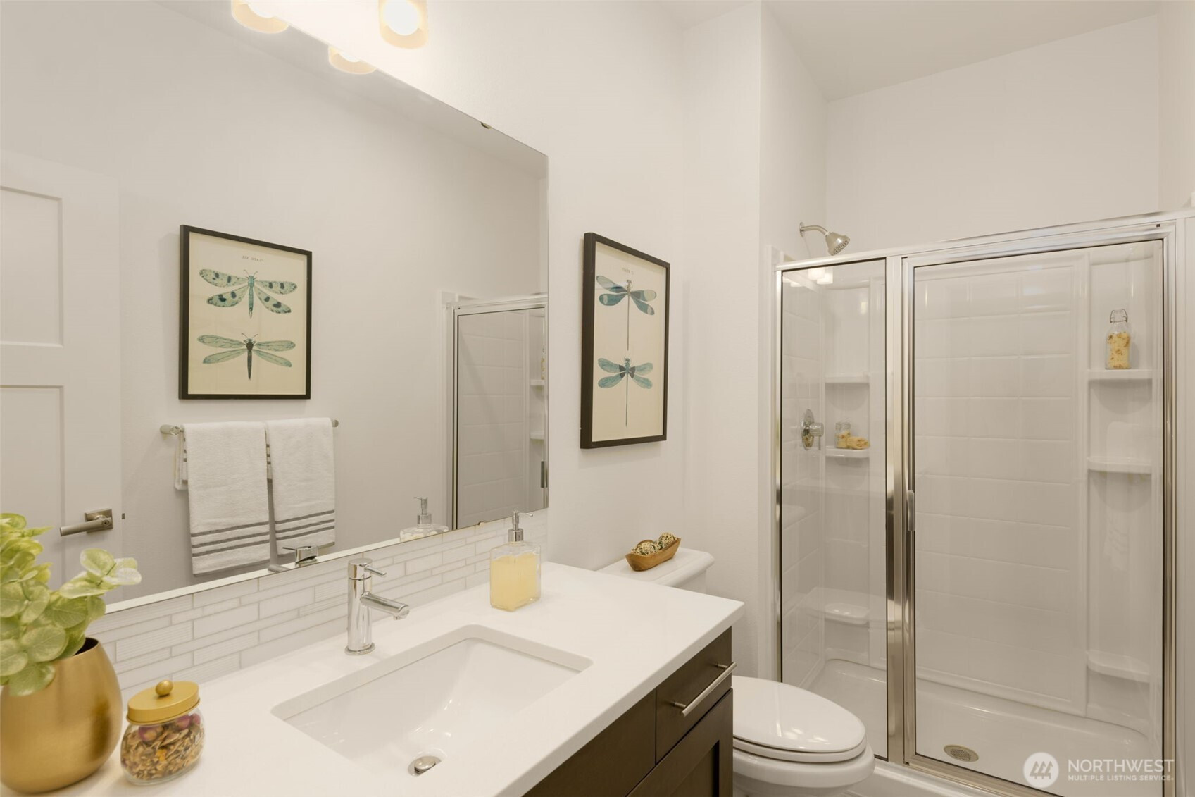 Welcome to the sought-after Aravalli community in Pacific Ridge’s Bothell neighborhood. This North-facing Kimball plan is one of the builder’s most popular layouts offering 5 bedrooms, including a main-level bedroom or den with a ¾ bath, perfect for guests or a private home office. Designed for both everyday living and effortless hosting, the bright, open layout flows beautifully. The kitchen features quartz slab countertops, a spacious walk-in pantry, and generous prep space for gatherings. Double-pane windows and A/C provide year-round comfort and energy efficiency. Upstairs, you’ll find a spacious loft plus a dedicated tech nook that opens to a balcony, along with generously sized secondary bedrooms. The primary suite offers a ton of privacy and features California Closet–style built-ins for exceptional organization. Upscale finishes include quartz countertops in all baths, iron balusters, and thoughtful modern touches throughout. Fresh interior paint gives the entire home a crisp, move-in-ready feel. Step outside to a covered patio and fully paved, fenced yard designed for easy maintenance and easy entertaining. Located in the award-winning Northshore School District, this home blends comfort, functionality, and convenience in an unbeatable location. Pre-inspected for added peace of mind.