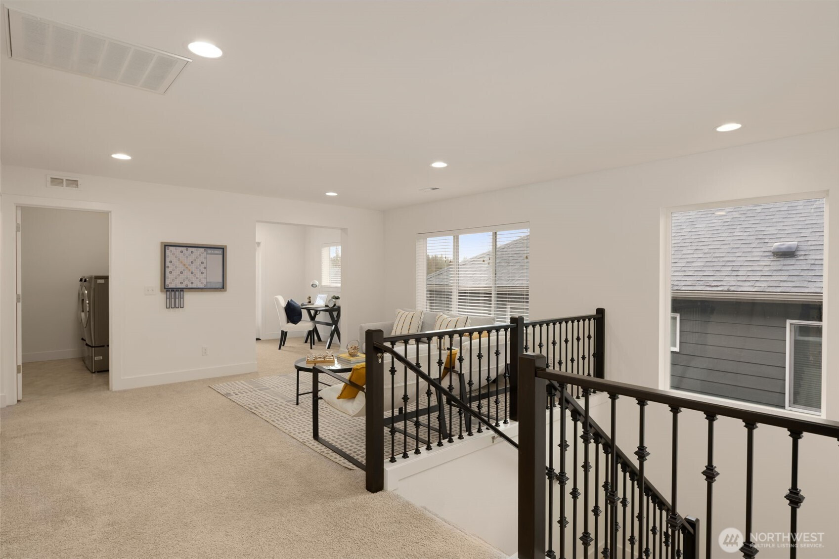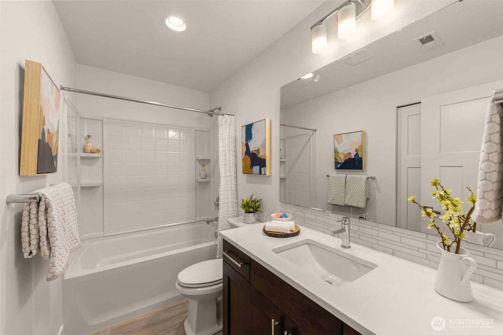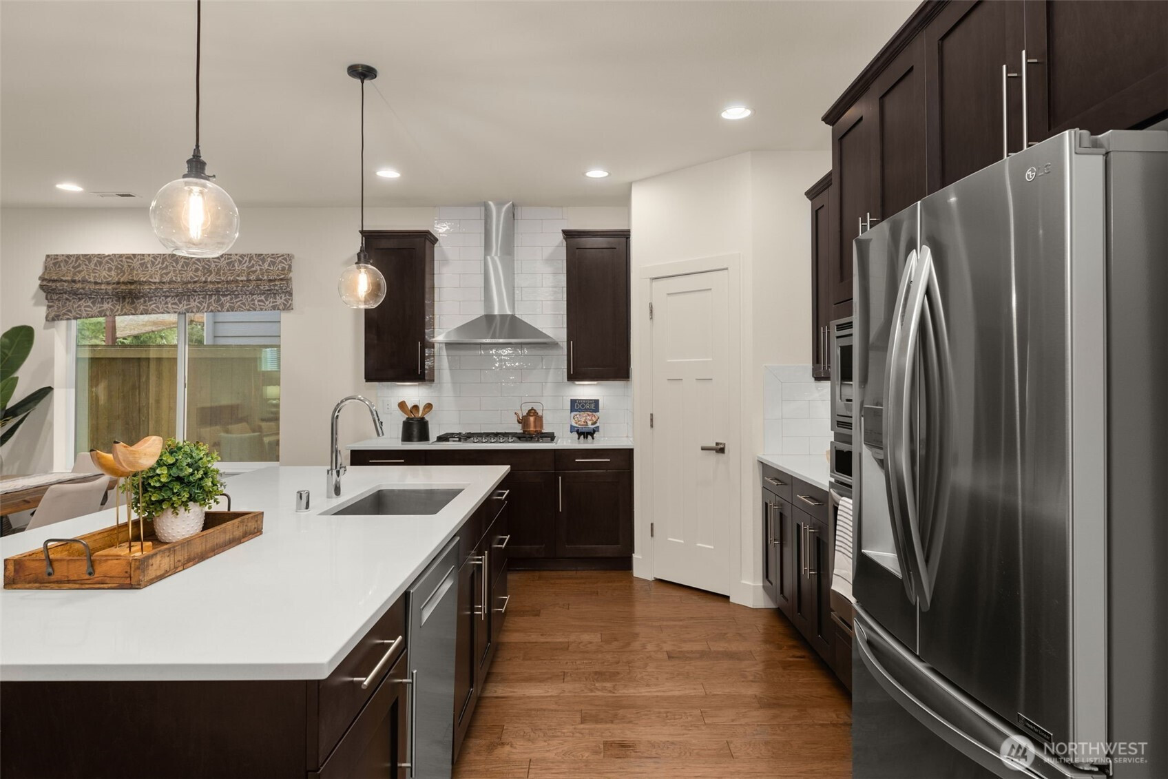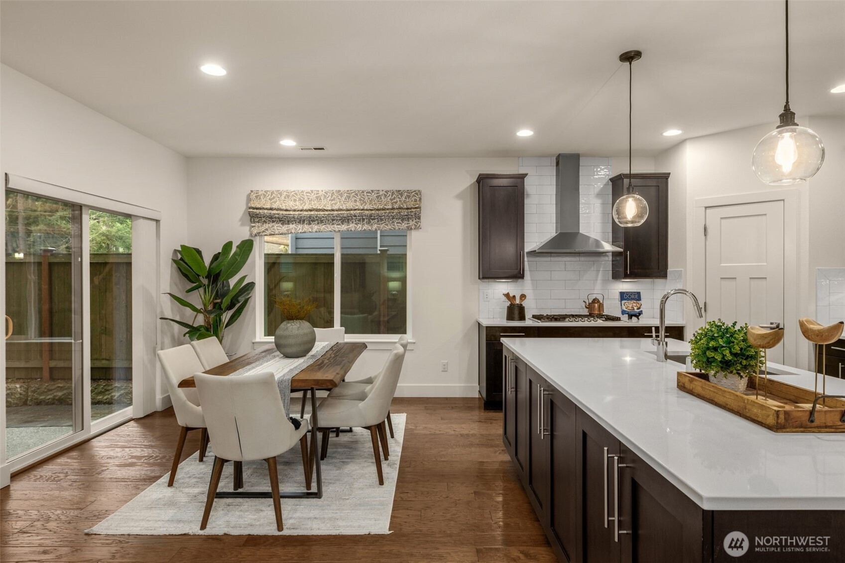 Welcome to the sought-after Aravalli community in Pacific Ridge’s Bothell neighborhood. This North-facing Kimball plan is one of the builder’s most popular layouts offering 5 bedrooms, including a main-level bedroom or den with a ¾ bath, perfect for guests or a private home office. Designed for both everyday living and effortless hosting, the bright, open layout flows beautifully. The kitchen features quartz slab countertops, a spacious walk-in pantry, and generous prep space for gatherings. Double-pane windows and A/C provide year-round comfort and energy efficiency. Upstairs, you’ll find a spacious loft plus a dedicated tech nook that opens to a balcony, along with generously sized secondary bedrooms. The primary suite offers a ton of privacy and features California Closet–style built-ins for exceptional organization. Upscale finishes include quartz countertops in all baths, iron balusters, and thoughtful modern touches throughout. Fresh interior paint gives the entire home a crisp, move-in-ready feel. Step outside to a covered patio and fully paved, fenced yard designed for easy maintenance and easy entertaining. Located in the award-winning Northshore School District, this home blends comfort, functionality, and convenience in an unbeatable location. Pre-inspected for added peace of mind.