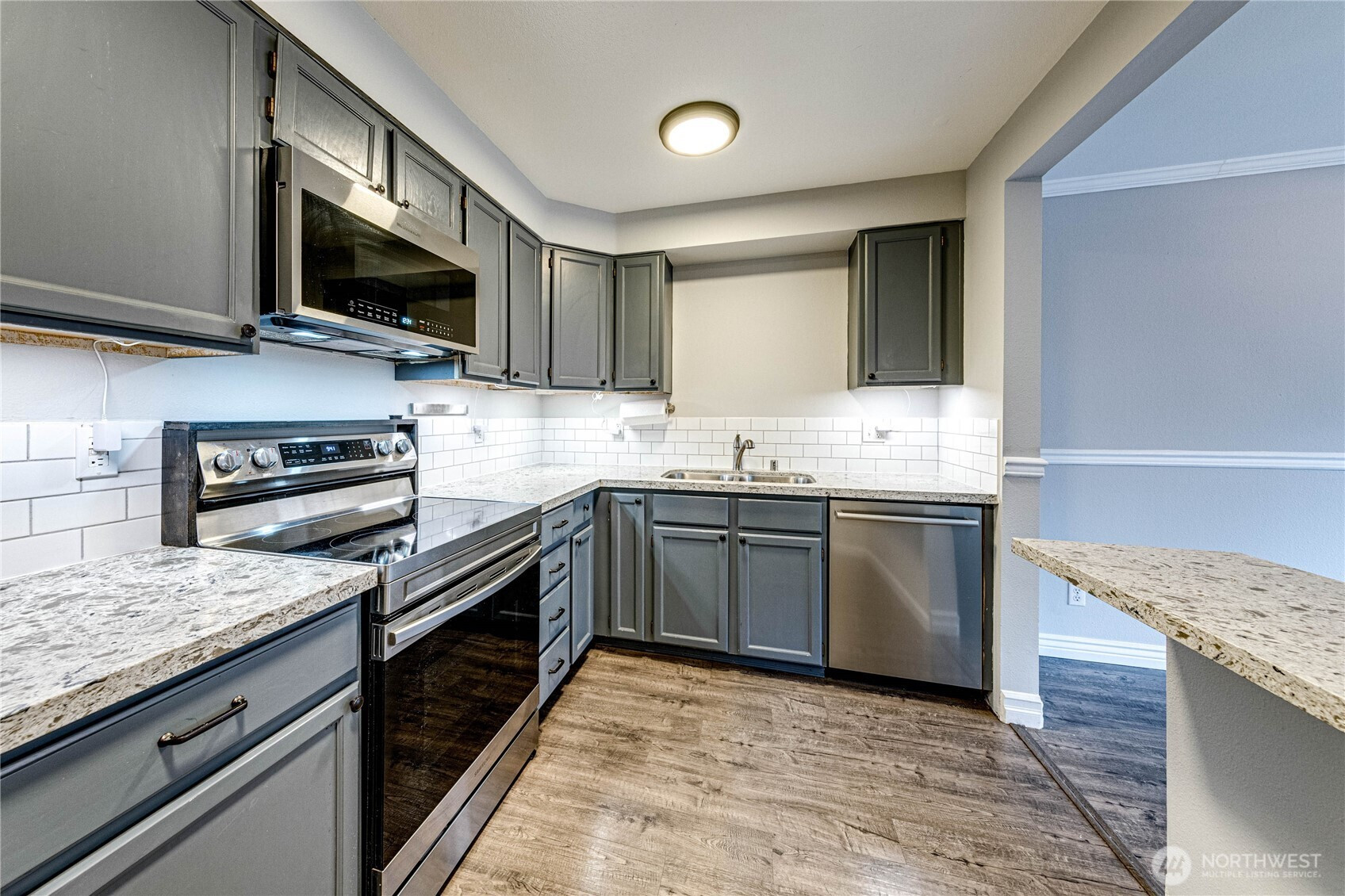 Don't miss this updated 3bed, 2.25bath townhome in ideal South Everett location! Stylish LVP flooring throughout main level featuring an open concept living room, dining room, & kitchen. Newer carpet blankets upstairs where you will find 3 bedrooms, including spacious primary suite w/ oversized closets & en-suite bath. Additional bath & laundry room conveniently located on second level. Fresh paint! Fully fenced, private yard w/ patio perfect for pets & entertaining. Attached garage w/ new 15-year polyaspartic floor coating! Community includes covered picnic table, playscape, & basketball court. Convenient location near all amenities; commuters dream with proximity to Boeing, SR-99, & I-5. Pre-inspection attached.