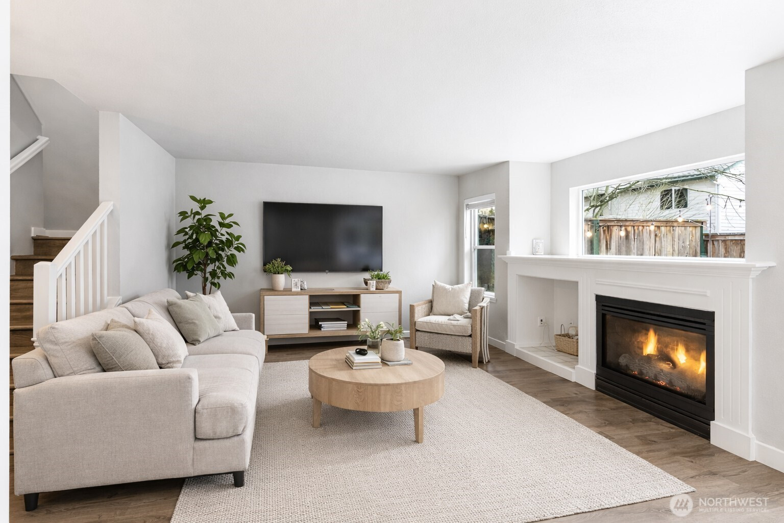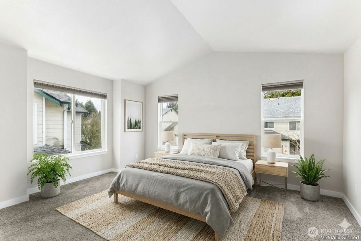 Step into this stunning three bedroom, two and a half bath townhome designed for comfort and convenience. The open-concept main level features Luxury Vinyl Plank Flooring, bright living and dining areas with large windows and a cozy gas fireplace. The updated kitchen boasts quartz counters, ample cabinetry and a spacious island with seating—perfect for entertaining. Upstairs, the primary suite offers generous space, two closets (including a walk-in), a private bath with dual quartz sinks and even blackout blinds. Two oversized bedrooms —each large enough for a king bed—share a full bath with a tub and in-unit laundry adds to everyday ease. Enjoy the private patio that opens to a shared greenbelt/play area, the attached two-car garage, extra storage, 240-volt/ 50-amp EV outlet, a private driveway with room for two more cars and close to I-5, Home Depot, shopping, restaurants and Paine Field!