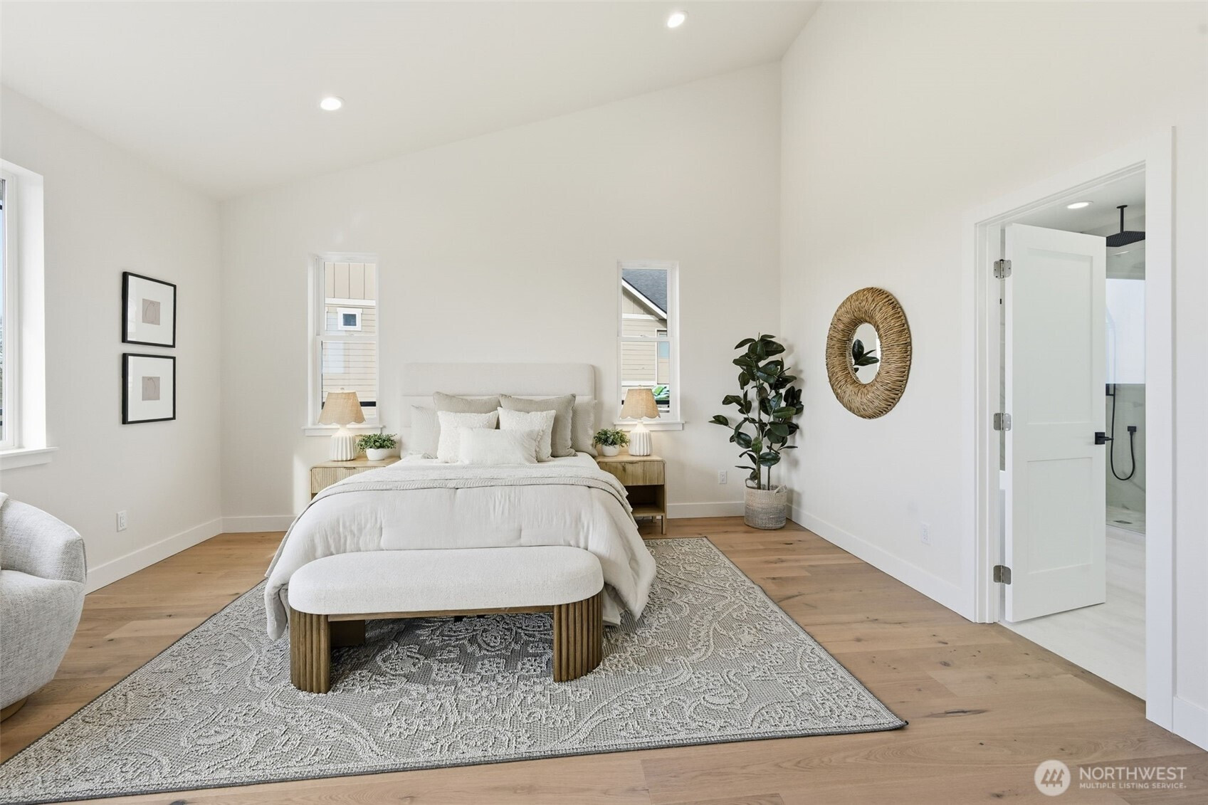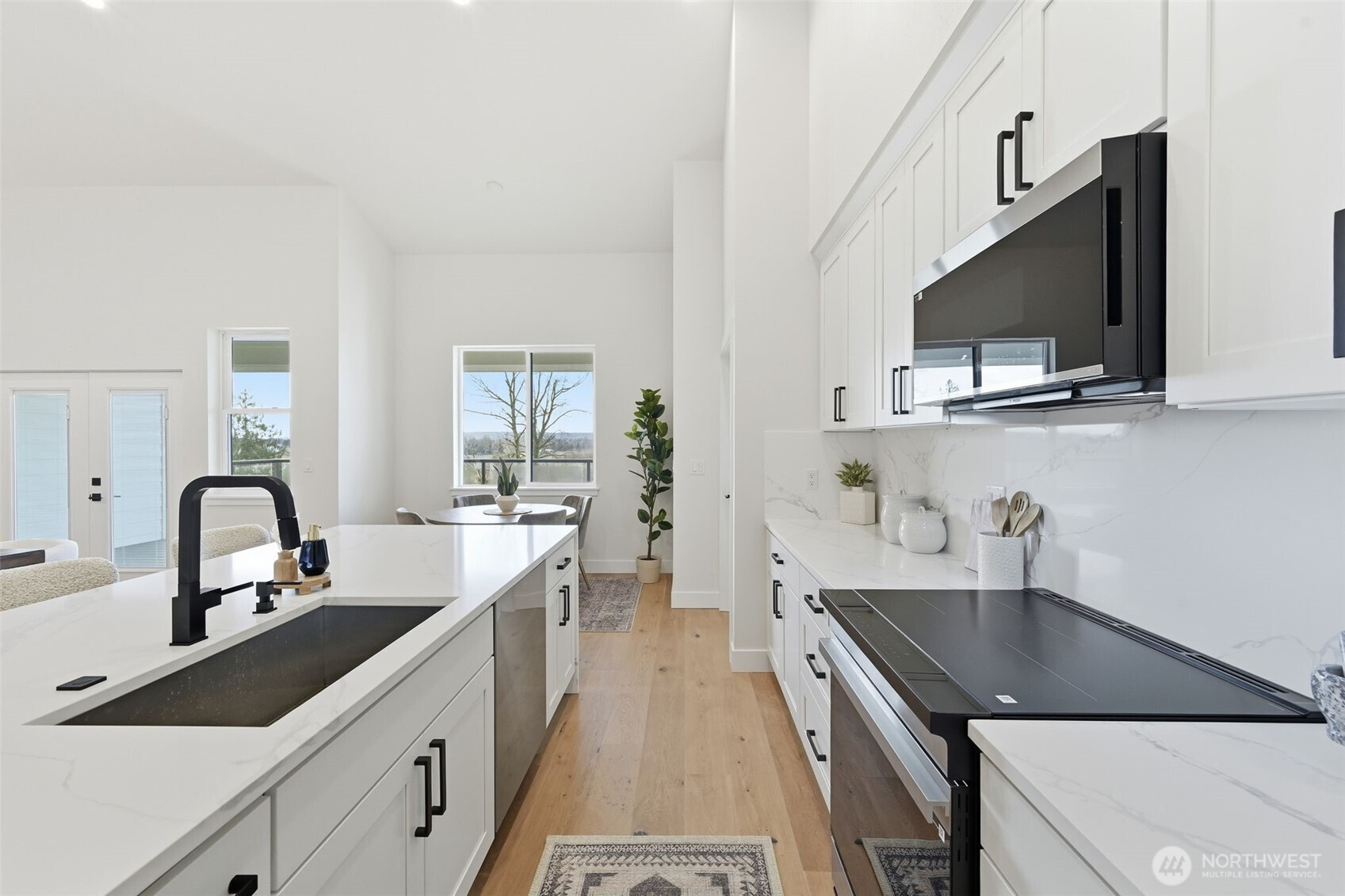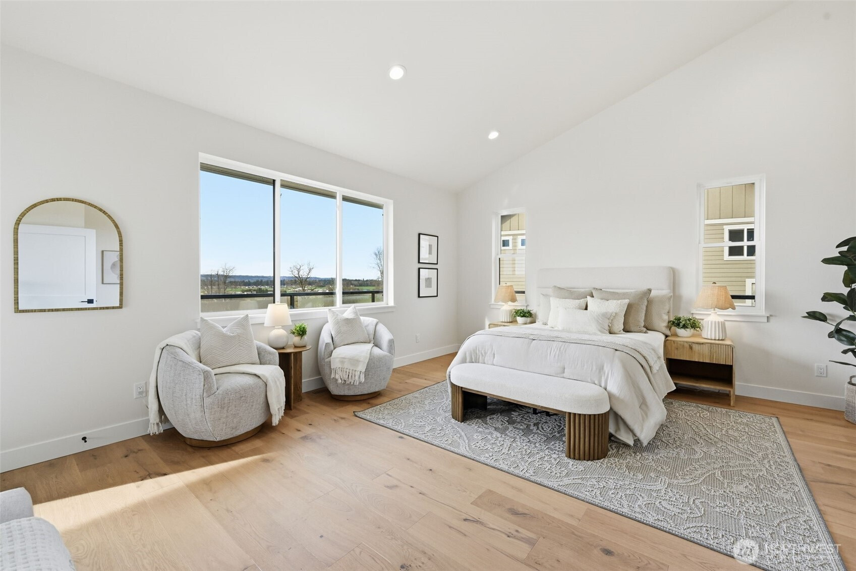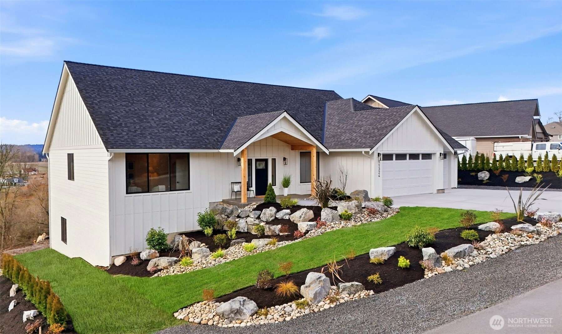 Enjoy comfortable luxury with stunning views in this thoughtfully built new estate, set on 1.4 private acres in a gated community. The main level features a no-step entry with 4 bedrooms and 2.75 bathrooms, including a spacious primary suite with a walk-in closet and a luxurious 5-piece bath. Vaulted ceilings and an open-concept layout create a bright, inviting space ideal for everyday living and entertaining. The kitchen features stainless steel appliances, a butler’s pantry/coffee station, and a wine cooler. The lower level includes a finished flex or exercise room, plus an unfinished 1,899 sq ft basement with a separate entrance, roughed-in for multi-generational living, or recreation space. Take in sunset views from the expansive deck overlooking the large backyard. Additional highlights include a private well with dual connections and a 3-car garage. Conveniently located near local amenities, shopping, and commuter routes, while offering a peaceful, private setting.