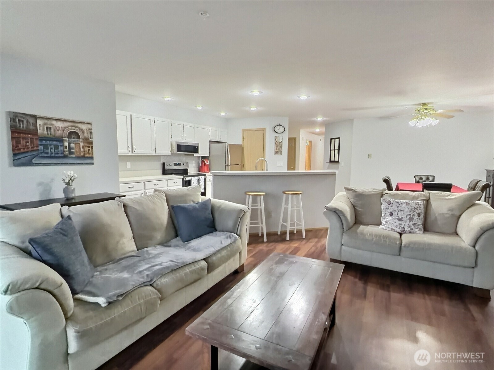 Lake life in The Lakeshore at Silver Lake! This move-in-ready, 3-bed, 2-bath end-unit offers: an open-concept layout filled with natural light, a cozy wood-burning fireplace, a private deck with peek-a-boo view of lake—perfect for relaxing and entertaining. Laminate hardwood floors throughout, quartz countertop, stainless steel appliances, a breakfast bar, pantry, and convenient in-unit laundry. Desirable 1-car garage + additional reserved parking space, on-site dog run, and a well-run HOA covering water, sewer, and garbage. Enjoy low-maintenance living just minutes from Silver Lake, Mill Creek Town Center, shopping, dining, parks, and major freeways and employers like Boeing, Fluke, and Korry. A rare opportunity—don’t miss it!