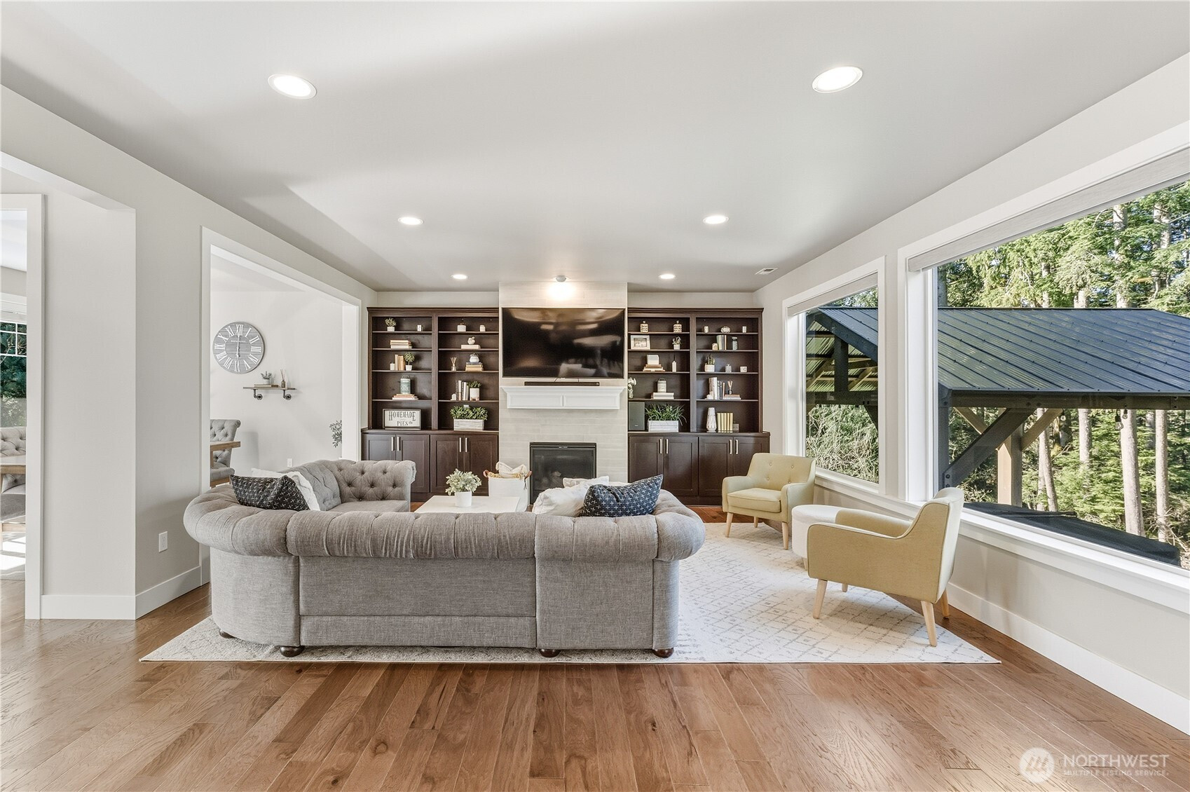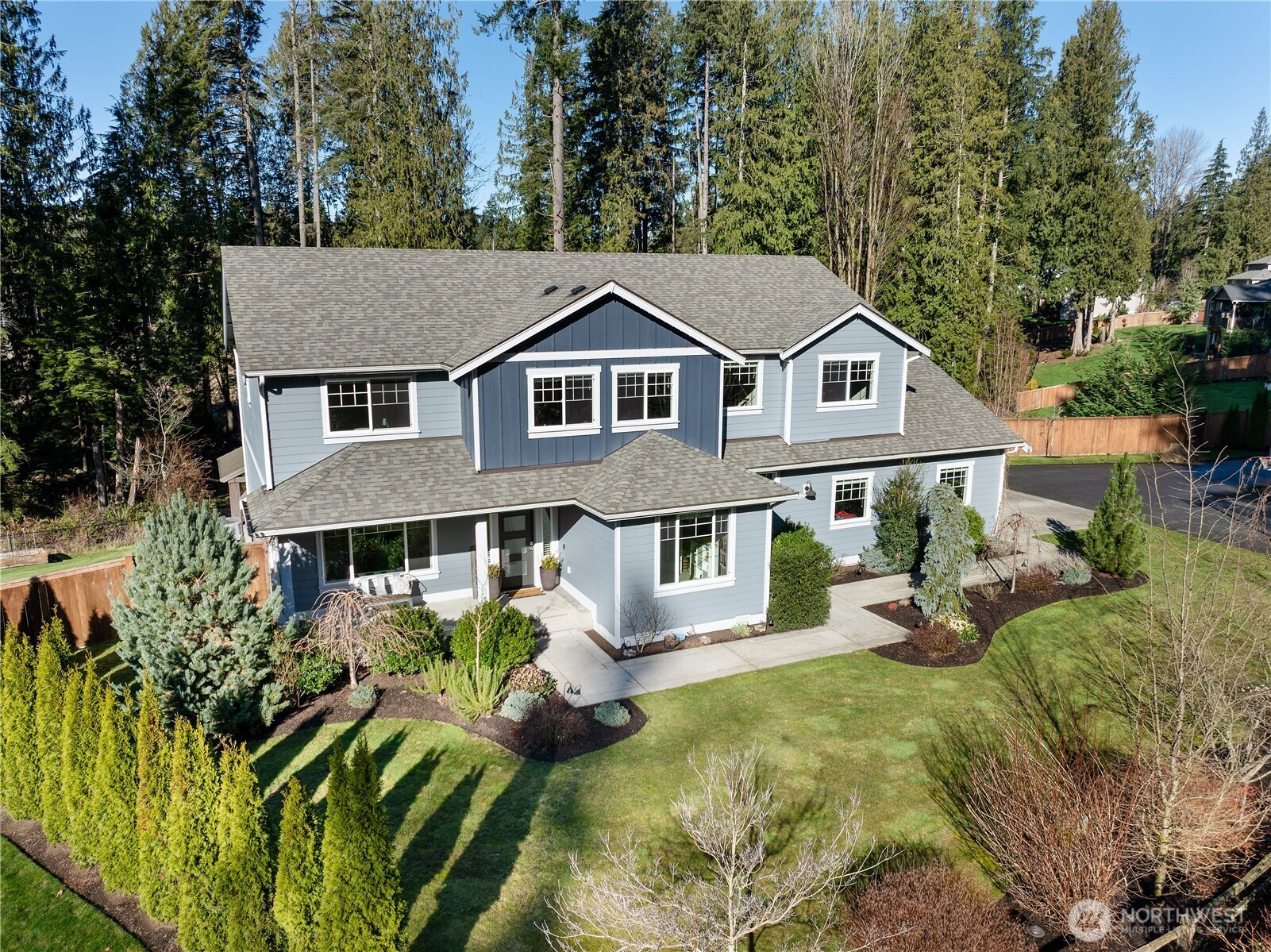 The best blend of privacy and community, this home feels like a true retreat, tucked down a private drive in the close-knit, gated Cedar Hollow community of just 25 homes. Set on a half-acre between protected greenbelts, the property provides rare tranquility with preserved wetlands both in front and behind the home. A meticulously maintained, one-owner residence, it has been thoughtfully upgraded, including professional landscaping with fruit trees and raised garden beds, Gemstone soffit lighting, Wi-Fi–enabled irrigation, backup generator hookup, and a secluded hot tub. Designed for effortless living and entertaining, the main level features a beautiful kitchen centered around a generous island and open layout extending to the living and dining rooms. The living area flows seamlessly to a covered deck with an outdoor fireplace for year-round enjoyment. Cozy fall evenings, summer dinners, and quiet mornings all overlook the expansive yard. A main-floor office and a functional mudroom connecting to the finished 3 car garage add everyday convenience. Upstairs, the serene primary suite includes custom closet built-ins and an attached bathroom, joined by 3 additional beds, laundry room, extra bath, and a versatile bonus room. Tucked away, the driveway offers ample guest parking, while the neighborhood features a scenic lake and tranquil walking trails. Just beyond, enjoy outdoor activities along the Skykomish River and hiking at Lord Hill, Wallace Falls, and Cherry Creek Falls.