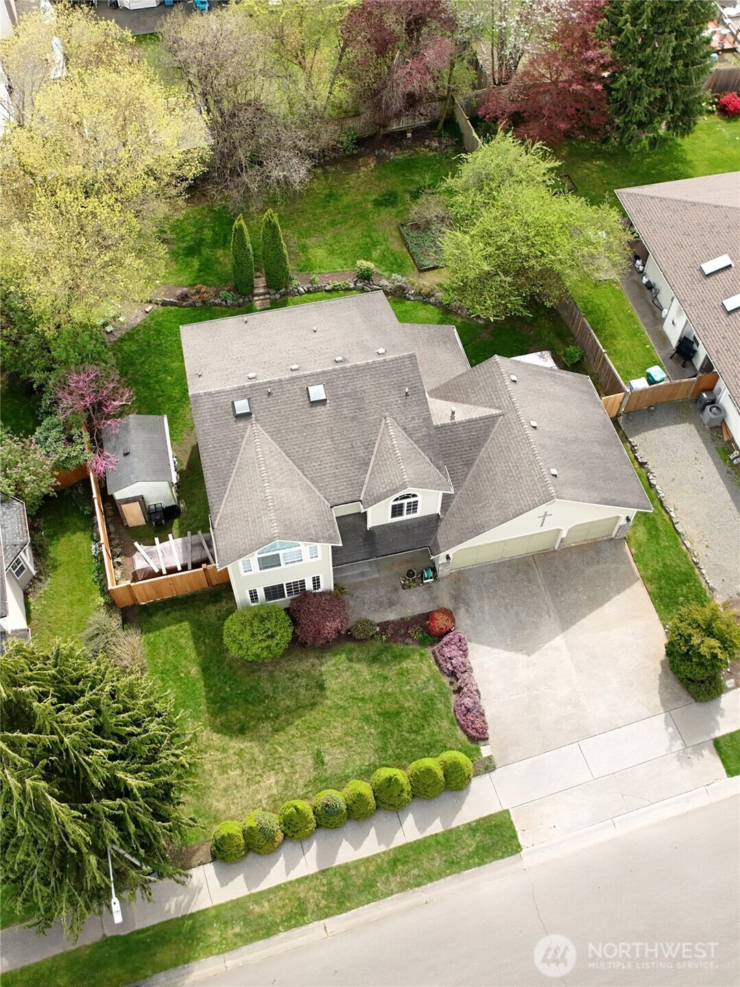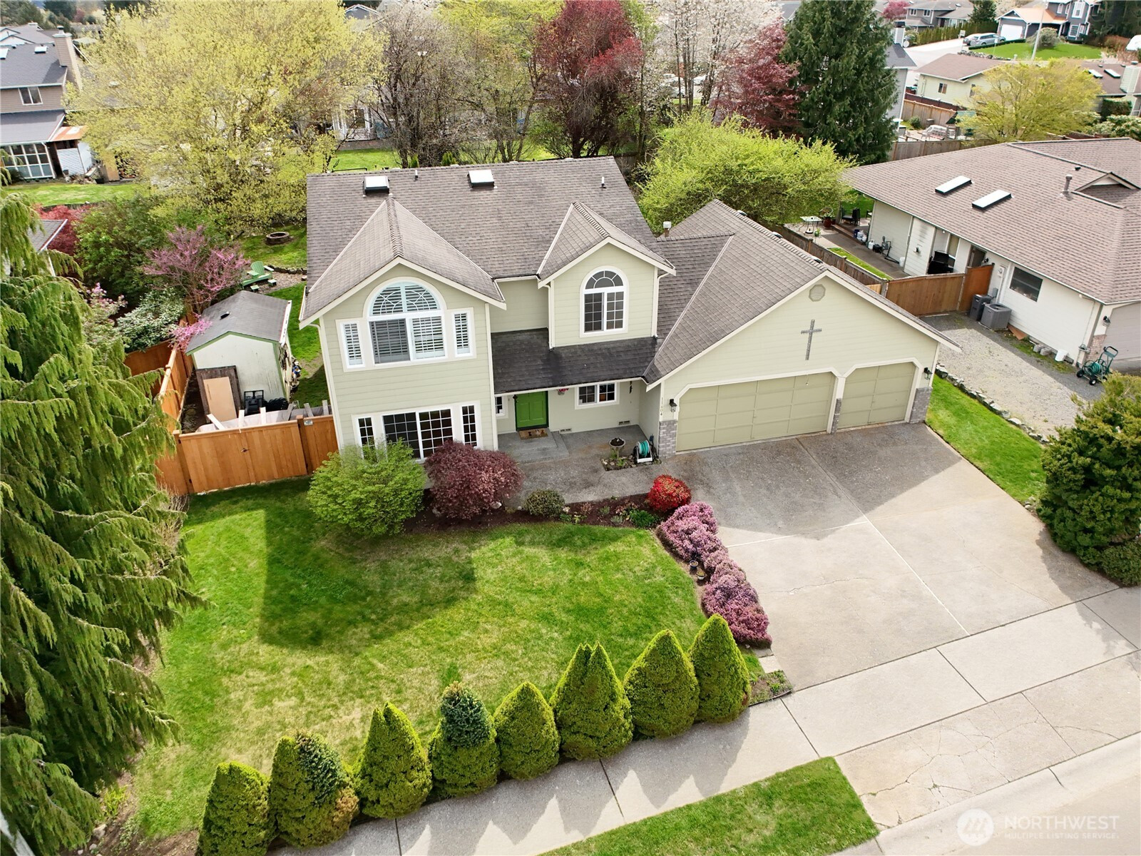 Enjoy mountain views from this beautifully updated 4-bedroom, 2.5-bath home. Featuring fresh interior paint, new flooring, and stylish molding, this home blends comfort with modern touches. The open floor plan includes remodeled kitchen, gas family room fireplace, formal dining and living room plus main floor office. The primary bedroom has vaulted ceilings, 5 piece en-suite and walk in closet. Three additional bedrooms, full bath and laundry room complete the second floor. The expansive, just shy of a 1/4 acre fully fenced backyard includes garden space, firepit, deck and a storage shed—perfect for outdoor living. A rare three-car garage adds convenience and versatility. Ideally located within the sought-after Lake Stevens School District. No HOA. Take advantage of the local parks, restaurants and closeness to all the fun lake activities.