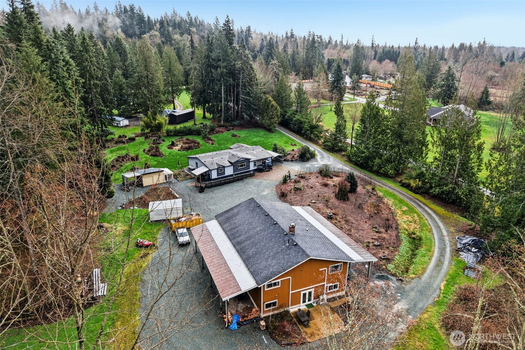 This property has it all - Rare combo of huge lot, nice house, incredible shop, large ADU, accessible location with private and quite location. Over 2 acres of gently sloping lot surround a charming well maintained 3 bed house, separate 1600sf garage and shop and detached 2 bed ADU. Not to mention storage outbuildings, covered RV parking, well cared for grounds/landscaping. Property is wired for generator. House has a large open layout. Large primary bedroom and luxurious attached bath including soaking tub! Detached ADU is around 1,000sf and has 2 generous bedrooms, living, kitchen, 2 bathrooms and large walk in closets. Both homes have A/C.