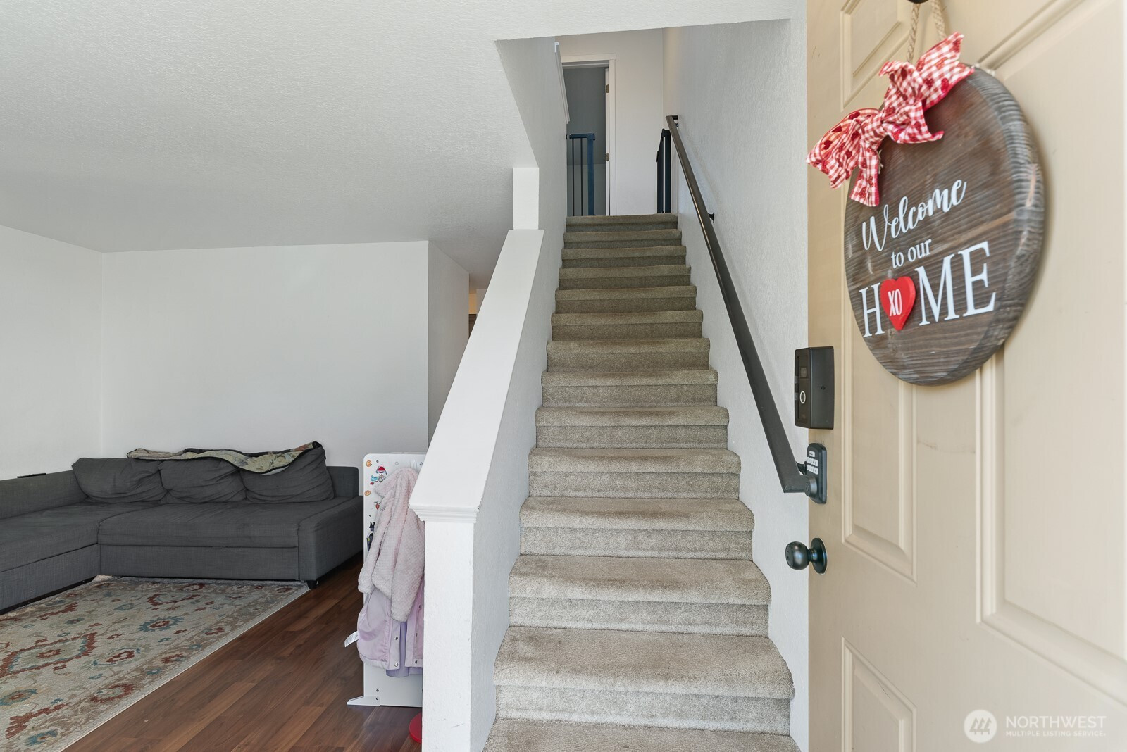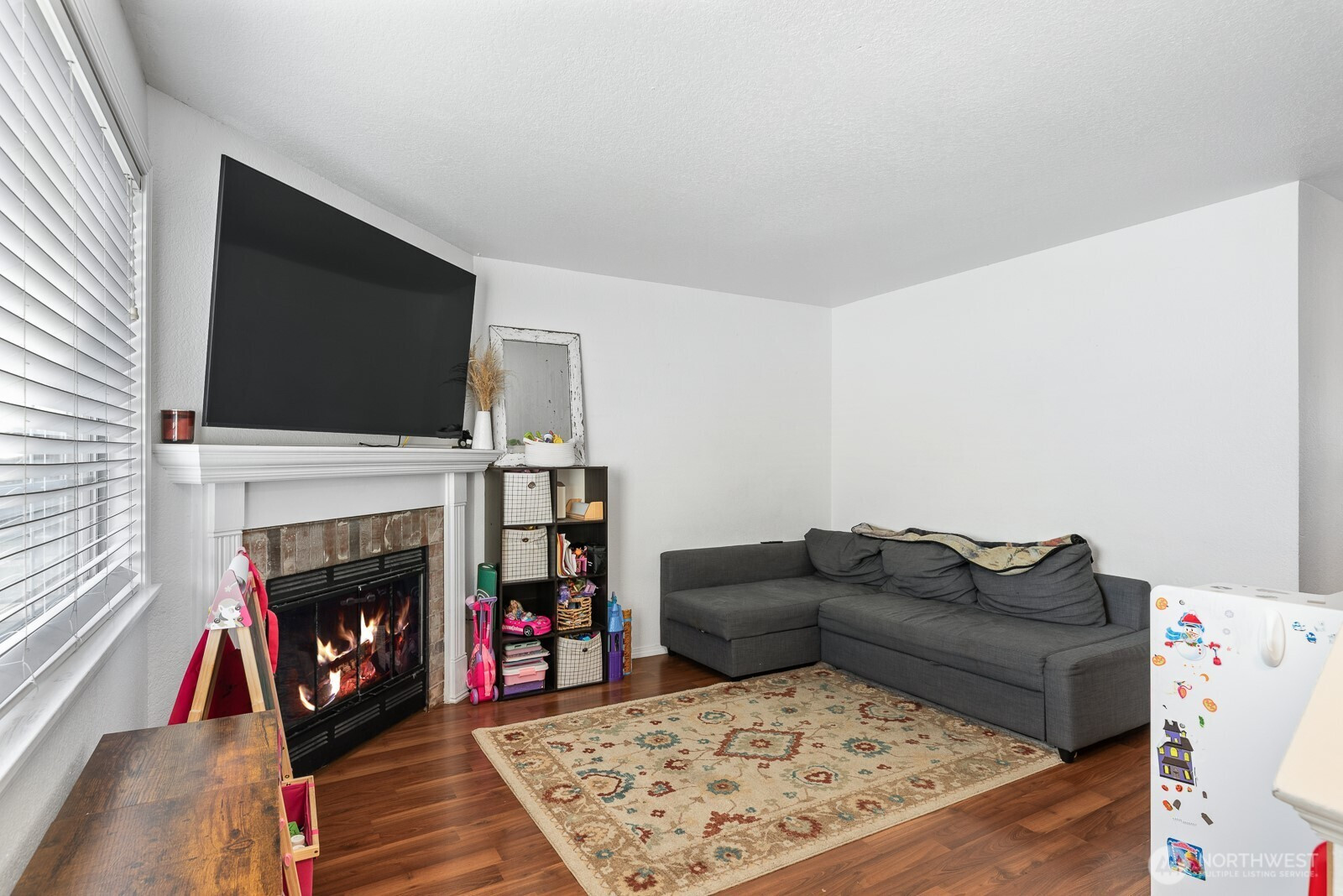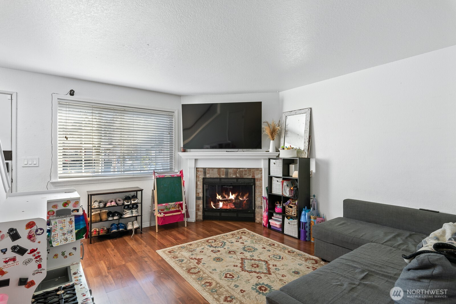 Beautifully updated private end-unit townhome offering rare privacy and functional outdoor space with a fully fenced patio, two storage sheds, and direct access to a large shared backyard area. The main level features a bedroom, hardwood floors, and a bright living room with a wood-burning fireplace, while the kitchen includes granite countertops and updated cabinetry. Upstairs offers two additional bedrooms with flexible use options. No rental cap provides flexibility for both owner-occupants and investors. Convenient I-5 access near shopping, parks, the Interurban Trail, Silver Lake, and McCollum Park, all within the Mukilteo School District. HOA dues include water, sewer, garbage, common area maintenance, two parking spaces including one covered, and mailboxes just outside the unit.