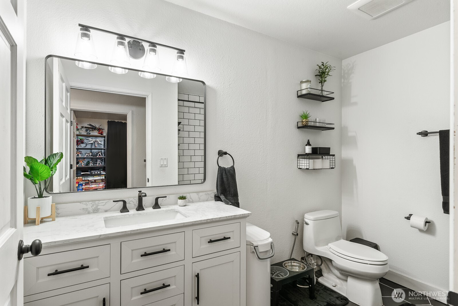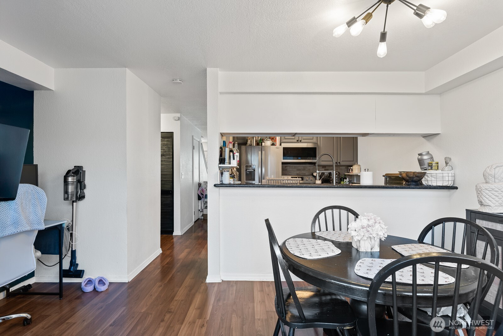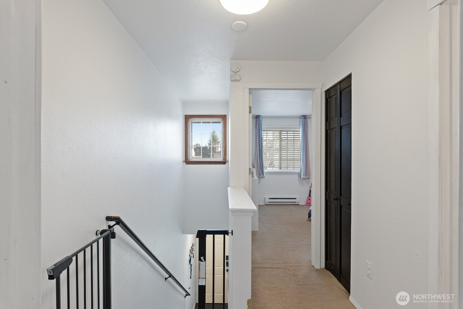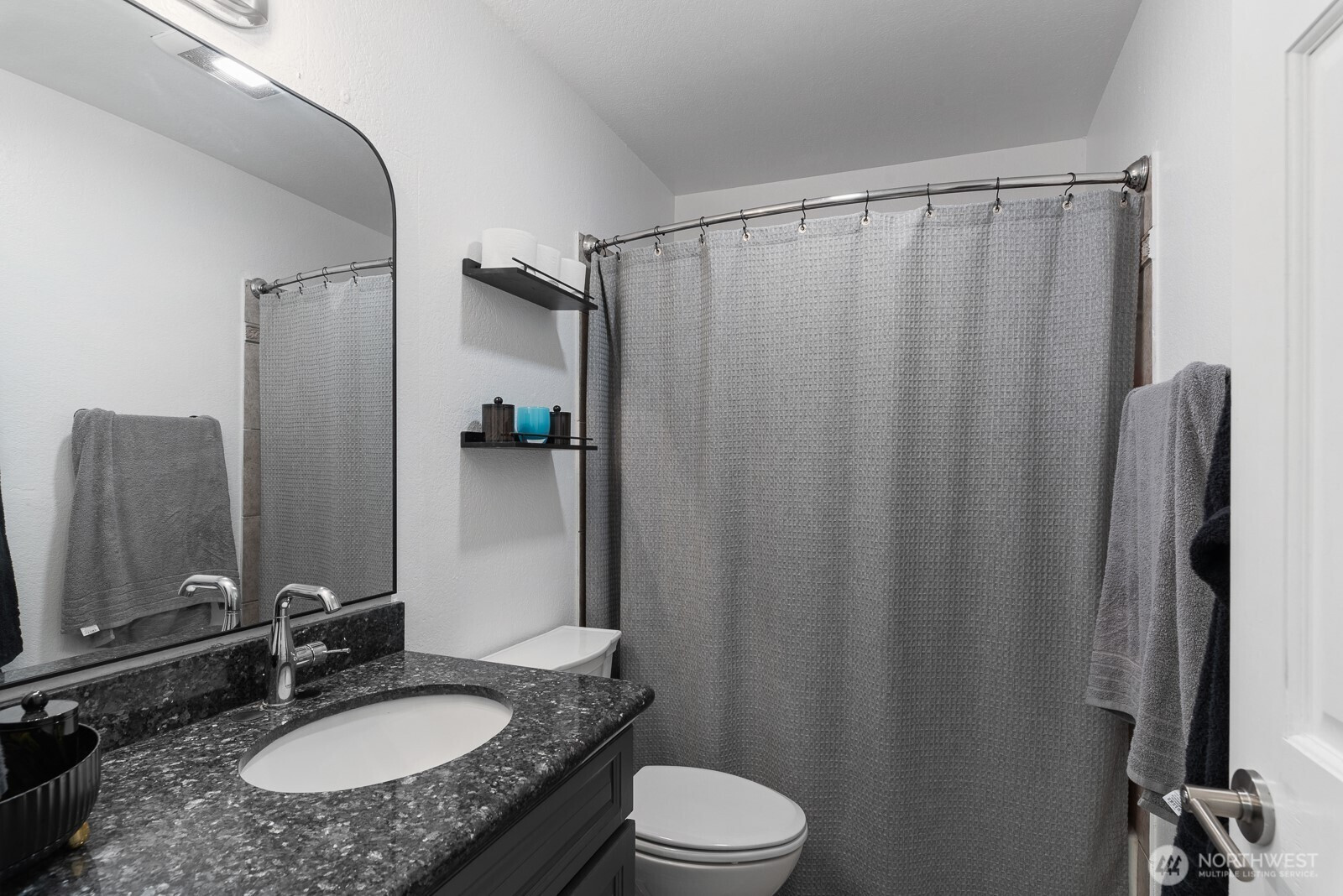 Beautifully updated private end-unit townhome offering rare privacy and functional outdoor space with a fully fenced patio, two storage sheds, and direct access to a large shared backyard area. The main level features a bedroom, hardwood floors, and a bright living room with a wood-burning fireplace, while the kitchen includes granite countertops and updated cabinetry. Upstairs offers two additional bedrooms with flexible use options. No rental cap provides flexibility for both owner-occupants and investors. Convenient I-5 access near shopping, parks, the Interurban Trail, Silver Lake, and McCollum Park, all within the Mukilteo School District. HOA dues include water, sewer, garbage, common area maintenance, two parking spaces including one covered, and mailboxes just outside the unit.