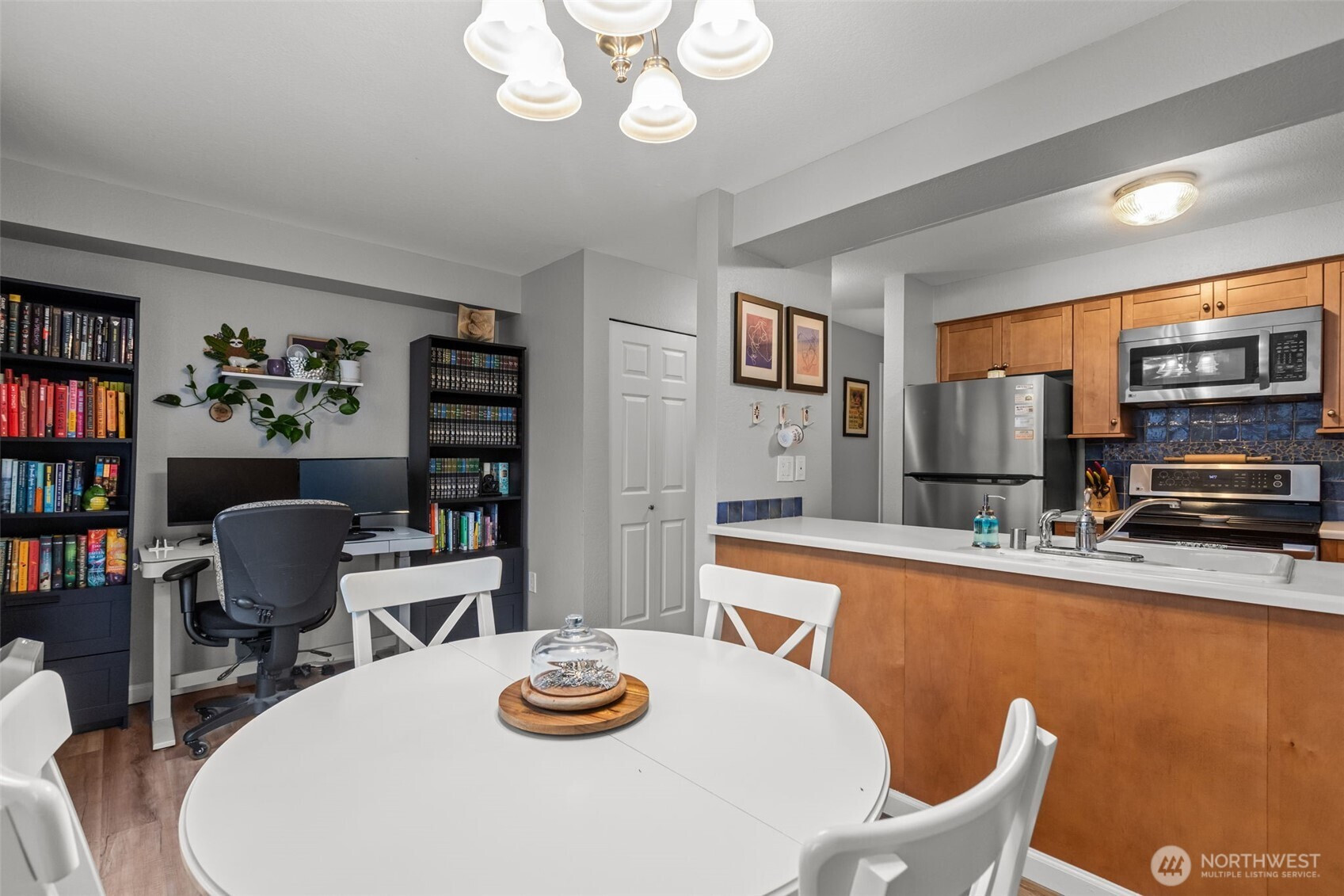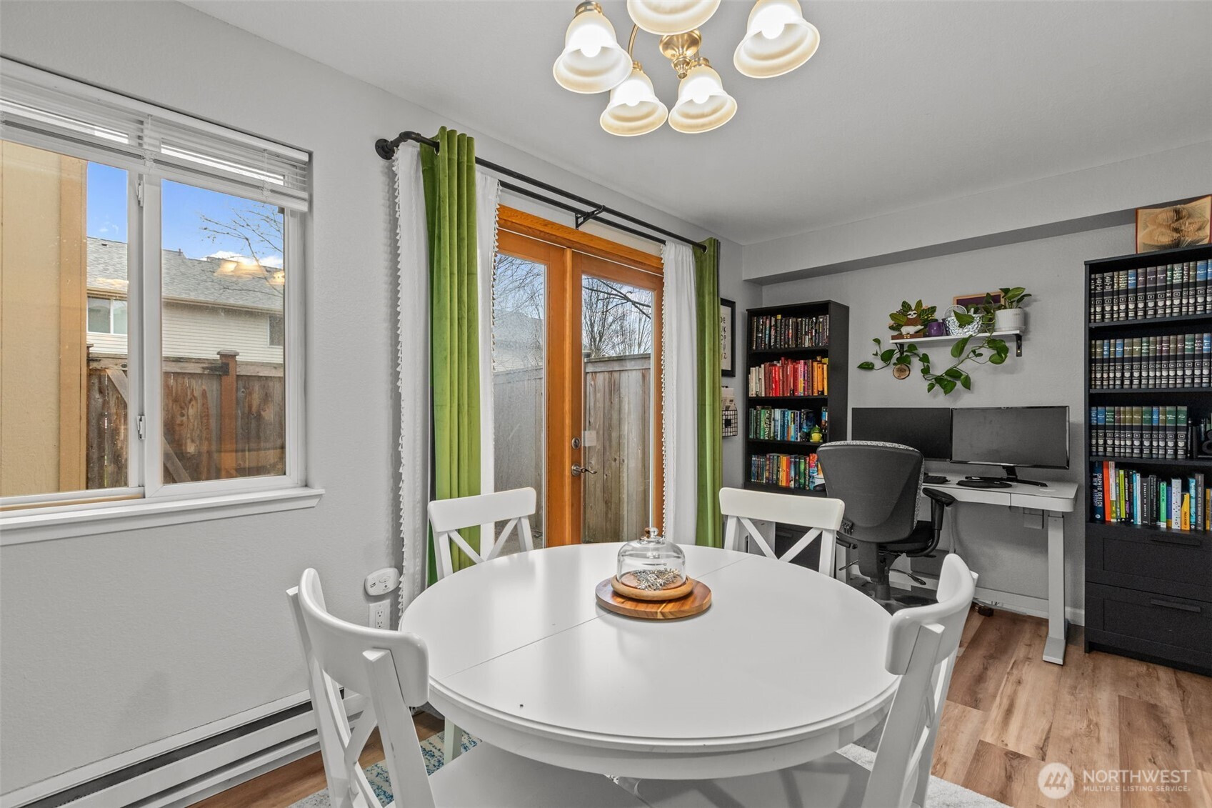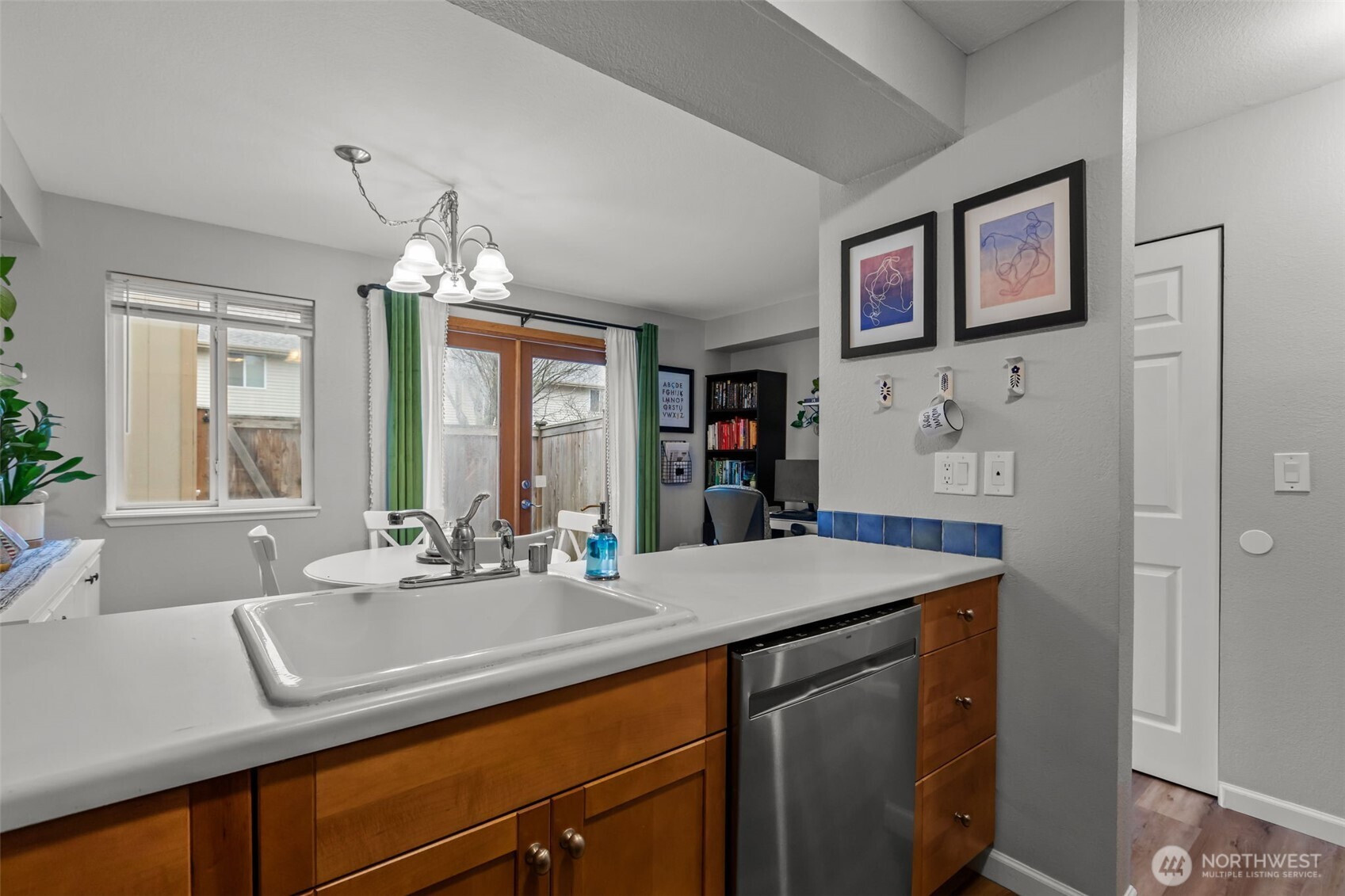 Charming, bright and happy 1 bd, 1.5 ba townhome! Comfortable living with thoughtful updates, plenty of natural light. Main level welcoming entrance, a modern kitchen, and .5 ba, French doors open to a perfect sized fenced patio yard with private storage shed. Main floor dining area offers space for home office desk setup. Inside, brand new carpet, newer flooring and paint make the home turn key move in ready. Large primary bd upstairs with tons of storage space and full bath. All appliances stay.Low HOA dues, no special assessment, secure gated community.Community includes playground, clubhouse, dedicated parking, and plenty of visitor spaces. Pets welcome, no rental cap!