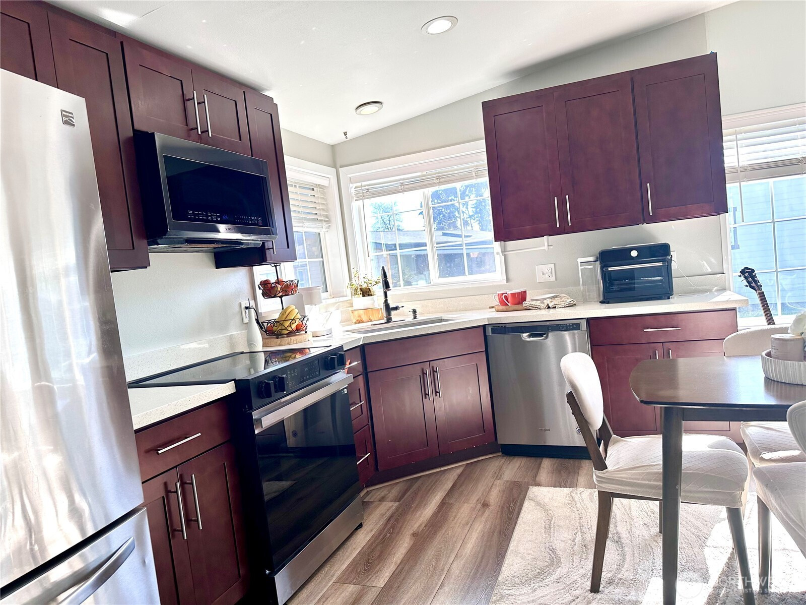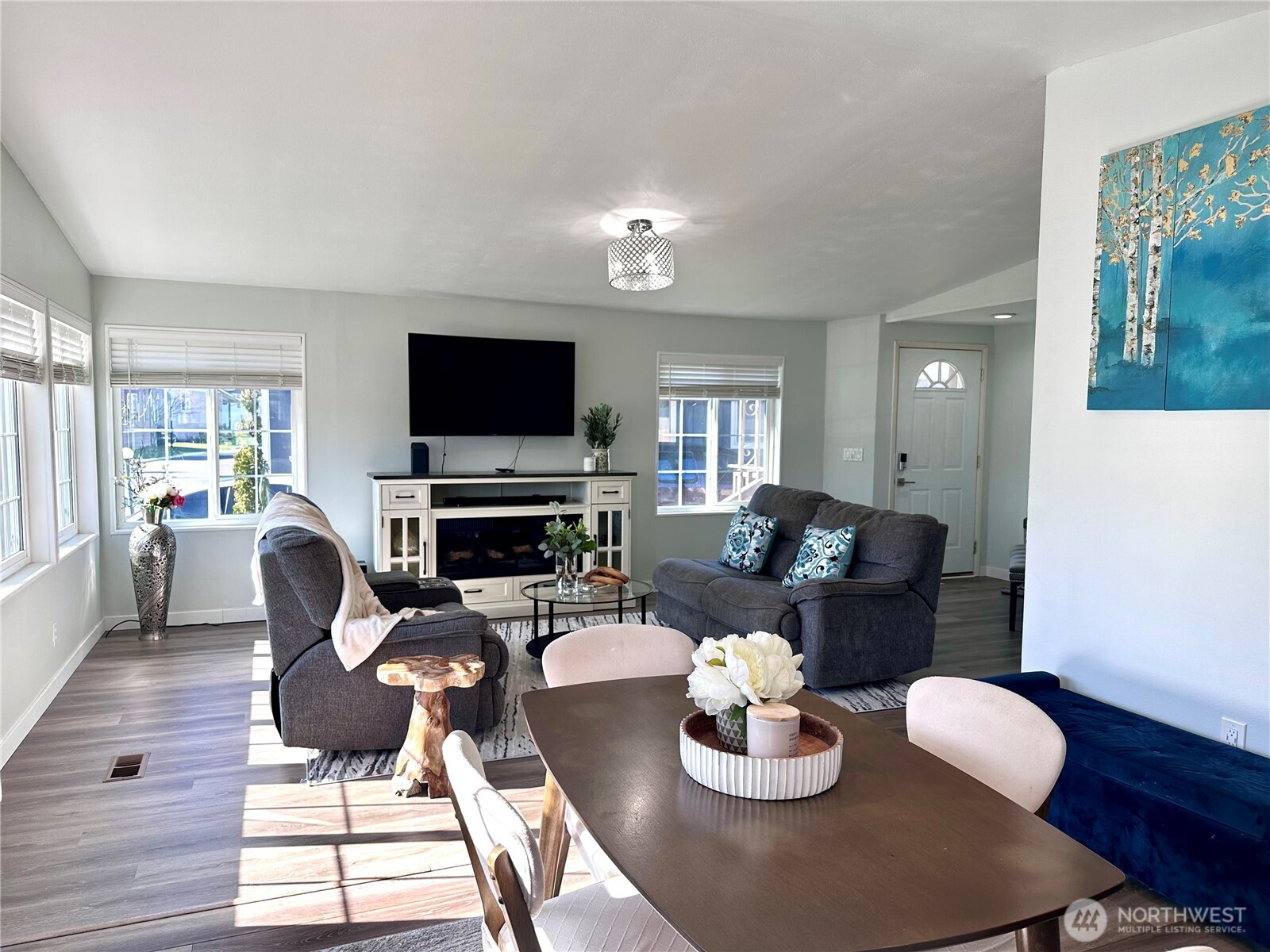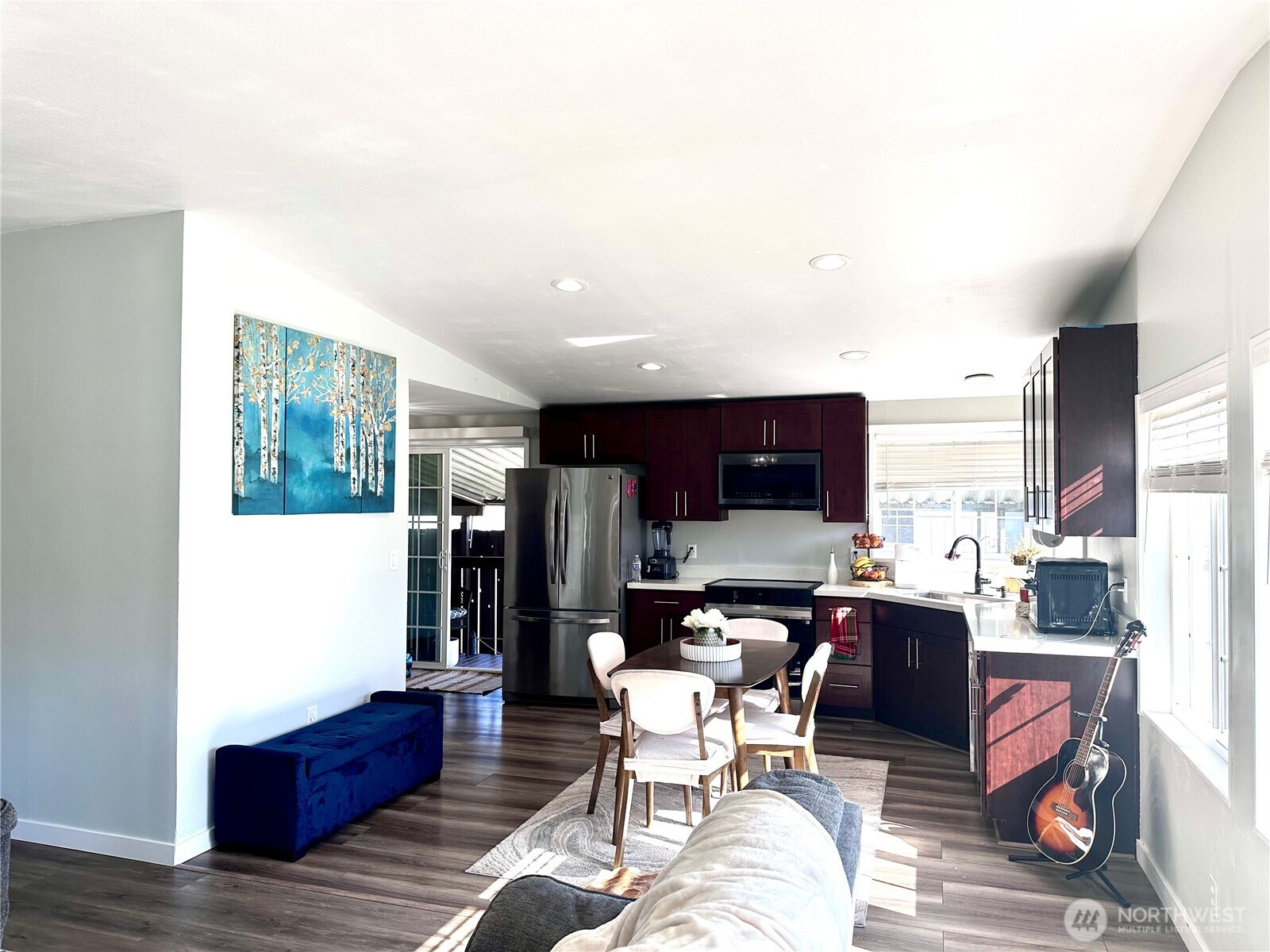 Welcome to this updated and charming 3-bedroom, 2-bath home located in a desirable Meridian Village, all-ages park. This inviting living room is perfect for everyday living, filled with natural light from large windows. Featuring new floors, a remodeled kitchen, and an open-concept design. All the appliances stay. The spacious living room invites you to relax, while the primary suite features a private remodeled bath with a walk-in shower for added comfort. Enjoy the convenience of a utility room, easy back entrance, 4 cars/cover parking , and extra storage in the backyard. The generously sized yard with mature plants and green grass creates a peaceful, cozy outdoor retreat. Ideally located just minutes from schools, parks, shopping, dining, and convenient commuter routes—this move-in ready home truly offers comfort, charm, and everyday convenience.