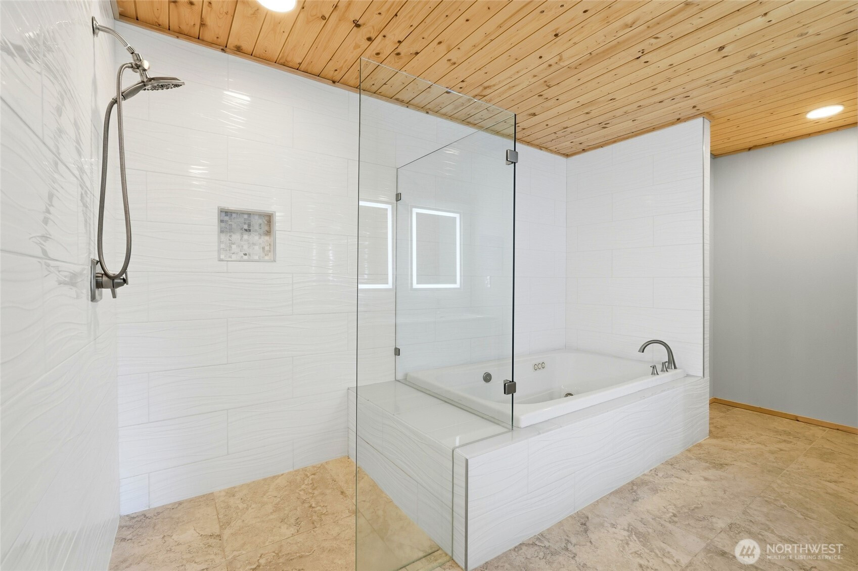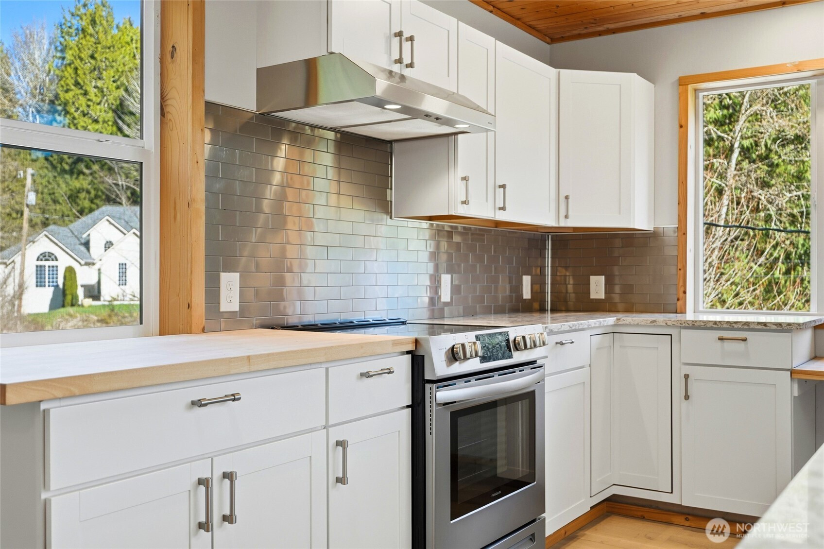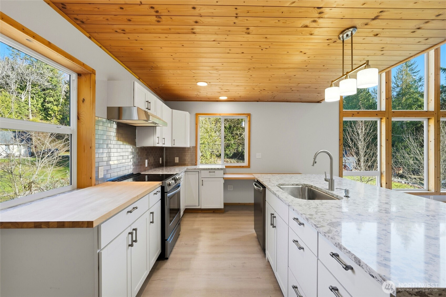 Welcome to this NorthwestContemporary Gem this beautifully remodeled 4-bedroom, 4-bath home on just over 4 acres, features a grand entry to a magnificent open room concept with vaulted wood finished ceilings and eye popping A-frame gable windows. The luxurious primary ensuite offers a serene soaking tub and an expansive walk-in shower, complemented by heated bathroom floors and push button lighting for vanity mirrors. Within the open room sits a new kitchen, this culinary retreat is second to none, complete with new cabinetry and quartz counters. Stroll downstairs to a brand-new lower level, complete with two bedrooms, a stylish 3/4 bath, plus cozy sitting area with electric fireplace. A massive garage awaits with high bay doors and apoxy floors. Included is a 1/2 bath for convienence. Don't miss the ample available storage within the garage. There is a community trail to the nearby beaches. Marysville School District, 10 minutes to I-5 and 15 minutes to Seattle Premium Outlet Mall. This is a must see property, too much to list, schedule your showing today.!!!!!