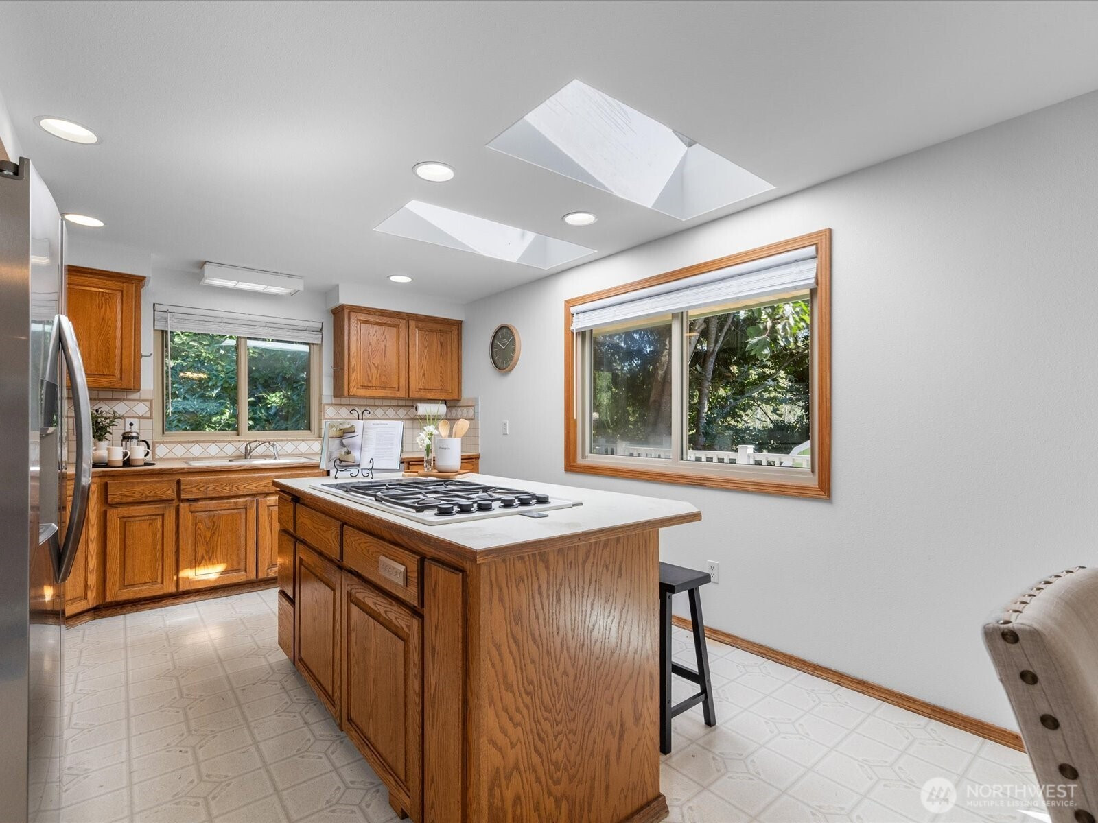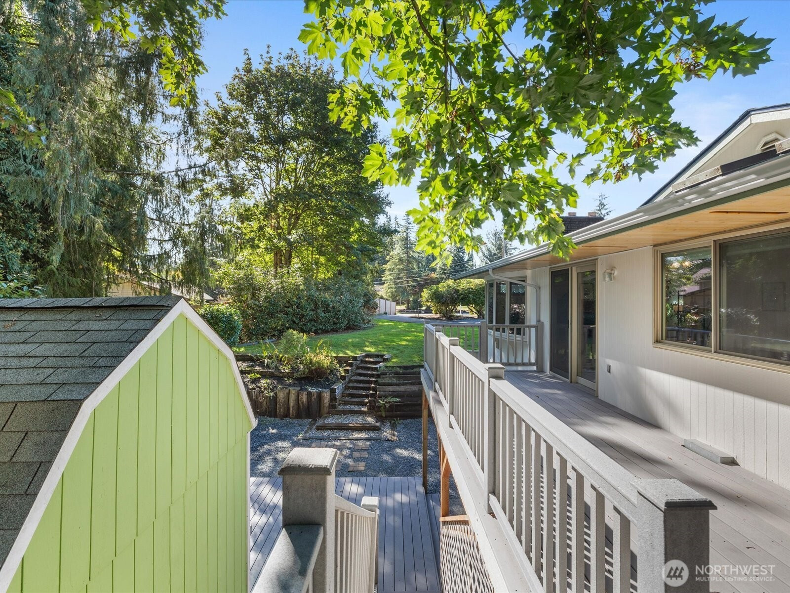 A peaceful wooded setting surrounds this 3-bedroom, 2.5 bath home, filled with natural light. Recent updates include new roof/gutters, interior & exterior paint, new carpet, plantation blinds, and upgraded insulation. Relax on the spacious, wrap-around deck overlooking the greenbelt or unwind in the interior steamroom. Living room, kitchen, two bdrms, laundry & 1 3/4 bath on main. Finished lower level offers family room, bedroom, ¾ bath, and walkout to side yard with private patio. Lge shed provides storage for all your outdoor gear. Huge 28,314 SF lot backs to greenbelt—quiet, private, and move-in ready.