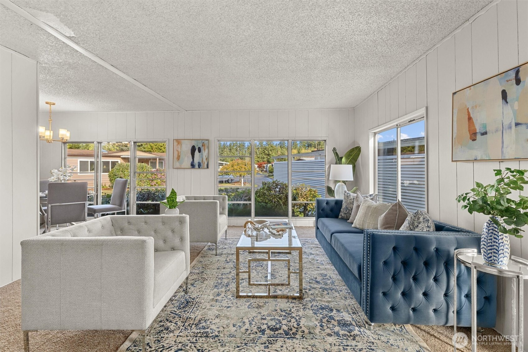 Welcome home to this beautifully updated 2 bedroom home in premier 55+ Silver Shores Mobile Home Park. Enter in to the light and bright living area featuring brand new flooring and paint throughout. Dining room off of the kitchen has built ins with a buffet top then flows into the living room with stunning floor to ceiling windows making even the most drab days filled with bright light! Spacious primary suite with ensuite vanity and closet area and separate water closet including walk in shower. Spare room perfect for a hobby room or library, Tv room? Includes tons of storage bringing many options to use this space. New Roof Coating! Wonderful clubhouse includes pool table, exercise room and a busy social calendar! Must see community!