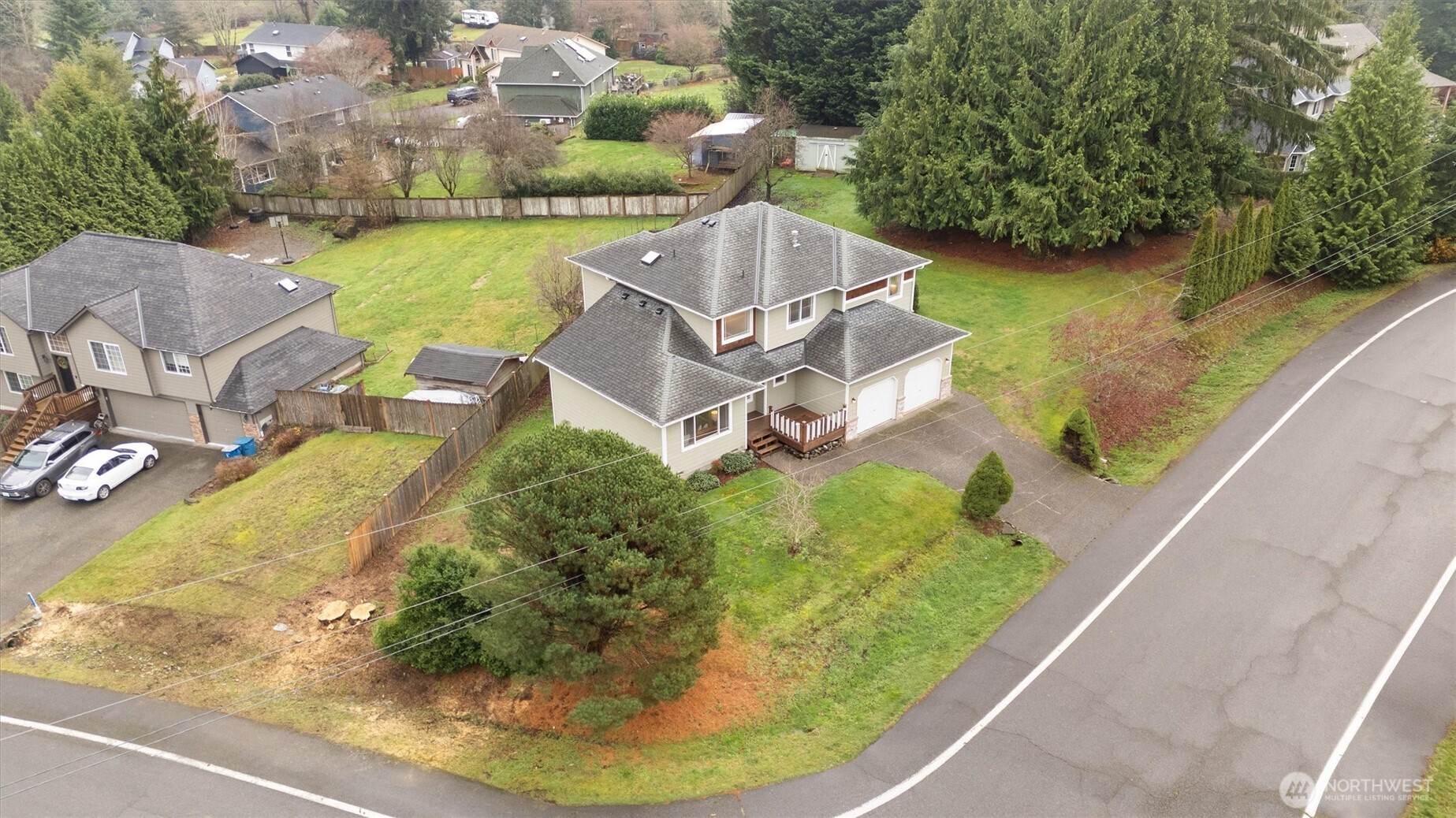 Welcome to this well-maintained two-story home on spacious corner lot with tranquil, park-like setting. Pride of ownership shines with fresh interior paint and a wonderful layout designed for comfort and flow. The gorgeous kitchen offers ample counter space, abundant cabinetry, pantry, and a versatile rolling bar. Opening to the eating area and family room featuring a cozy pellet stove & slider to back deck overlooking the beautiful yard. A large front living room w/ electric fireplace connects to formal dining. Upstairs you’ll find spacious bedrooms, including primary suite w/ walk-in closet & private bath. Approx. 6-yr-old 40-yr roof, new dishwasher, new furnace, in house vacuum and more! Close to shopping, dining & commute - A must see!