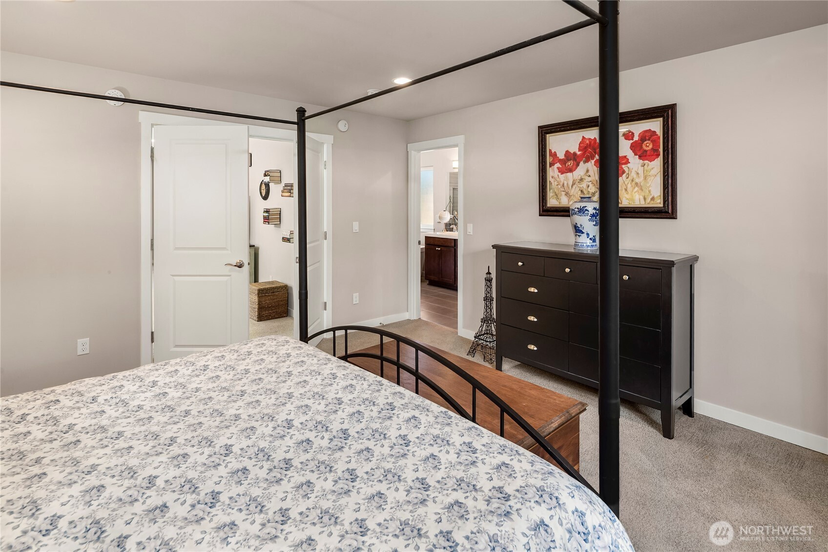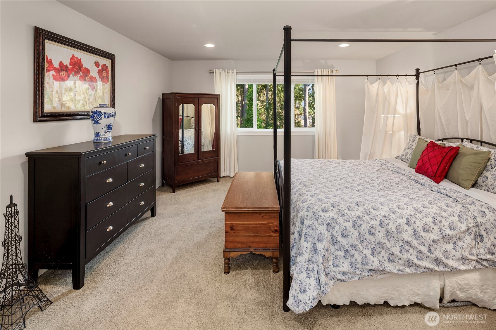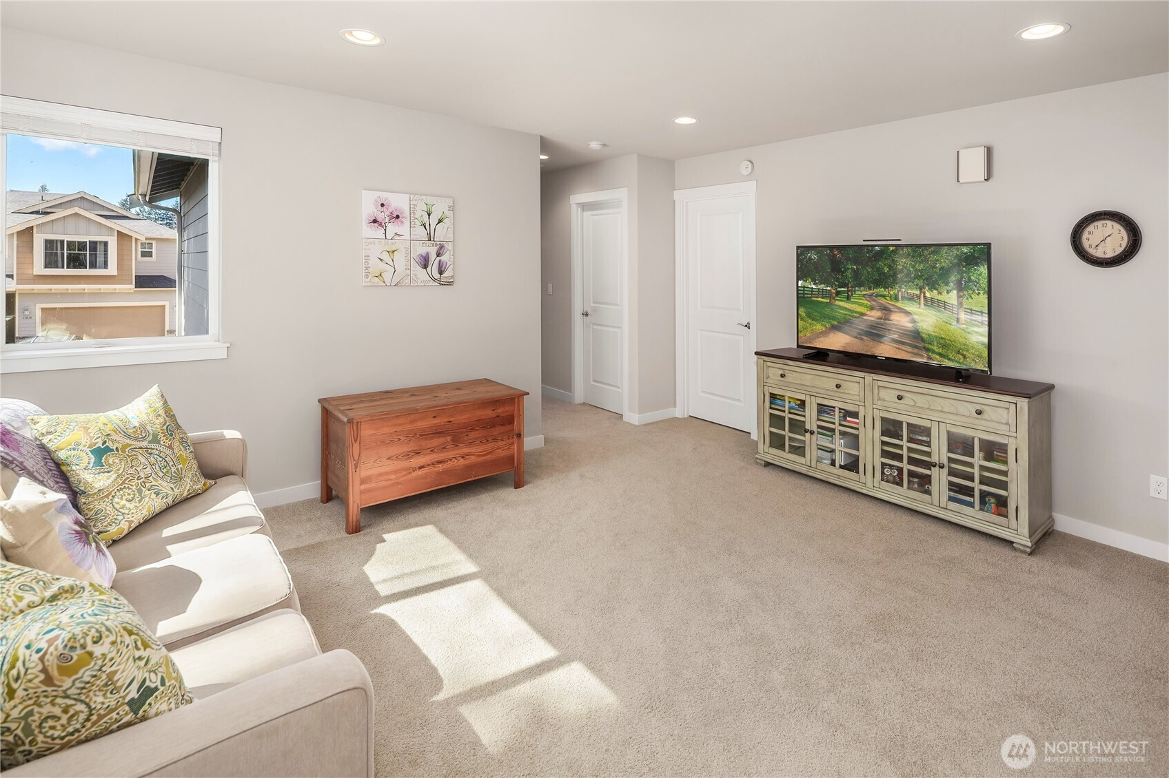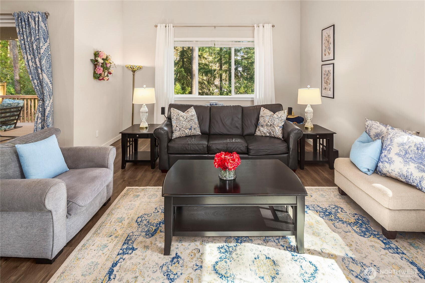 Welcome to Parkland Place (Silver Lake area)—where suburban sophistication meets a serene country vibe. Enjoy the best of both worlds — peaceful, scenic surroundings paired with modern design and amenities. Step outside to your own private retreat, featuring a tranquil, tree-lined backyard framed by mature evergreens and an elevated deck with enclosed railing—perfect for morning coffee or evening gatherings. Inside, discover a beautifully designed open floor plan with gorgeous, engineered wood floors. & great room w/vaulted ceilings. The spacious great room features vaulted ceiling, oversized windows, a custom bookcase with built-in shelving, and a sleek electric fireplace. The chef's kitchen ideal for both cooking and entertaining--offers warm mocha-colored cabinets, quartz countertops, an oversized island, stainless steel appliances, a gas range, and a walk-in pantry. Follow the captivating staircase to upstairs featuring 4 bedrooms & 2.75 BAs--The main level also includes a versatile bedroom (currently used as an office) and ¾ bath. Upstairs, enjoy a bright loft area, a luxurious primary suite, two additional bedrooms, and a full main bathroom—all designed for comfort and functionality. A two-car garage w/overhead storage racks, a fully fenced yard, located near local amenities and Mill Creek Town Center. This home offers the perfect blend of modern elegance, everyday convenience, and peaceful country charm. Come see why Parkland Place is the perfect place to call home!
