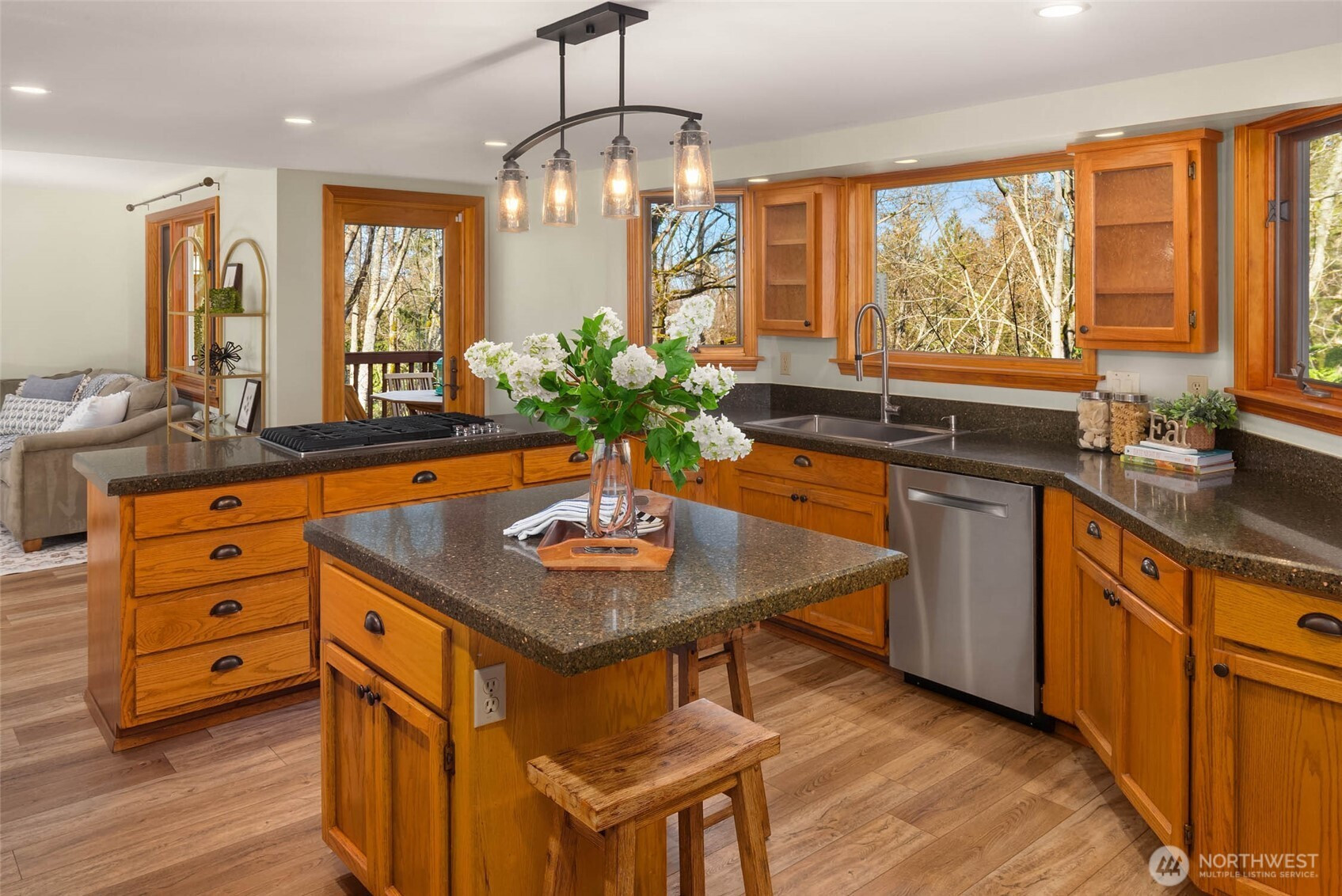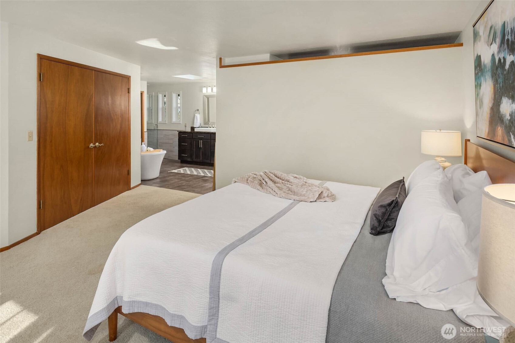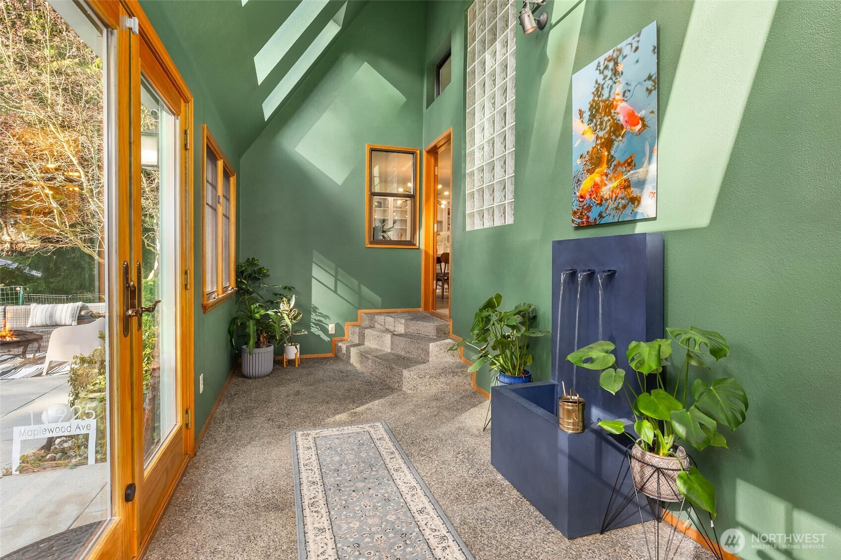 Tucked away on a private, lushly landscaped lot backing to protected greenbelt, this custom-built Edmonds retreat offers rare seclusion, architectural drama, & turnkey updates in the heart of 98026. A striking entry welcomes you into a breathtaking atrium w/ tranquil water feature & live greenery—an immediate sense of zen calm that sets the tone for the entire home. Soaring vaulted ceilings, expansive windows, & abundant natural light create an airy NW Contemporary feel, blending indoor and outdoor living seamlessly. Fresh interior paint, updated designer lighting, & refined finishes elevate every space. The open-concept layout offers ideal flow for entertaining, with generous living and dining areas framed by serene woodland views. The chef’s kitchen features ample prep space, quality cabinetry, and connection to gathering spaces perfect for hosting. Retreat to the luxurious primary suite showcasing an incredible spa-inspired bath—soaking tub, walk in shower w/ view, & a large walk-in closet with custom built-ins designed for elevated organization. Multiple bedrooms & flexible spaces support work-from-home, guest quarters, or media room potential. Enjoy ultimate privacy, peaceful nature views, & outdoor living surrounded by mature trees—yet just minutes to downtown Edmonds waterfront, parks, beaches, shopping, dining, & commuter routes to Seattle & the Eastside. A true Edmonds sanctuary blending luxury, tranquility, and lifestyle. You won't find a better option.