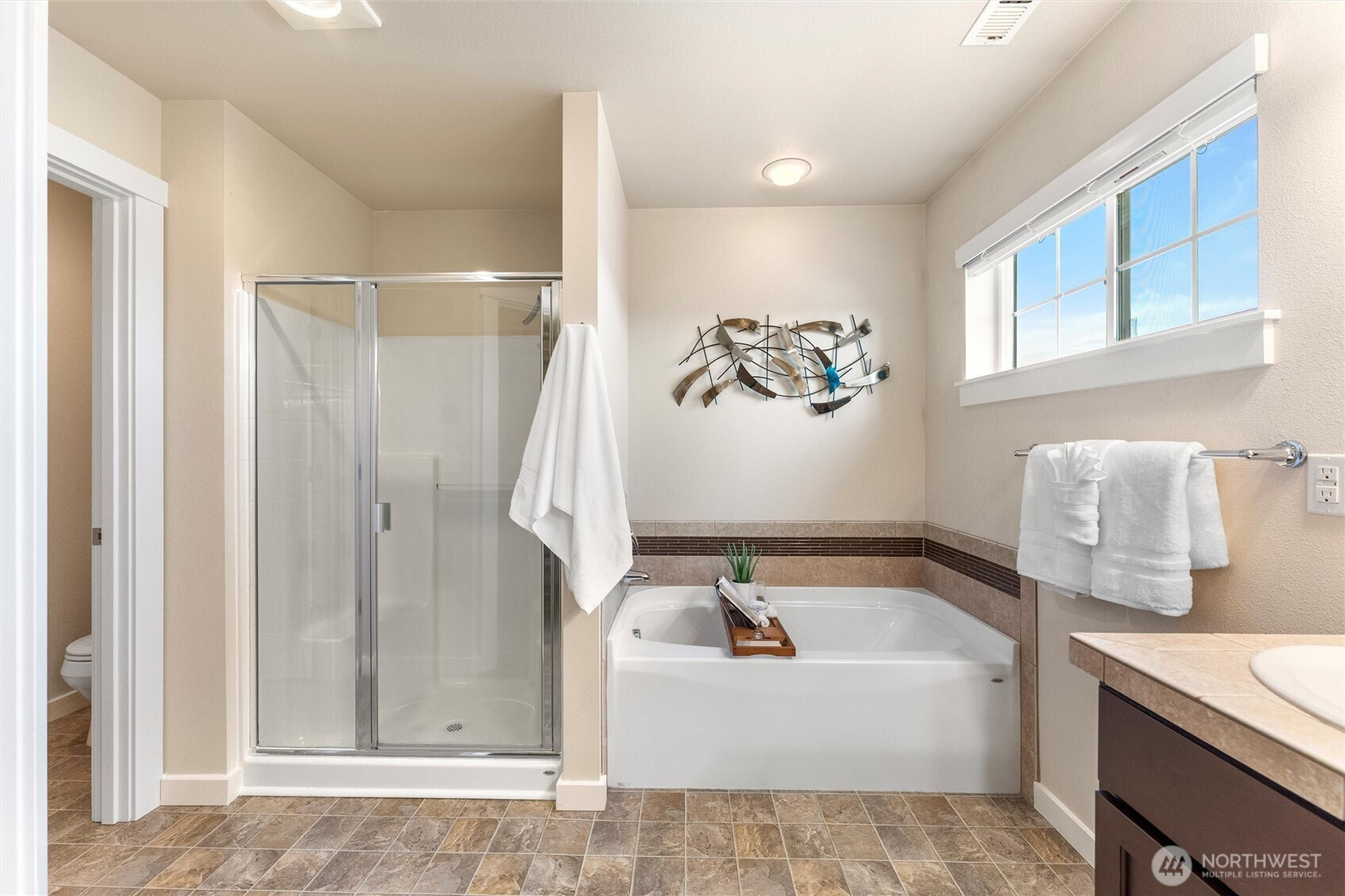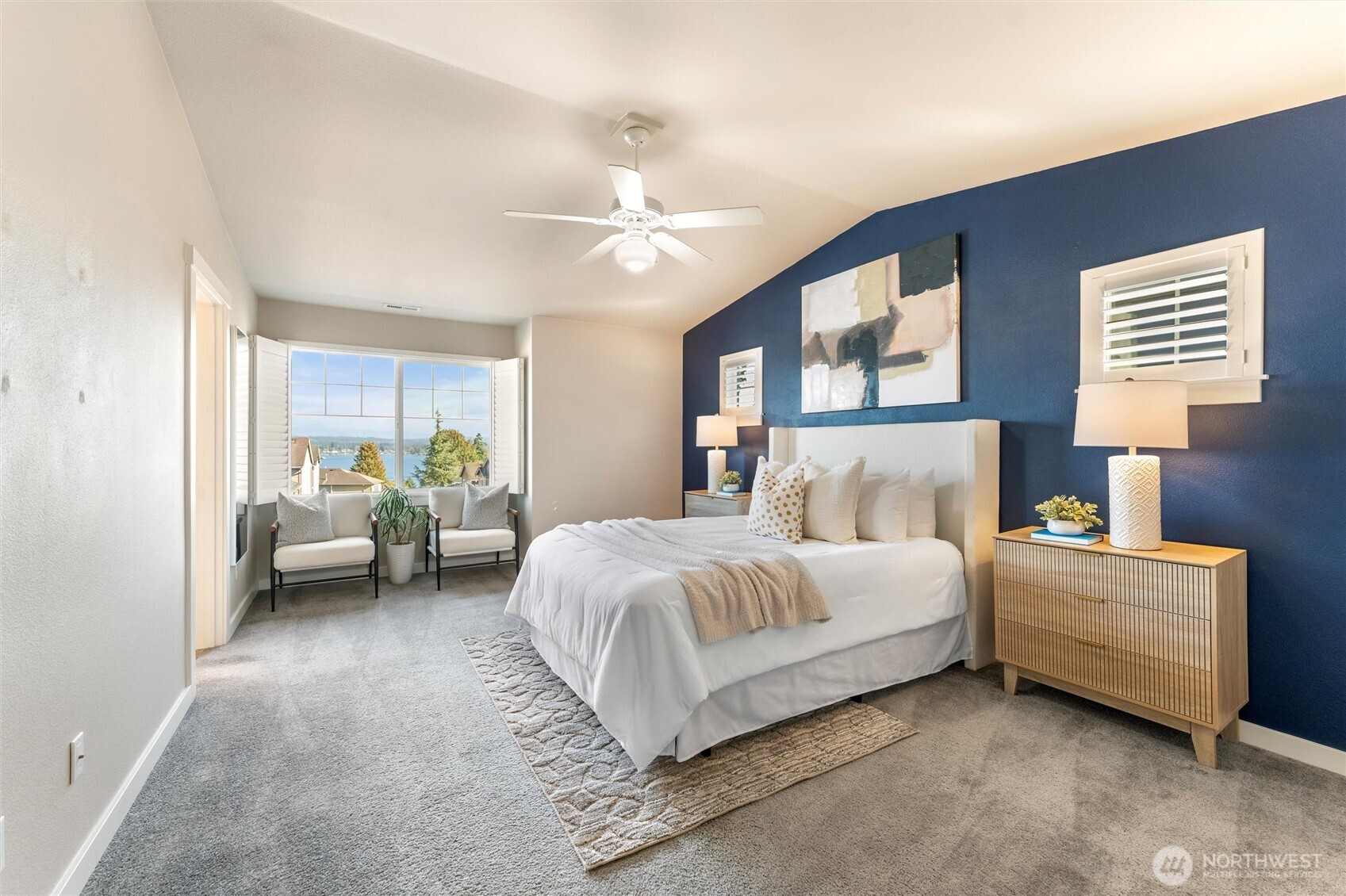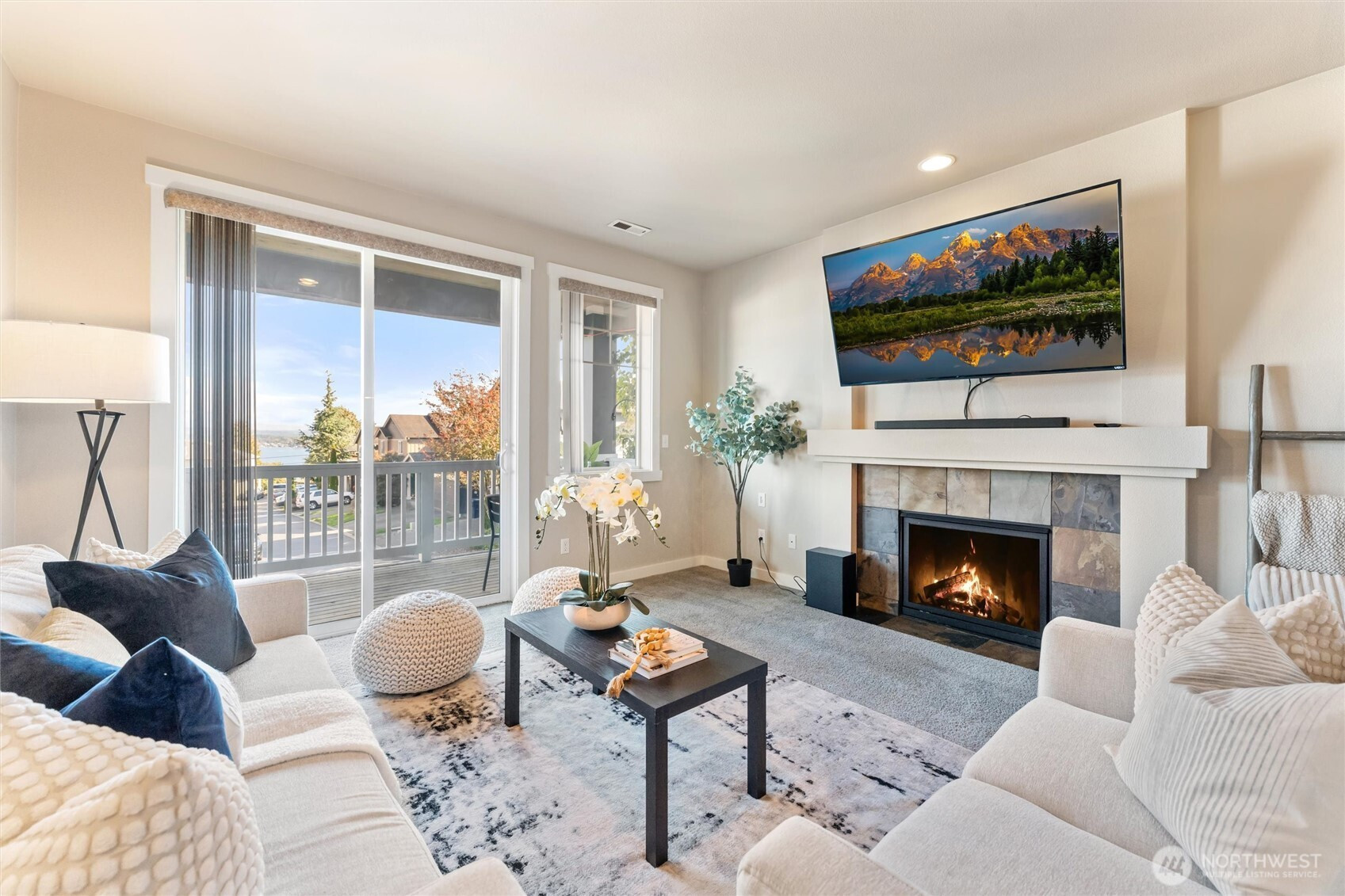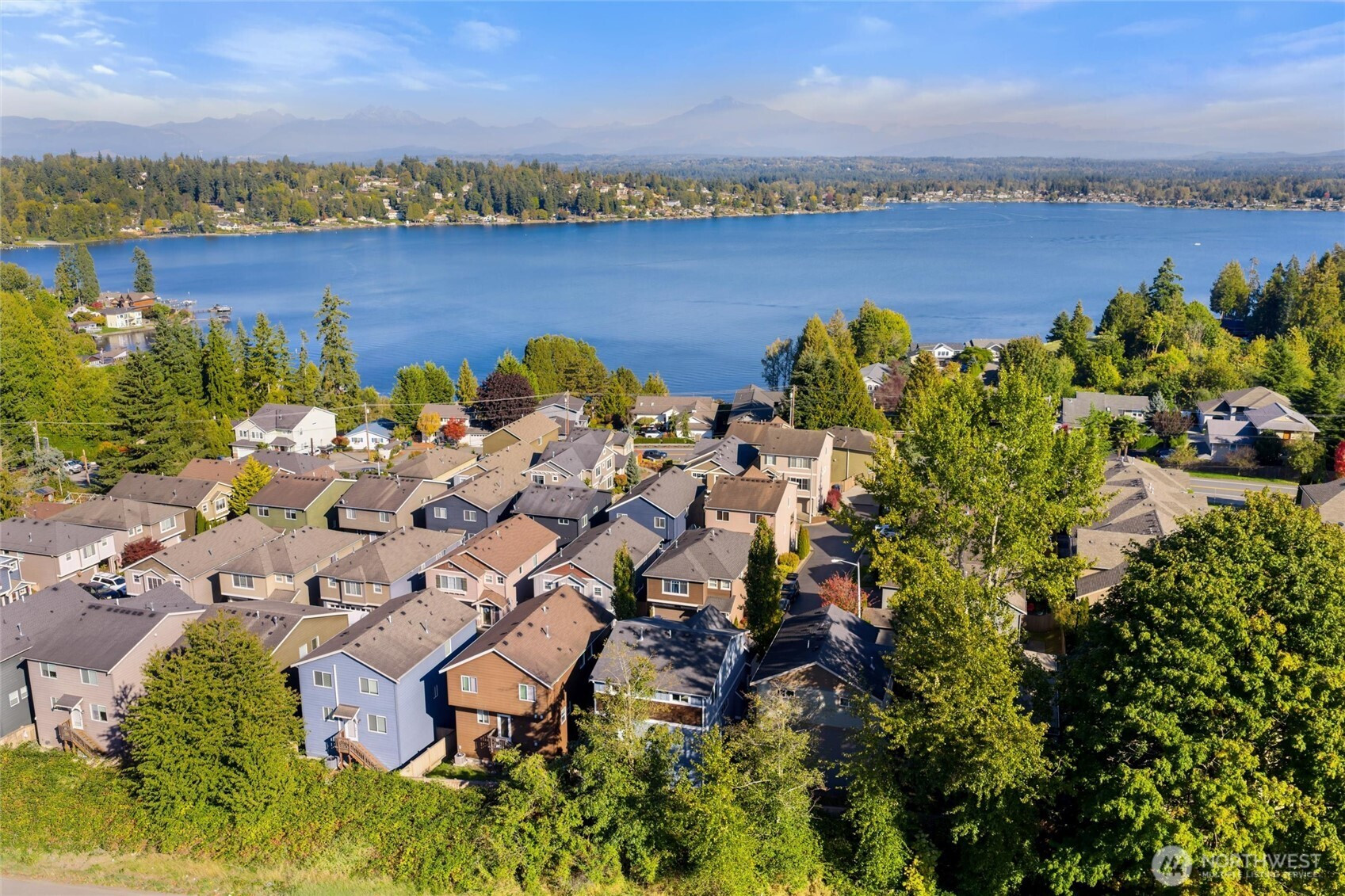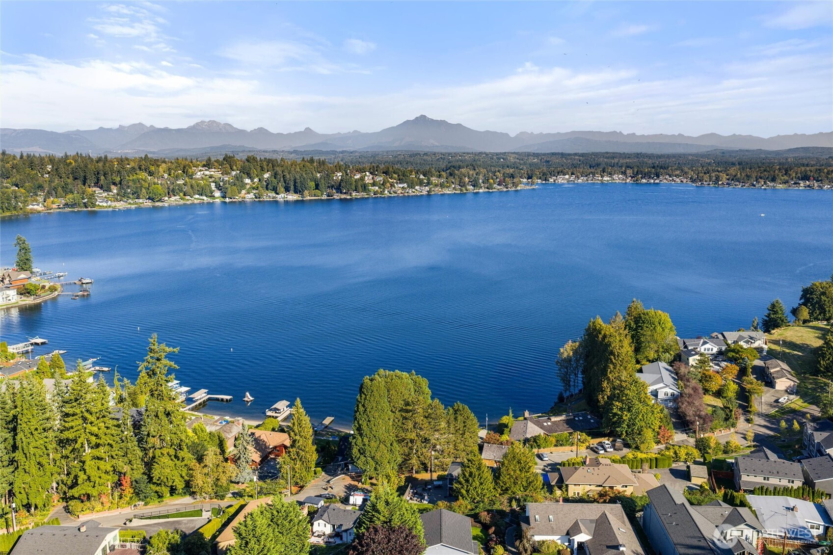 Start your day surrounded by STUNNING LAKE & MOUNTAIN VISTAS! This exceptional 3 bed/2.5 bath home combines refined comfort and style. The open great room with gas fireplace flows to a covered deck- perfect for morning coffee and sunrises over the lake. A chef’s kitchen features slab granite, full tile backsplash, stainless appliances & pantry. The primary suite offers lake views, spa-like 5pc-bath & walk-in closet w/organizer. Bonus large den/office on main, Landscaped backyard with main floor access & newer stairs. Central A/C, gas heat, and oversized garage with 315+ sq ft workshop/storage with newer outdoor access. IMMACULATE, PREINSPECTED, HVAC serviced and meticulously maintained just move on in! Moments to shops, dining & the lake!