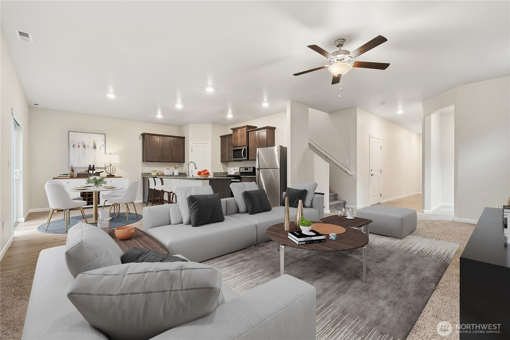 Modern design meets everyday convenience in this 5-bed 2.5-bath Sultan home in the Skyridge Estates community. The open-concept main floor offers seamless flow between living, dining, and a spacious kitchen with a large island and a walk-in pantry. A versatile main-level flex space adapts to work or play. Upstairs features all five bedrooms, including an owner’s suite with a walk-in closet and a 5-piece bath. Central A/C keeps the home cool and comfortable. The fully fenced backyard with a custom fire pit provides privacy and space to enjoy. Located near community parks, trails, and commuter options. This home is a Must See!