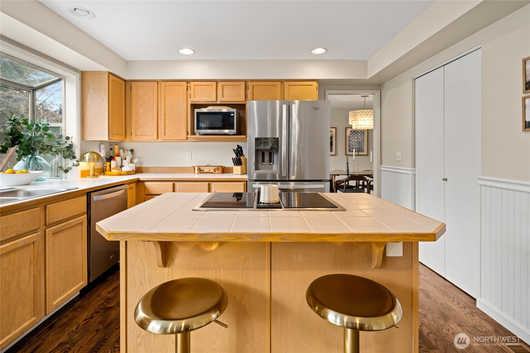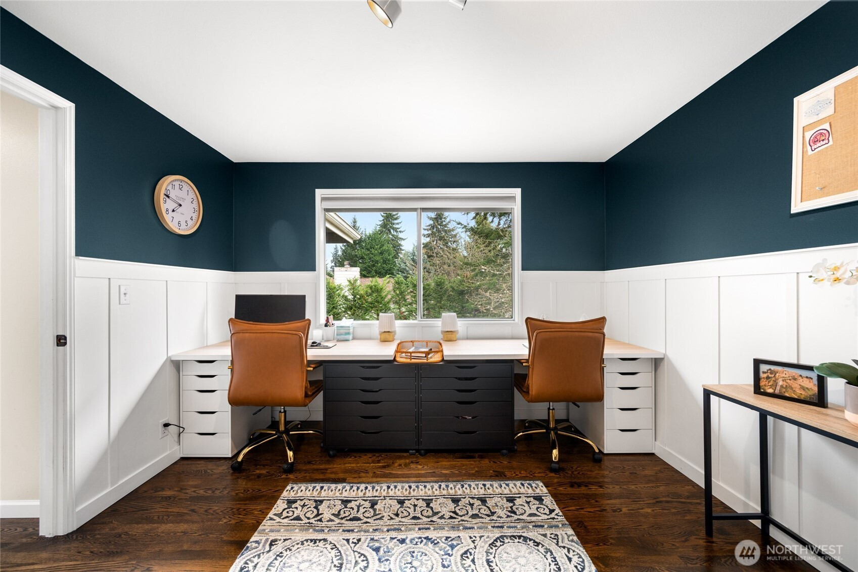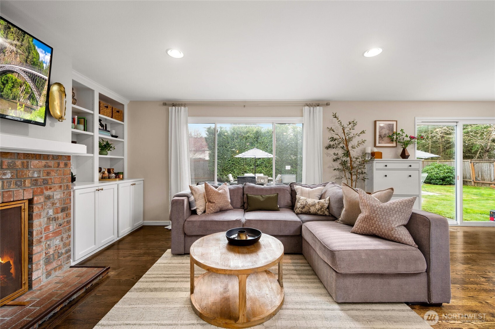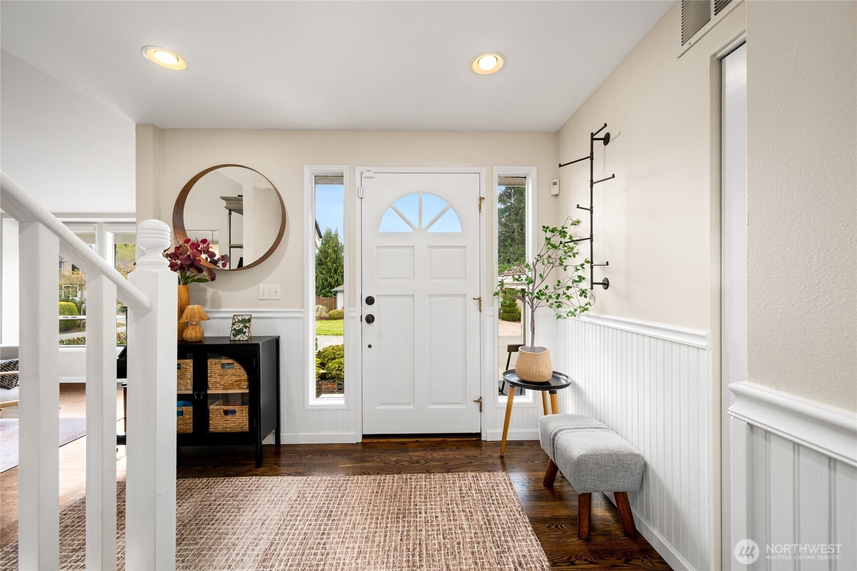 This beautiful 5-bedroom, 2.5 bath home sits on a prime corner lot in the Hearthstone neighborhood. Thoughtfully designed for both everyday living and entertaining. Inside, you’ll find rich hardwood floors throughout and abundant natural light that enhances the home’s open, airy feel. The traditional layout flows effortlessly into the main living areas, where newly added custom built-ins are featured in the family room, dining room with marble countertop, and laundry room that elevate both style and functionality. The spacious primary suite offers a peaceful retreat, complete with an en-suite full bath and a connected bedroom – perfect for a home office, nursery, or private flex space. Step outside and experience true indoor-outdoor living. The fully fenced backyard features a large entertaining patio and mature trees that provide exceptional privacy. A new large outdoor shed adds valuable storage for tools, gear, or seasonal items. Additional highlights include a new water heater, presidential roof, and newly added attic access with flooring for convenient extra storage. The double car garage offers high ceilings and room for a workspace and storage. The Hearthstone neighborhood features nearby walking trails, beautiful ponds and multiple playgrounds, this home offers it all. Just minutes from Silver Lake, Mill Creek Town Center, parks, and easy access to Snohomish, Everett, I-405 and Hwy 9.