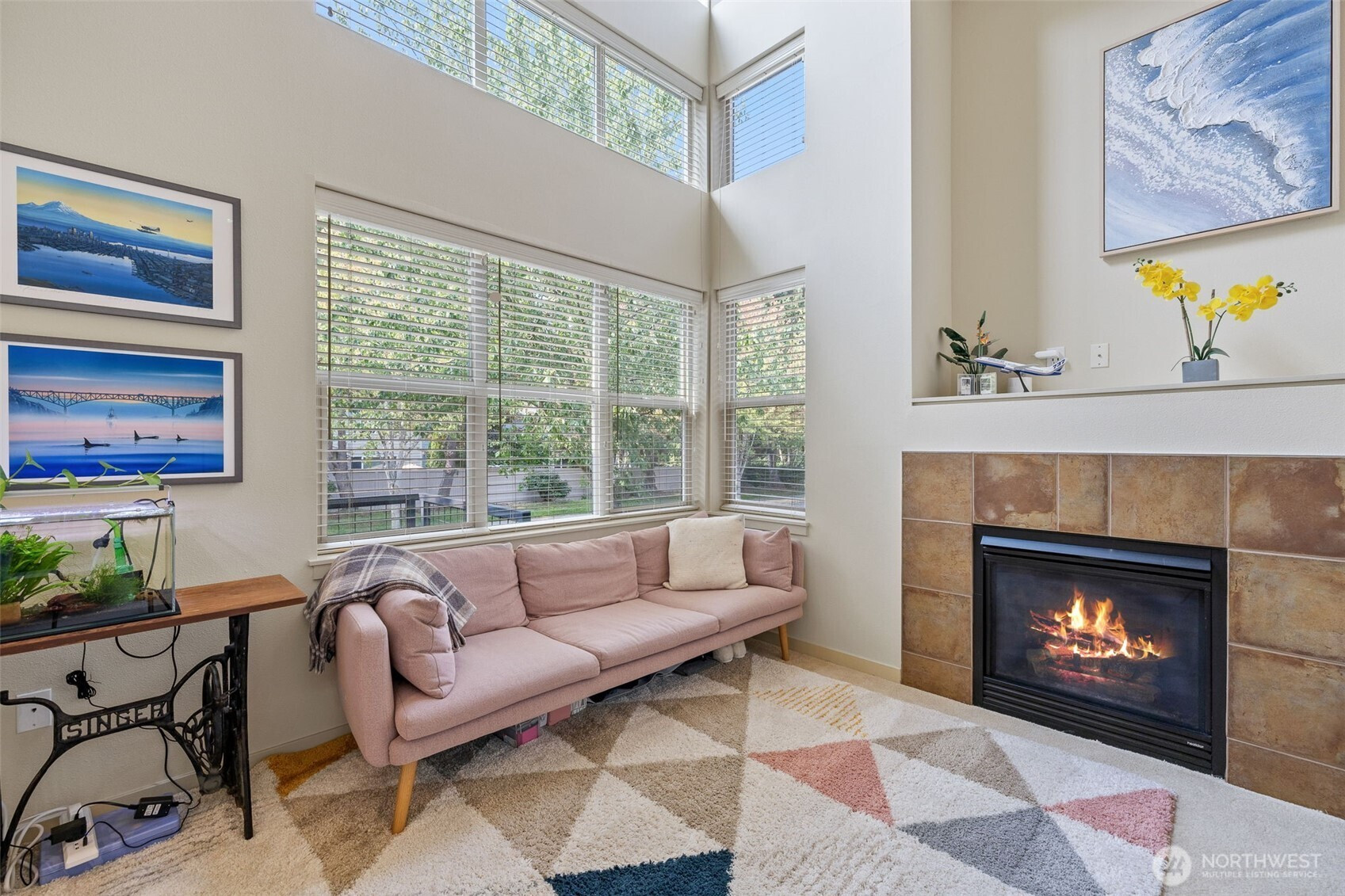 Welcome to Camden at Harbour Pointe. large end unit has high volume soaring ceilings, stainless steel appliances, cozy tiled gas fireplace in great room, 2 primary suites, spacious loft that could easily be converted to 3rd bedroom, slab granite counters, eating nook, real wood cabinets & gorgeous hardwood flooring. Primary suite on main w/ensuite & walk-in closet. Floor-to-ceiling windows bring in tons of light. Energy efficient hydronic heat to help save on utility costs. Enjoy those BBQs on deck located right off kitchen. Relax w/a book while catching the sunset off front covered porch. Handy sizable storage room on lower level. side by side 2 car garage w/2 more spots outside. plenty of guest parking. Close to ferry, shopping & I-5/405.