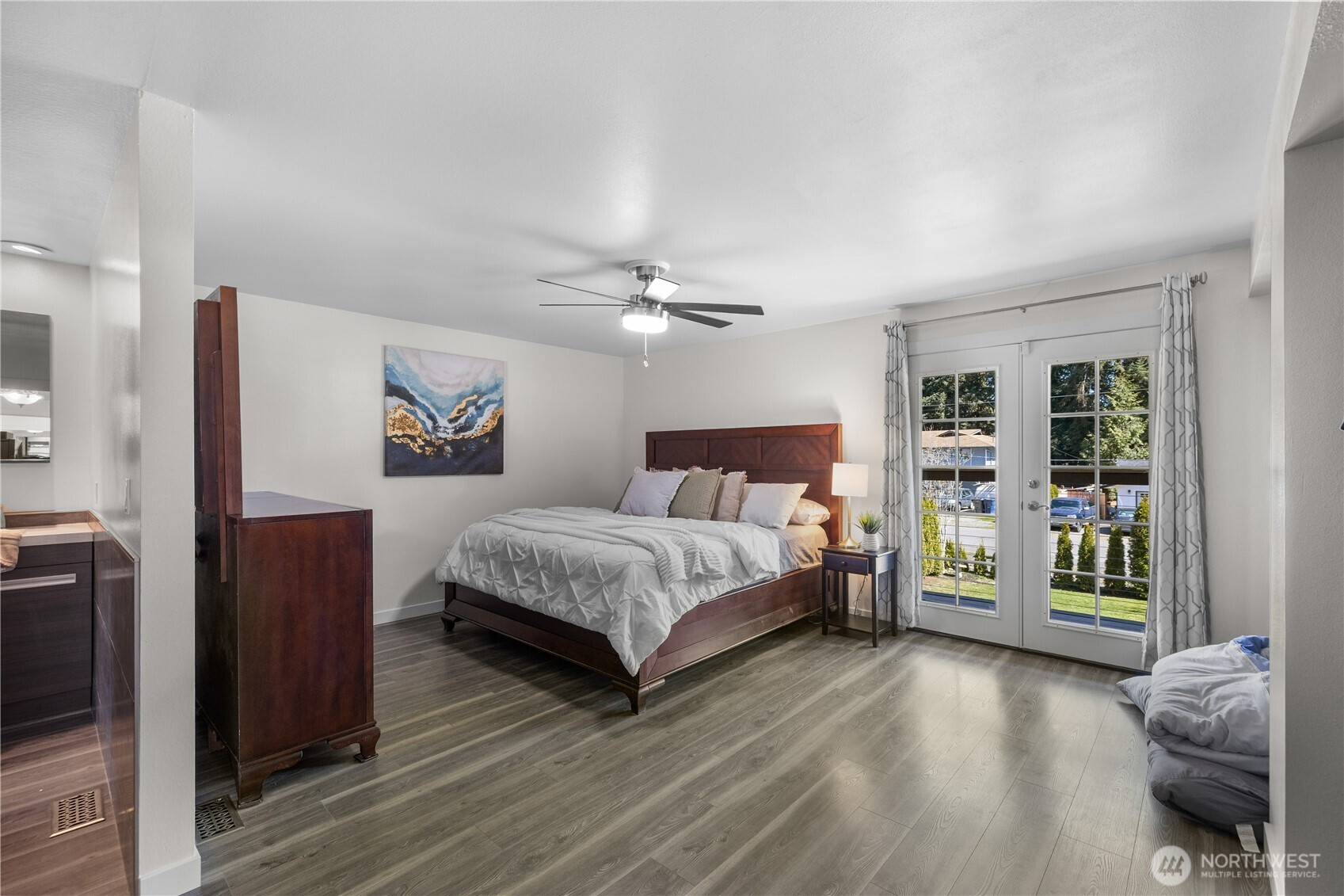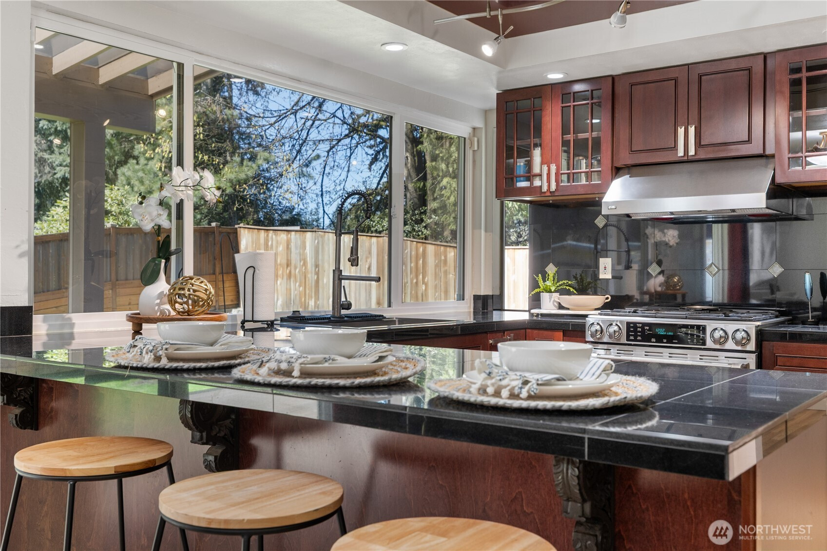 Step into this beautifully updated 2-story Colonial where timeless charm meets thoughtful renovation. The spacious kitchen features cherry cabinetry, granite countertops, stone flooring, JennAir gas range w/ hood & warming tray, SS refrigerator, eating bar & built-in desk. Light-filled living spaces offer flexibility w/ 2 FP’s, a wet bar & great flow for everyday living & entertaining. Also featured are a grand entry w/ statement staircase & chandelier, custom built-ins & abundant storage throughout. Upstairs, the primary suite offers a private retreat w/ double French doors to the balcony, an updated bath, and a built-in closet system. Additional features include dual sinks, a rare laundry chute, & tankless H2O. Outdoor living shines w/ a beautifully designed covered back deck spanning the length of the home w/ built-in seating, truly one of the best features. Fully fenced, landscaped yard w/ reinforced fencing, possible dog run, two outbuildings, RV parking & extra front parking. Ideally located just minutes to Mill Creek, Silver Lake, shopping & amenities in a highly desirable setting.