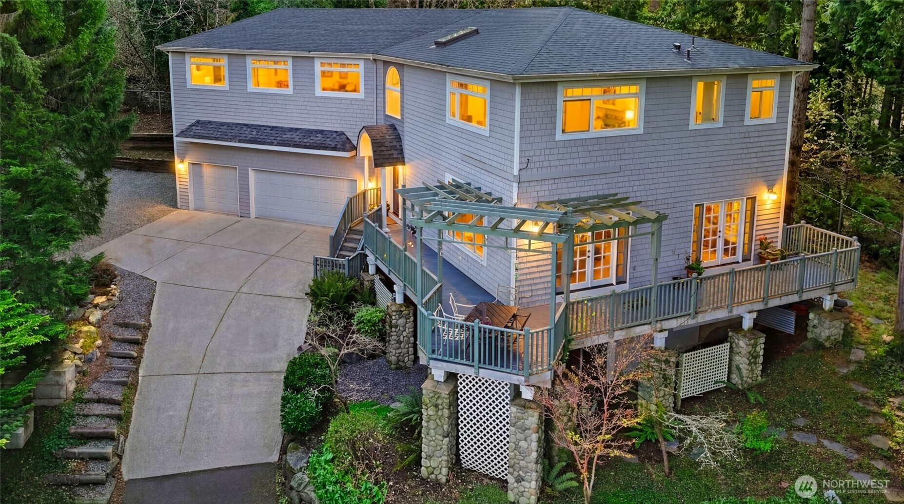 (503) 893-8874Tucked away on a serene and private 0.6-acre wooded lot in the sought-after Wind and Tide community, this custom 4,010 sq ft home offers light-filled living and timeless design across three expansive levels. A grand entry welcomes you with soaring ceilings, skylights, rich hardwood floors, and an open staircase that sets the tone for the home.The heart of the home is the chef’s kitchen, featuring granite slab countertops, stainless steel appliances, and a peninsula bar opening to a casual dining area, perfect for everyday living and entertaining. French doors connect the kitchen to the formal dining room with classic wood paneling, while the formal living room showcases extensive millwork and a fireplace. A versatile flex space, ideal for a home office or sitting room, features French doors leading to the deck for seamless indoor-outdoor living. Upstairs, you’ll find three bedrooms, including a spacious primary suite with a full bath and walk-in closet, plus a large bonus room and convenient upstairs laundry. Finished lower level adds flexibility with a wet bar, rec room with fireplace, an additional bedroom, and a 3/4 bath, ideal for guests/extended living. Outside, enjoy a gated, fully fenced setting surrounded by mature landscaping and natural foliage, offering privacy and tranquility. Additional features include a three-car garage and an outbuilding for storage or hobbies. Just minutes from Picnic Point, Harbour Pointe Golf Course, and top-rated Mukilteo schools.
