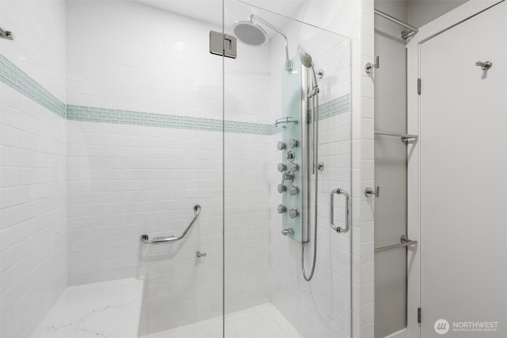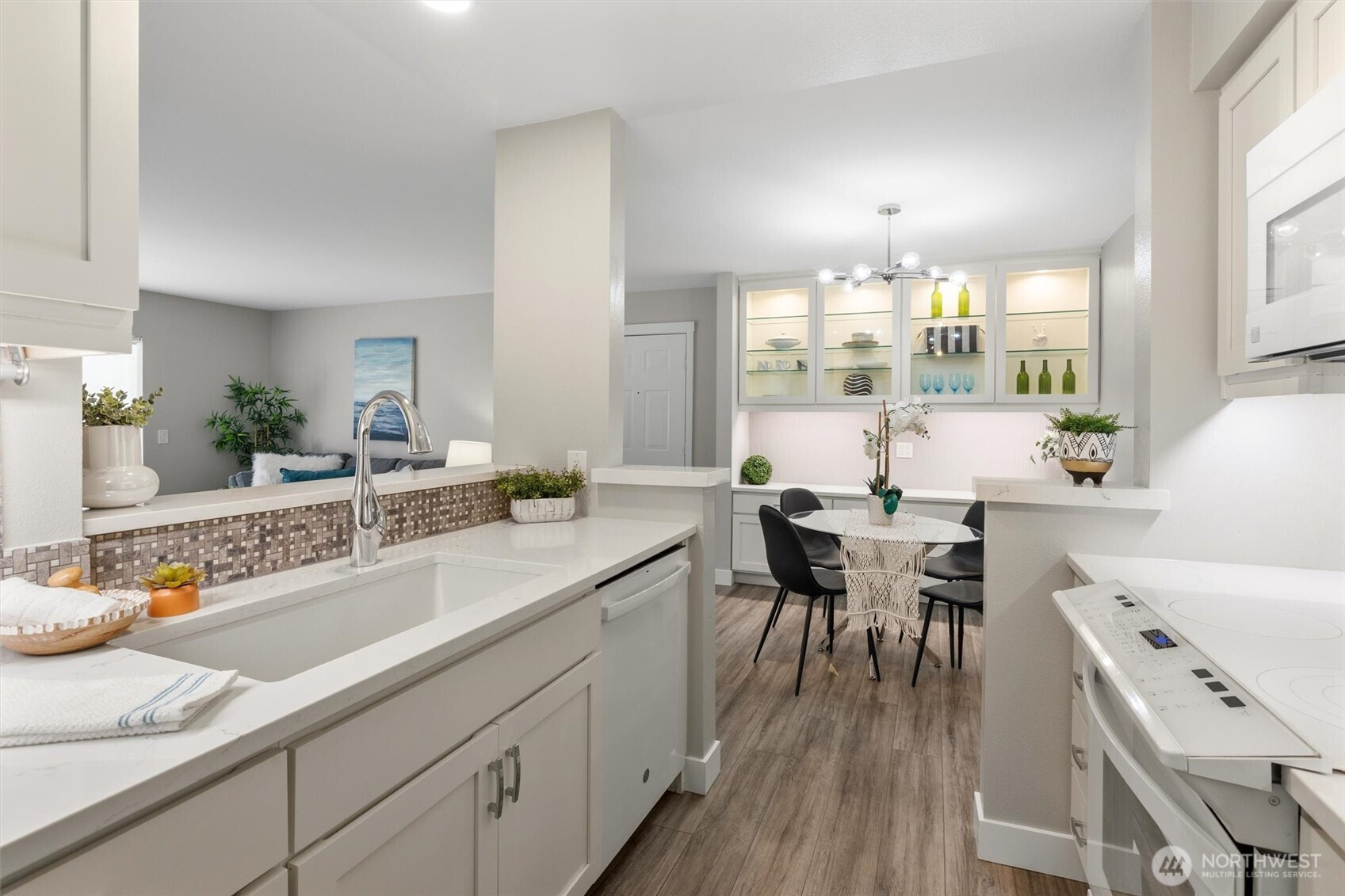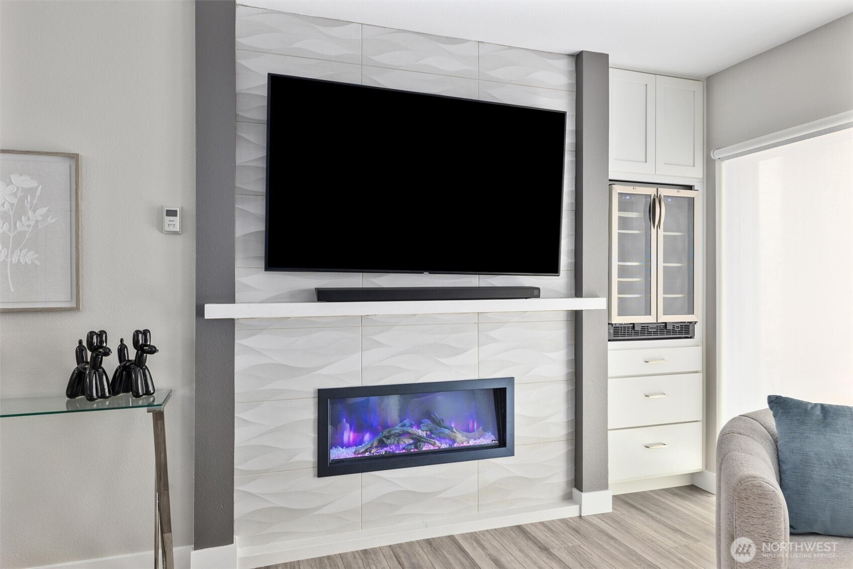 Beautifully updated ground-floor 3 bed, 1.75 bath condo in Front 9 on Harbour Pointe Blvd in Mukilteo. Located in the award-winning Mukilteo School District. This one-of-a-kind unit stands out with custom Canyon Creek cabinetry throughout, offering exceptional amount of storage beyond typical 3-bedroom layouts. Enjoy waterproof, scratch-resistant laminate flooring, fresh interior paint throughout, upgraded lighting and custom window coverings. The kitchen features a custom backsplash, new refrigerator and dishwasher, and a walk-in pantry with shelving, cabinets and workspace. Inviting living area with a stunning electric fireplace wrapped in stone tile and built in beverage refrigerator. Bathrooms include slip-resistant marble tile and updated vanities. Primary bedroom features a beautifully updated walk-in tile shower and custom walk in closet. Includes 1-car garage and 1 uncovered space. Community amenities include indoor and outdoor pools, hot tub, sports court, exercise room and more. No rental cap. This one is a must see in person!!