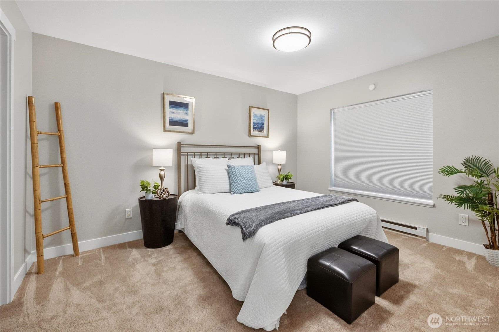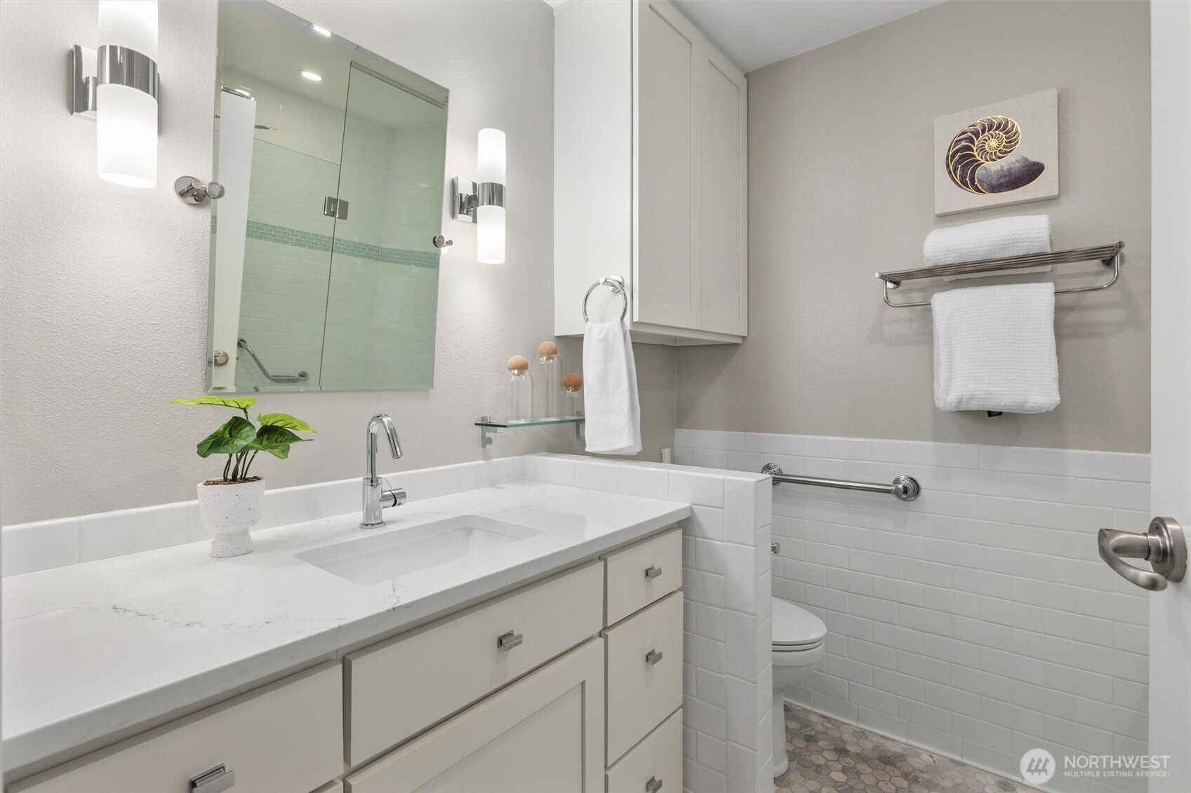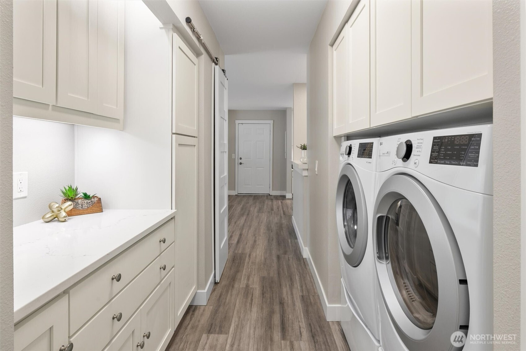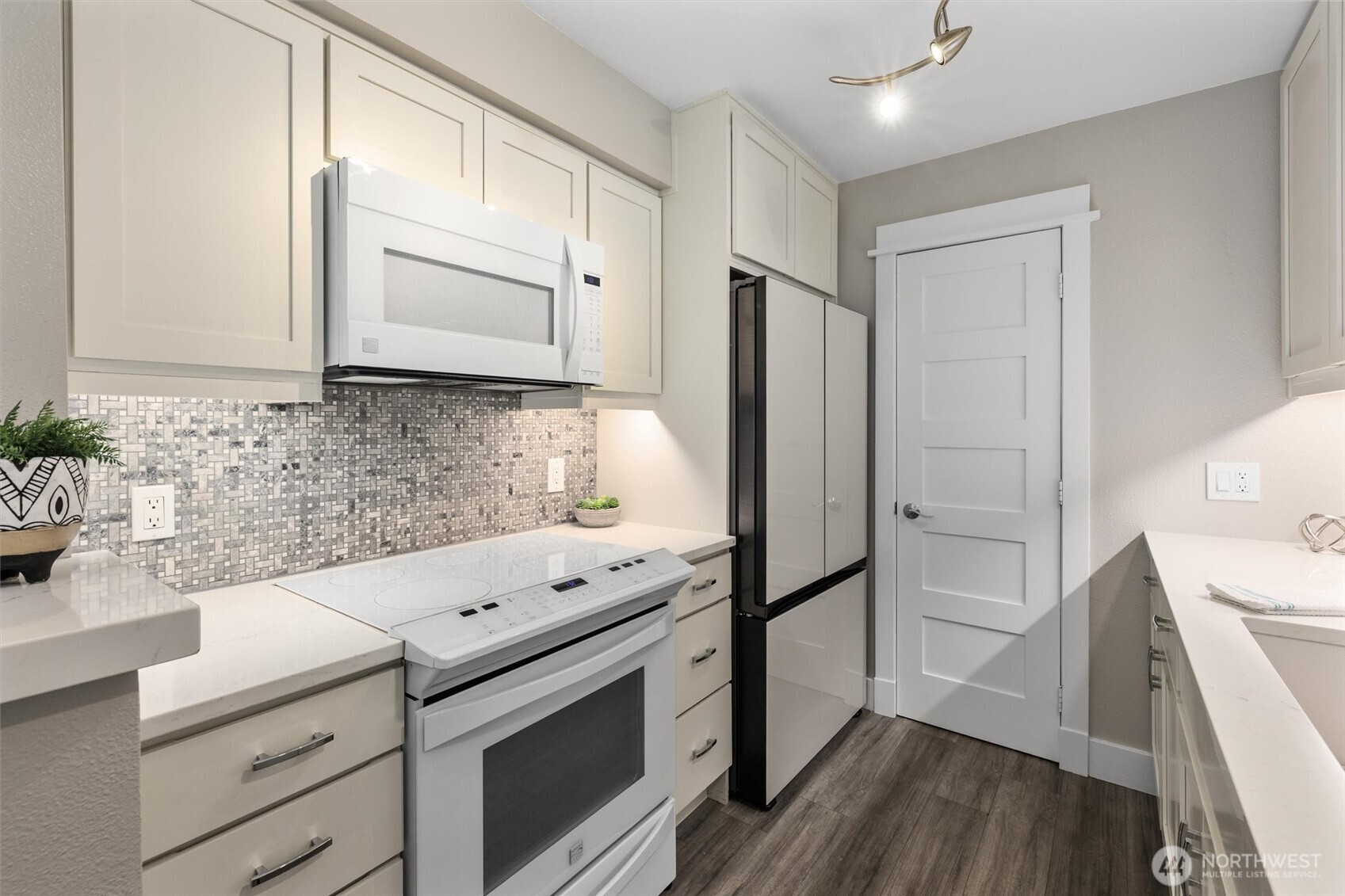 Beautifully updated ground-floor 3 bed, 1.75 bath condo in Front 9 on Harbour Pointe Blvd in Mukilteo. Located in the award-winning Mukilteo School District. This one-of-a-kind unit stands out with custom Canyon Creek cabinetry throughout, offering exceptional amount of storage beyond typical 3-bedroom layouts. Enjoy waterproof, scratch-resistant laminate flooring, fresh interior paint throughout, upgraded lighting and custom window coverings. The kitchen features a custom backsplash, new refrigerator and dishwasher, and a walk-in pantry with shelving, cabinets and workspace. Inviting living area with a stunning electric fireplace wrapped in stone tile and built in beverage refrigerator. Bathrooms include slip-resistant marble tile and updated vanities. Primary bedroom features a beautifully updated walk-in tile shower and custom walk in closet. Includes 1-car garage and 1 uncovered space. Community amenities include indoor and outdoor pools, hot tub, sports court, exercise room and more. No rental cap. This one is a must see in person!!