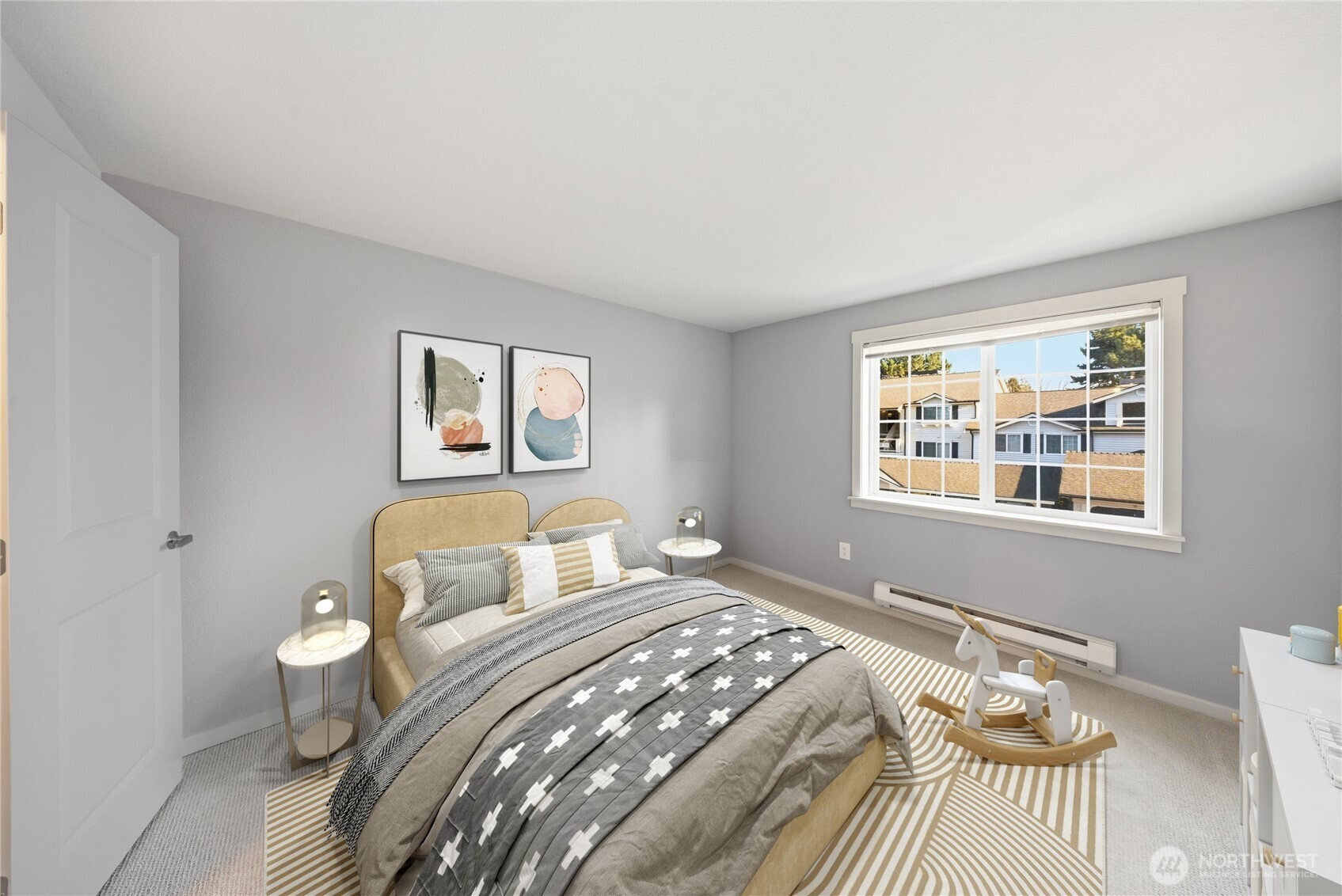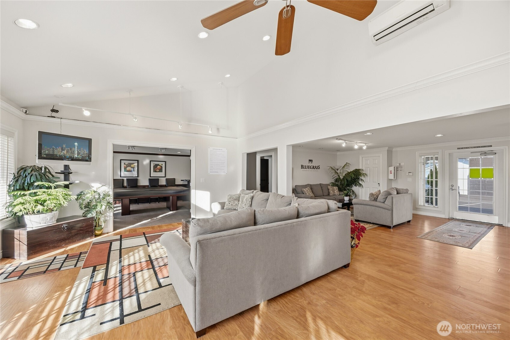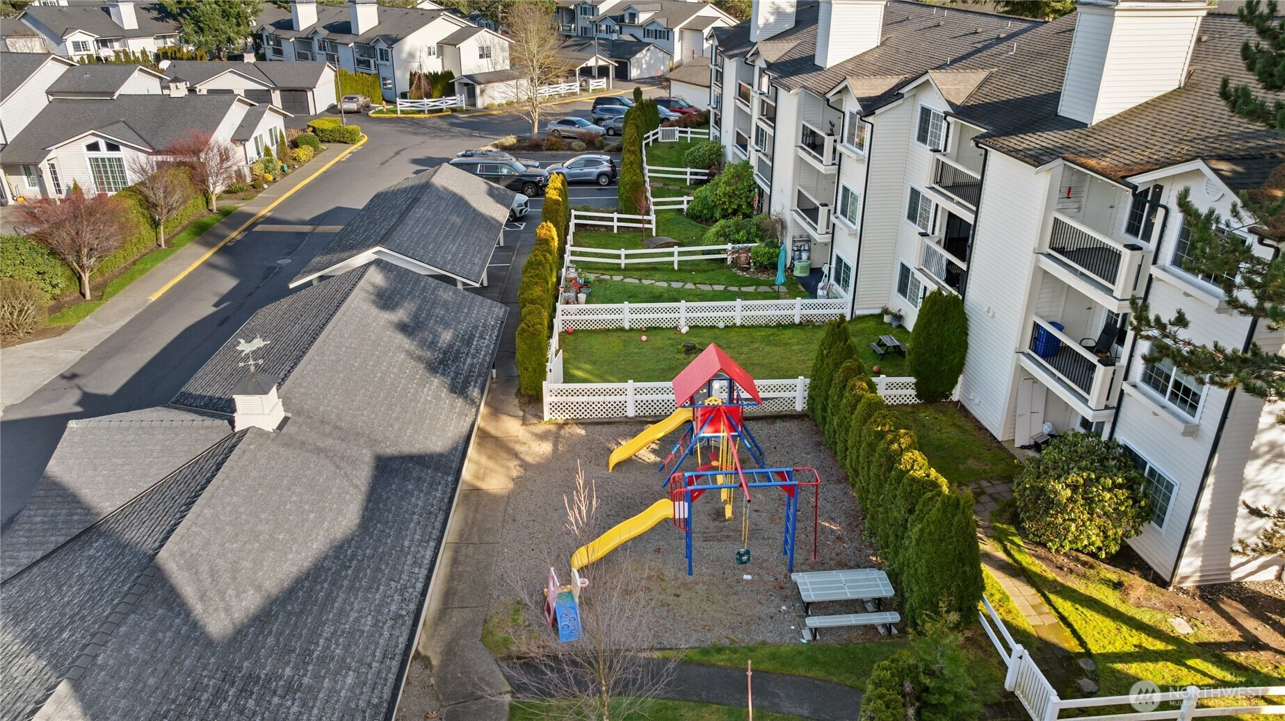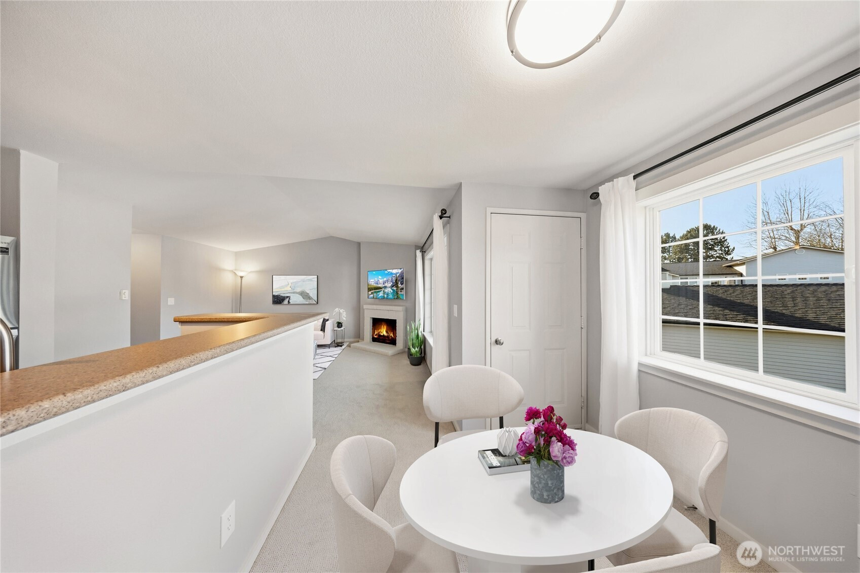 Discover your dream home at Bluegrass Condominiums—a secure, gated community in a prime location! This top-floor condo boasts vaulted ceilings for an open, airy feel, a cozy wood-burning fireplace, and a spacious covered balcony perfect for year-round enjoyment. Freshly updated with brand-new carpet and paint throughout, a new hot water heater, and in-unit washer/dryer included. Two dedicated parking spots are right outside your door (#94 covered, #96 uncovered)—ultimate convenience! Enjoy resort-style amenities: clubhouse with event room, gym, pool table, seasonal pool, and year-round hot tub. A community playground is steps away next to the clubhouse. Just minutes from Boeing, the mall, dining, and entertainment—everything you need is close by.