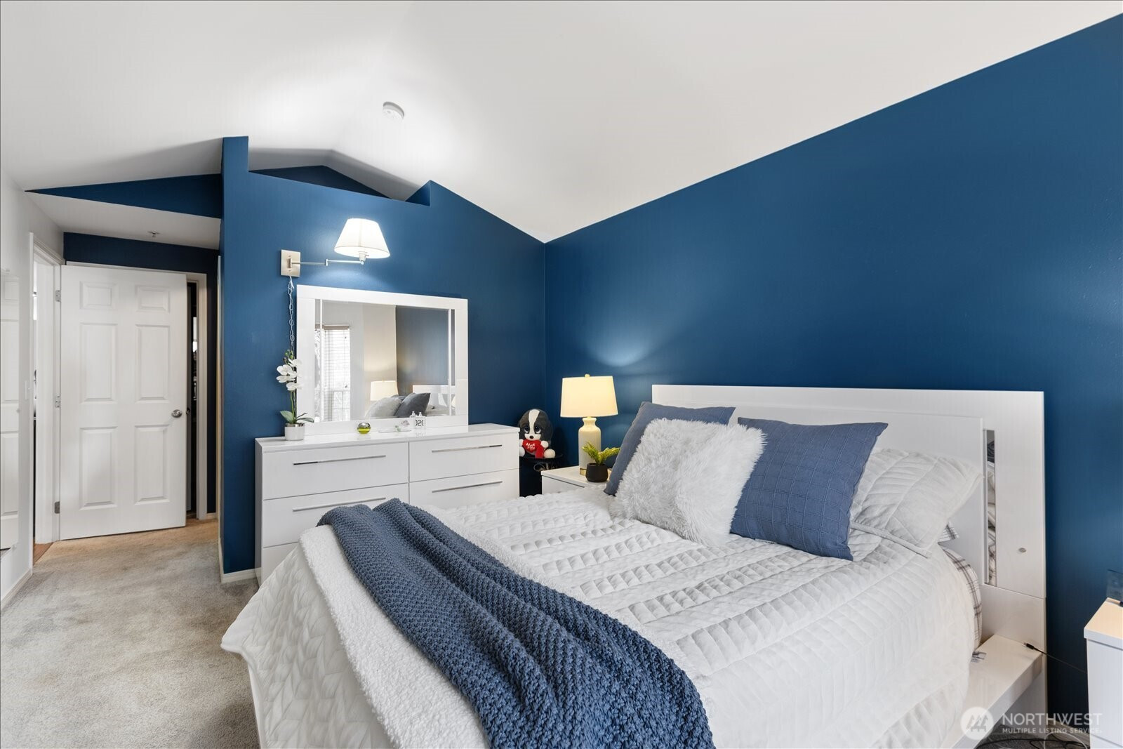 Welcome to the Brookfield condominium complex, a gated community offering comfort, convenience, and peace of mind. This top-floor, 2-bedroom unit is filled with natural light thanks to east- and south-facing windows and soaring vaulted ceilings. Step onto your private deck to enjoy morning coffee, plus for added convenience extra easily accessed storage. Inside, the home has been thoughtfully updated with a newly redone custom gas fireplace, a modern light fixtures, and a stylish ceiling fan. The spacious layout creates a warm, inviting atmosphere ideal for both relaxing and entertaining. The large kitchen offers abundant space and functionality, featuring all stainless steel appliances, a new Fisher Paykel refrigerator, and a new kitchen sink. It’s designed to make both everyday living and hosting effortless. The primary suite boasts vaulted ceilings, a generous walk-in closet, and an updated private 3/4 bath. Down the hall, a second large bedroom also includes a walk-in closet, along with a newly remodeled main bathroom and full-size stacking laundry. The well-run HOA ensures a maintained environment, this unit featuring one covered, dedicated parking space plus additional guest parking. Pet-friendly and ideally located with easy access to I-5, Boeing, Paine Field, and future light rail. Pre-inspection available for added convenience.