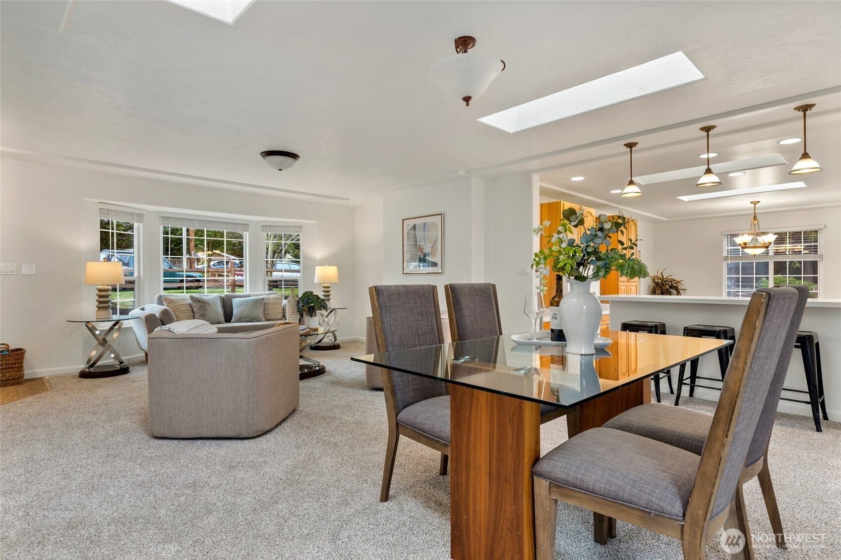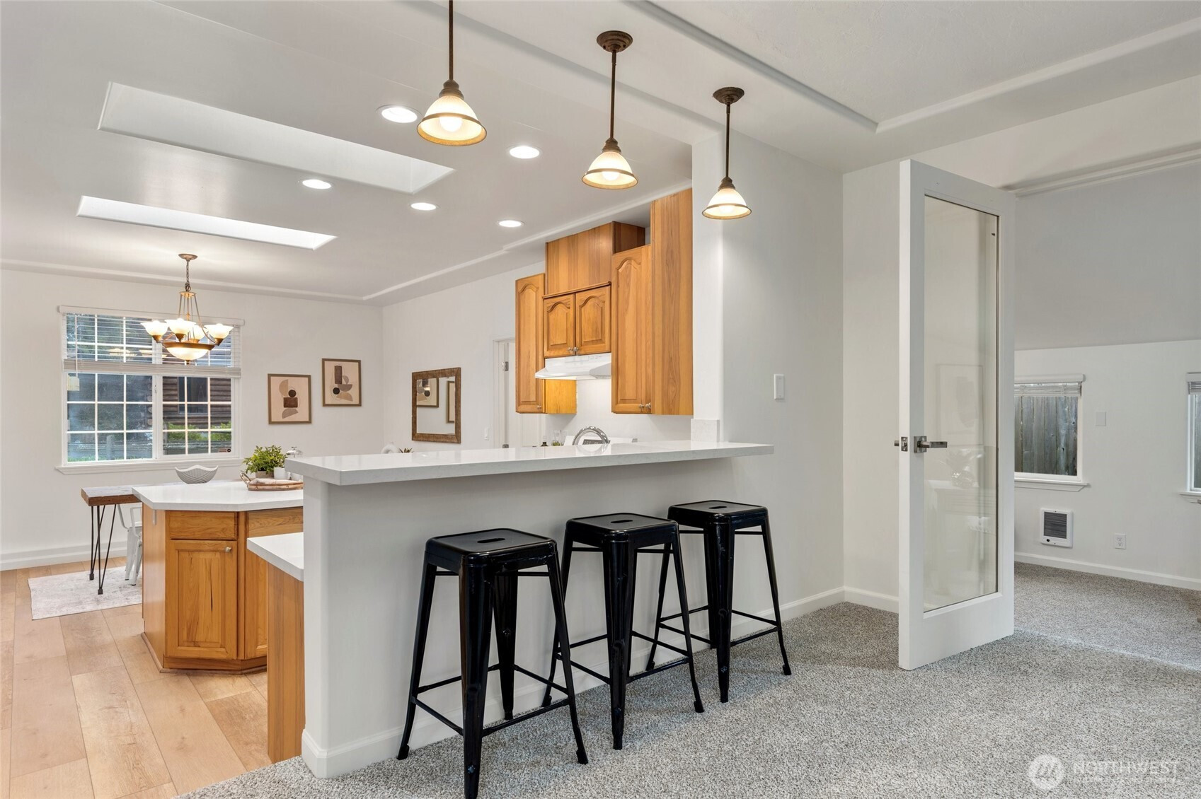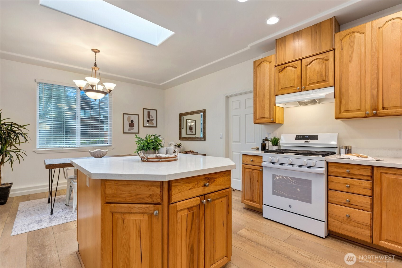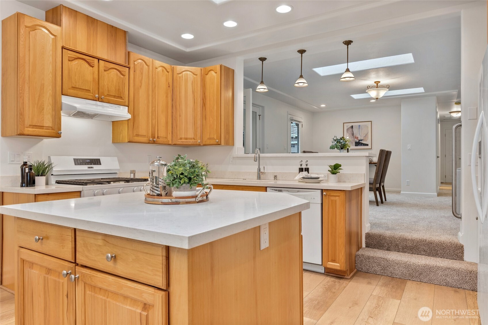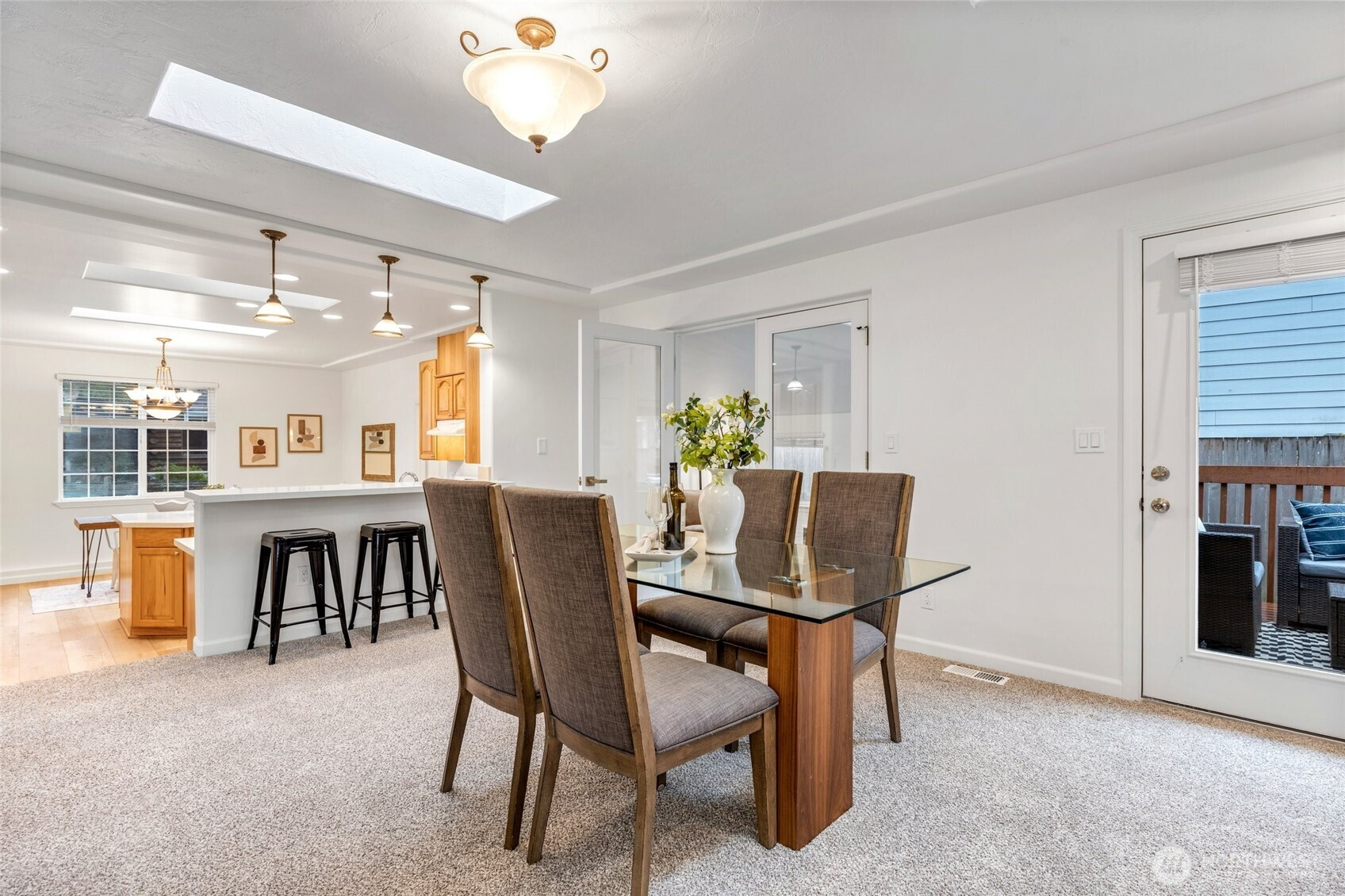 Beautifully remodeled rambler in a prime location! Enjoy new LVP flooring, tile, countertops, cabinets, carpet, updated plumbing and lighting fixtures. Skylights brighten the kitchen and great room. Home features 3 bedrooms, 2.75 baths, a flex room, and a large utility room. Primary suite with private bath and slider access to entertainment sized rear deck. Low-maintenance yard and large storage shed. Property backs to a protected native growth area. In the desirable Mukilteo School District and close to shopping, professional services, Boeing, and Puget Sound. Ramblers are becoming rare. Don’t miss this one!