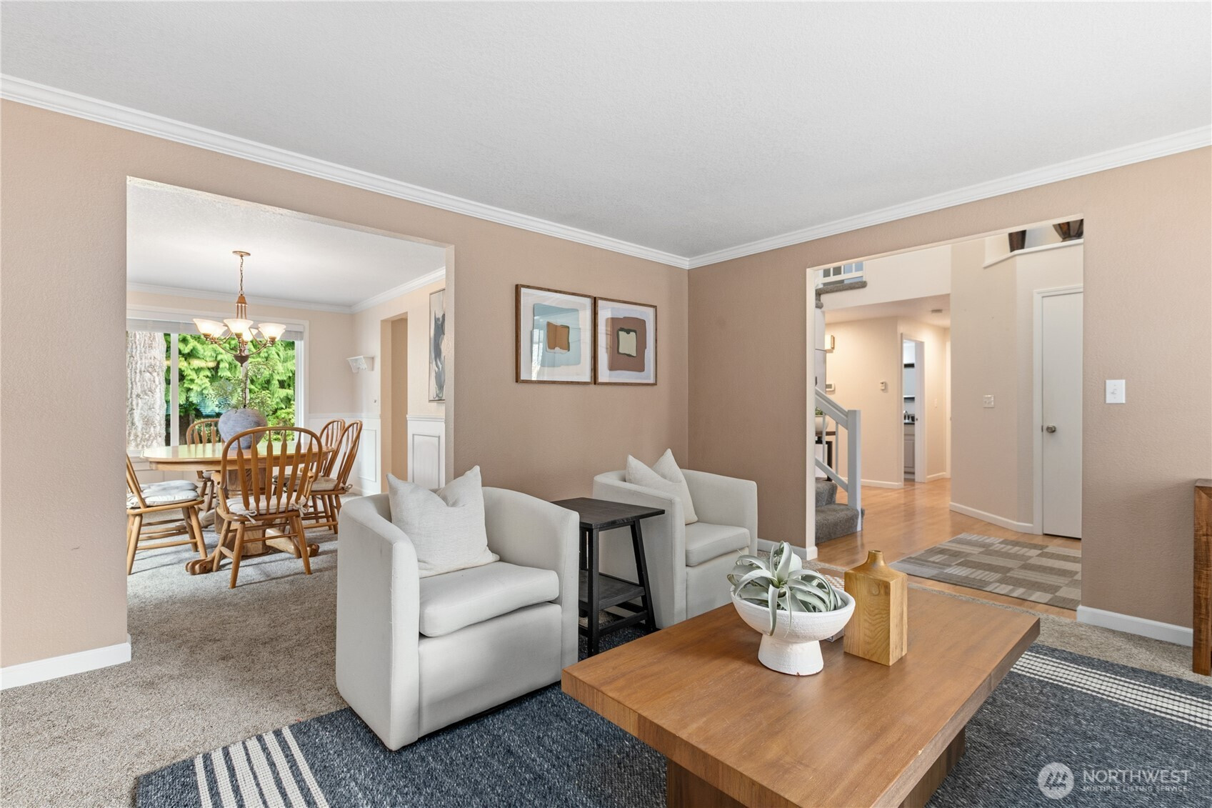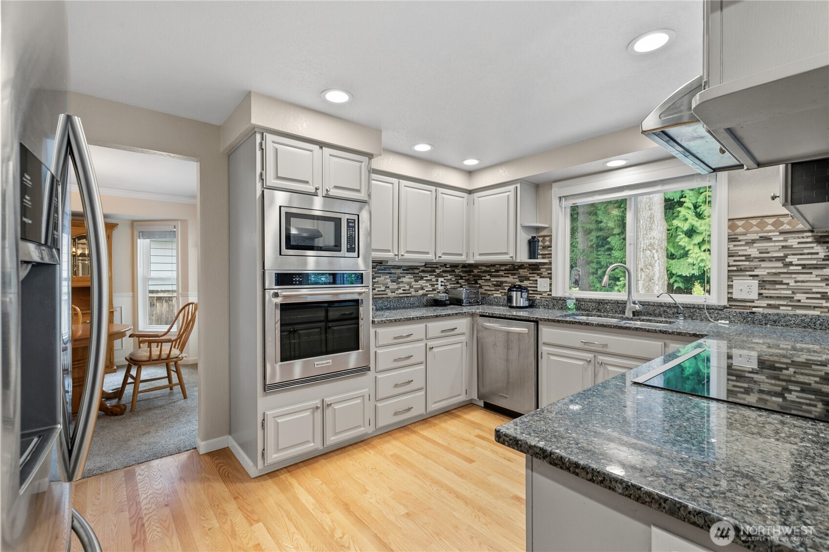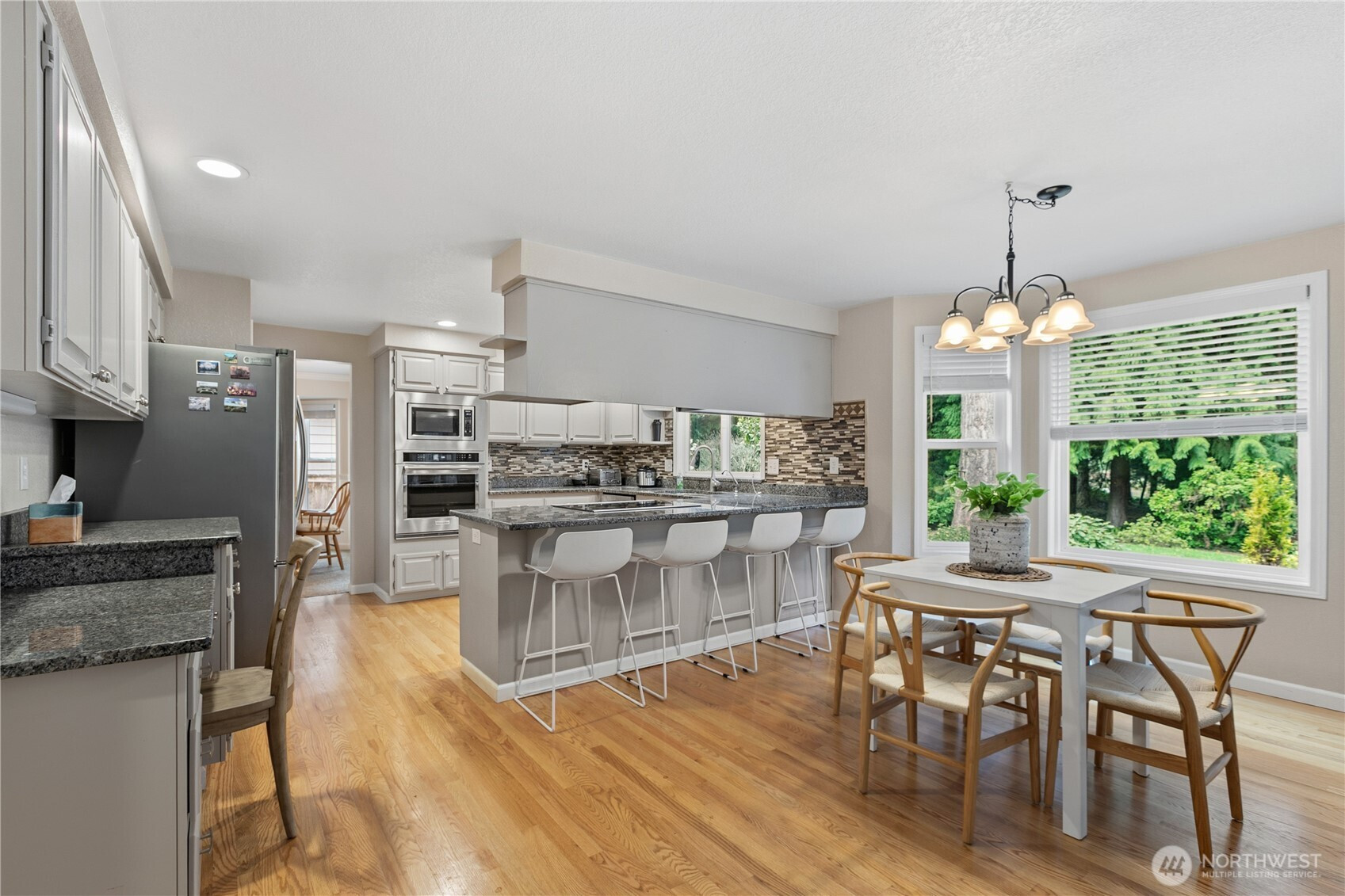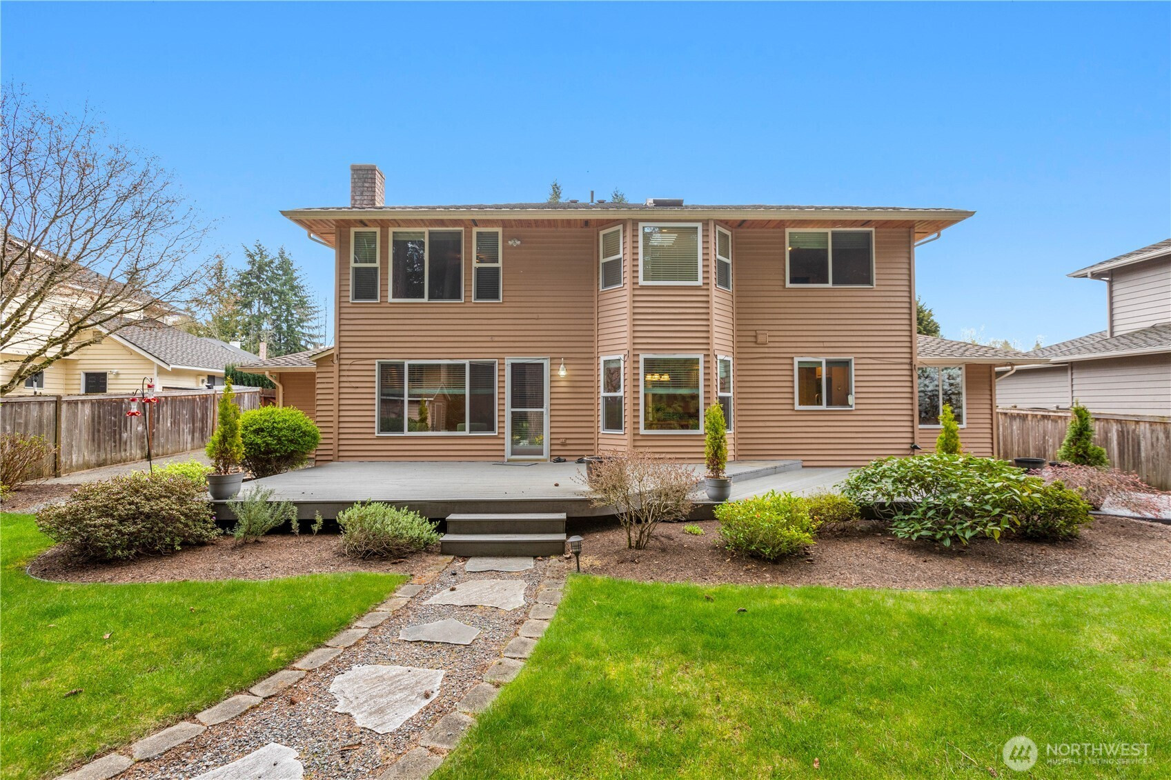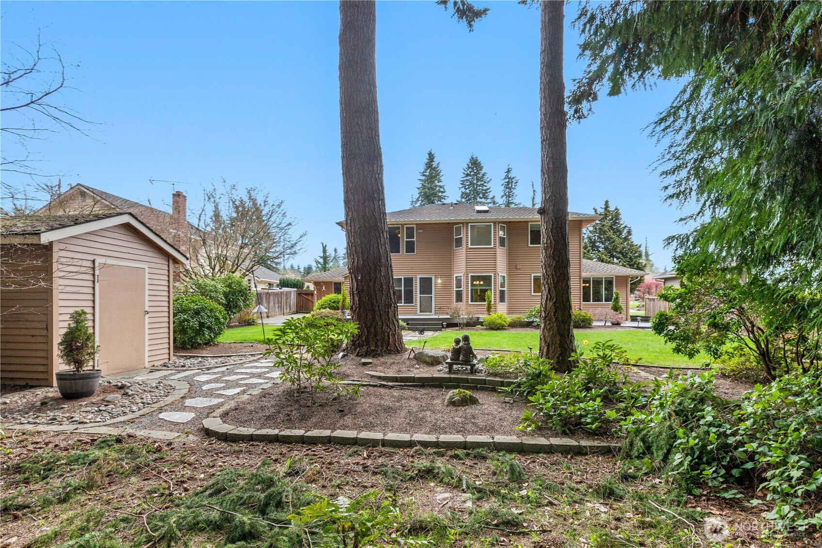 Rare lakeside living in the coveted Pioneer Trails neighborhood — this 3-bedroom, 2.5-bath home offers 2,428 sq ft of well-designed space backing directly to a serene lake and walking paths just out your back door. The main floor flows from a bright living room and formal dining room through a well-appointed kitchen with walk-in pantry and dinette area, to a family room with fireplace, plus a den/office (easily a 4th bedroom), half bath, and laundry room. Upstairs, the generous primary suite features a walk-in closet and 5-piece bath alongside two additional bedrooms and a full hall bath. A beautiful deck captures peaceful lake and landscape views. The attached 2-car garage includes a built-in shop area and storage cabinets. Notable extras include a presidential 50-year roof and access to over 3 miles of community trails, lakes, parks, playgrounds, and pickleball courts. Served by Penny Creek Elementary, Eisenhower Middle, and Cascade High School within the Everett School District.